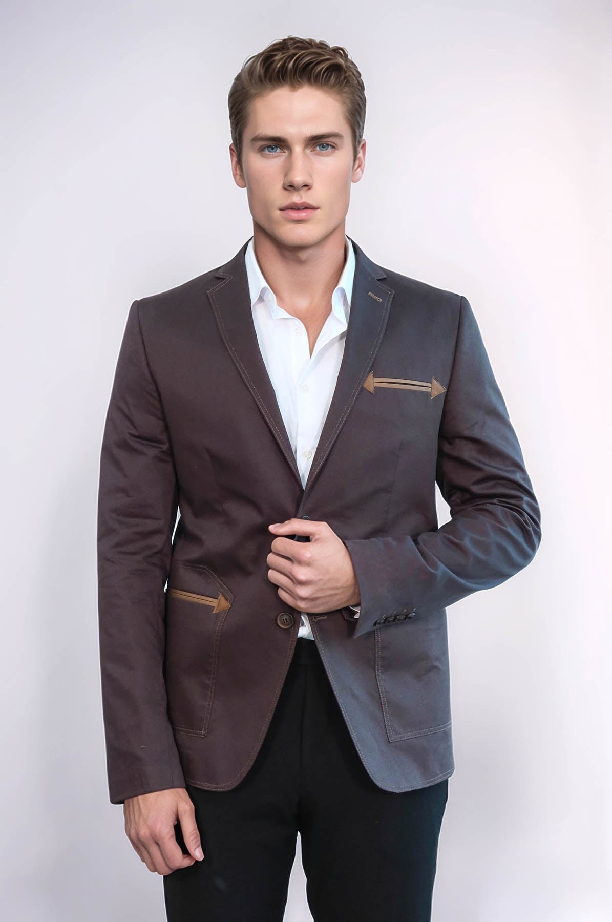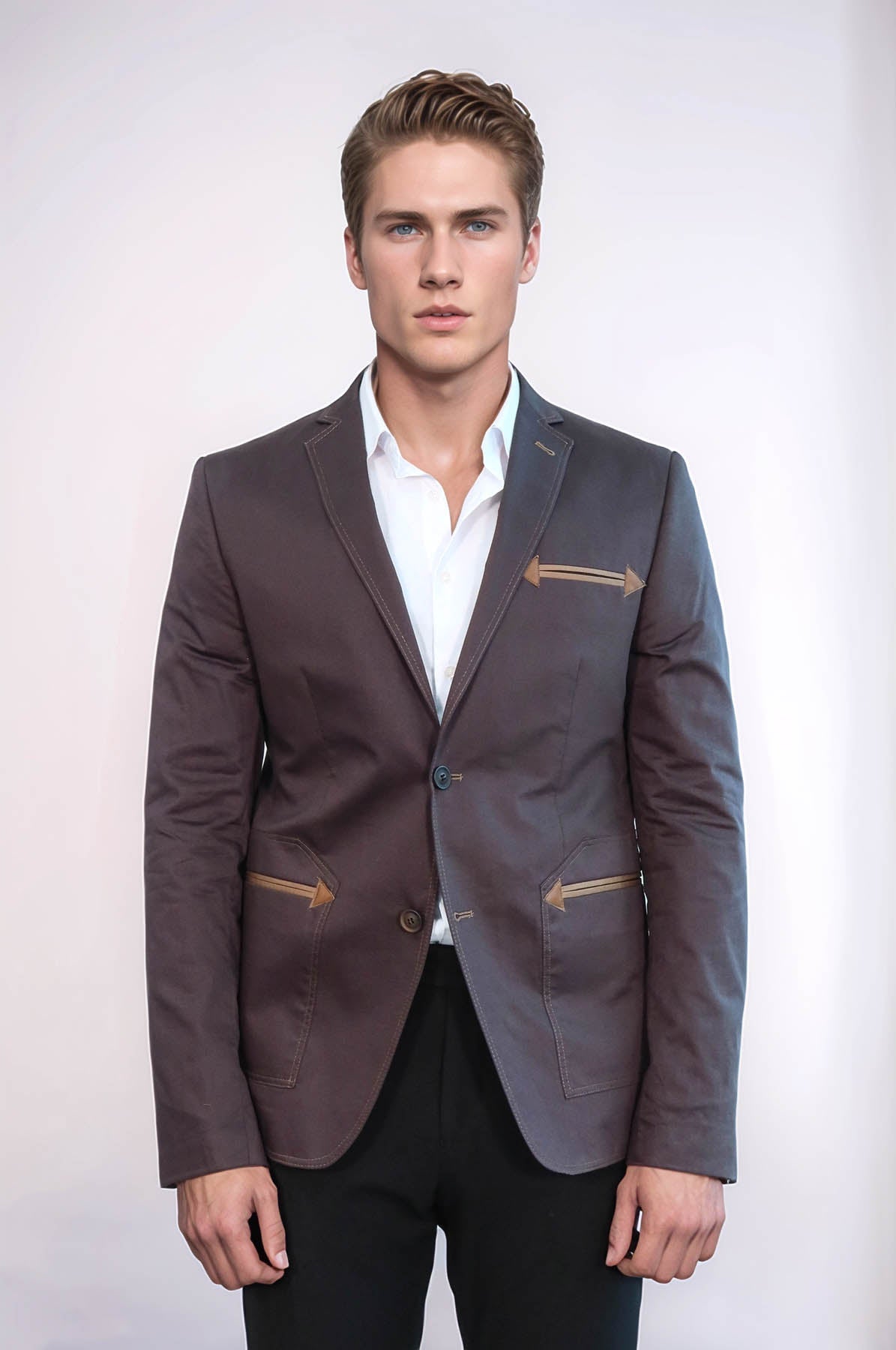 Details: Two buttons, mono lapel, Bag Pocket