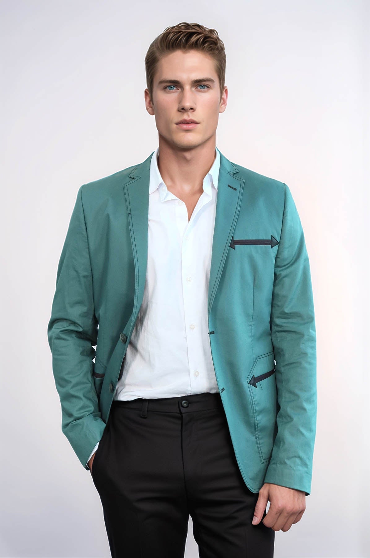 Expertly designed and crafted by Wessi, this Double Button Mono Lapel Bag Pocket Cotton Green Jacket offers a sleek and stylish addition to any wardrobe. With its double button closure, mono lapel, and convenient bag pockets, this jacket provides both functionality and fashion in one. Made from high-quality cotton, it guarantees comfort and durability.