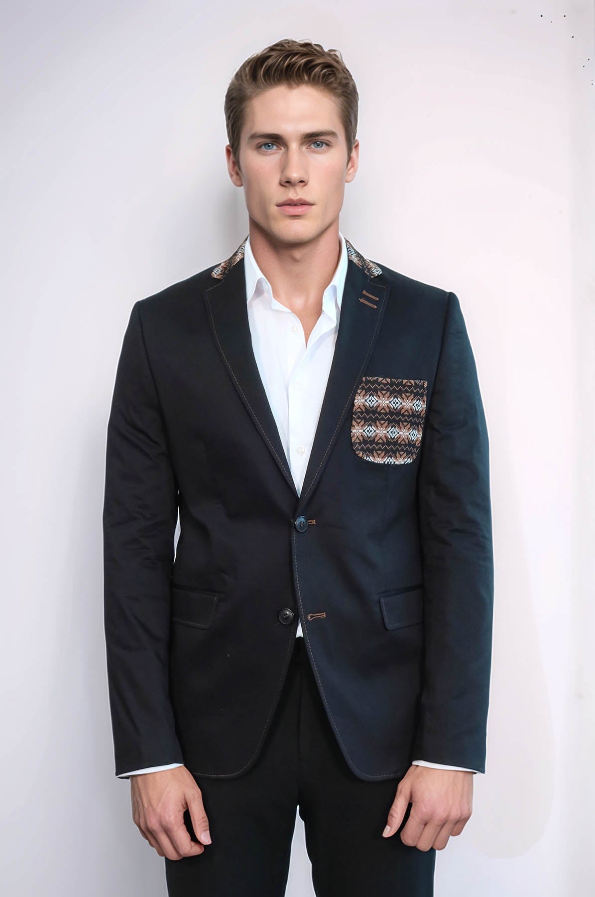Expertly crafted with a double button closure and knit collar, the Wessi Black Jacket offers a modern take on traditional style. The sleek mono lapel adds a touch of sophistication, making it a versatile piece for any occasion. Elevate your wardrobe with this timeless and stylish jacket.