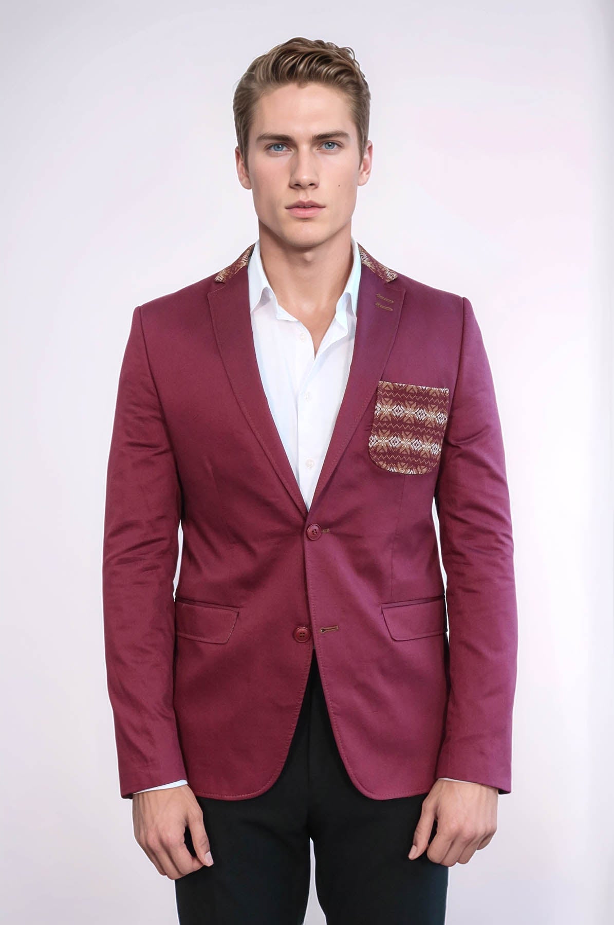 WSS Double Buttons Knit Collar Mono Lapel Burgundy Jacket- - Saint-Jean-sur-Richelieu