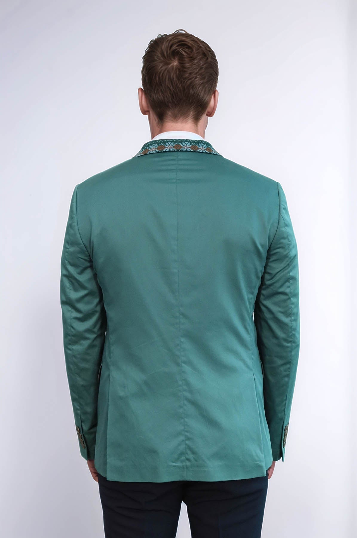 WSS Double Buttons Knit Collar Mono Lapel Green Jacket- - Franklin