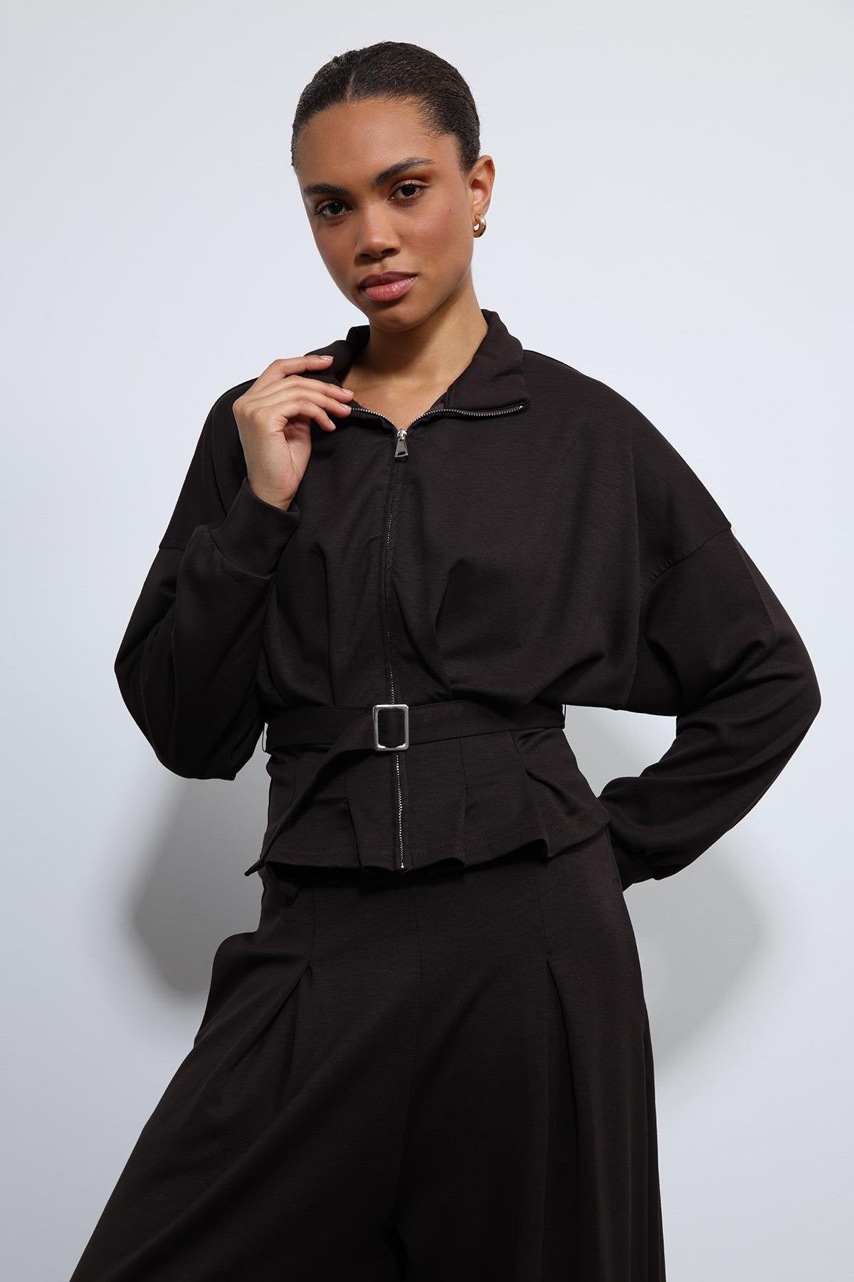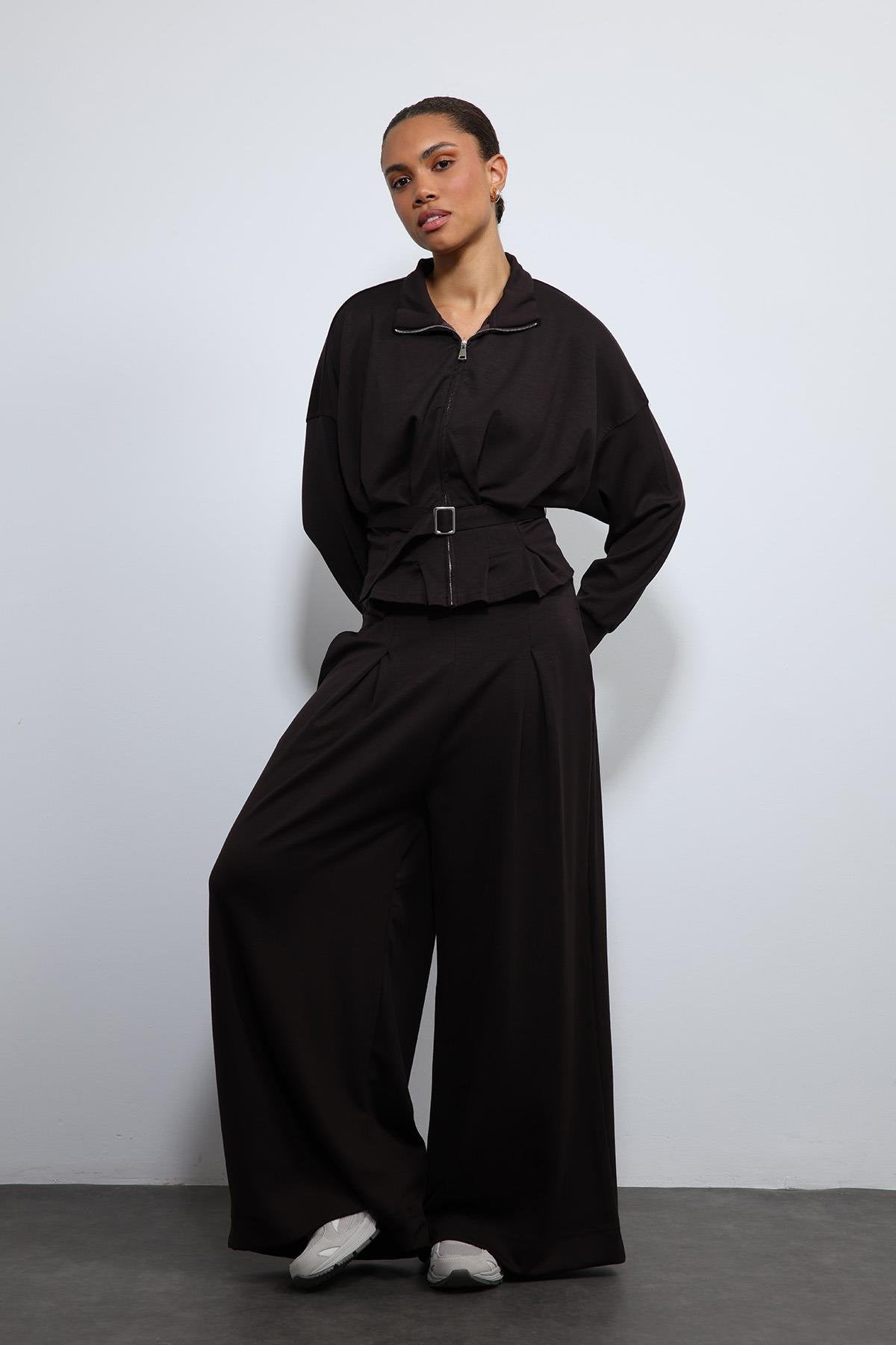 ANT Antioch Acı Kahve Bel Kemerli Geniş Paça Pantolonlu Takım - North Charleston