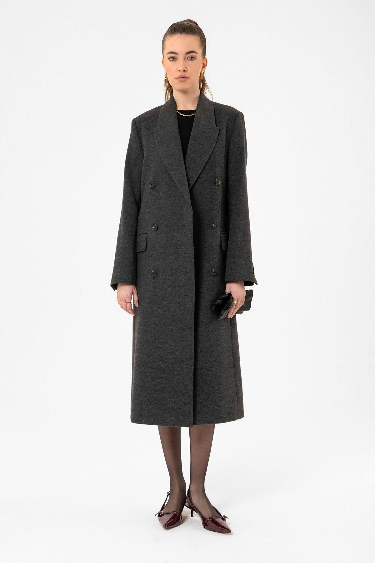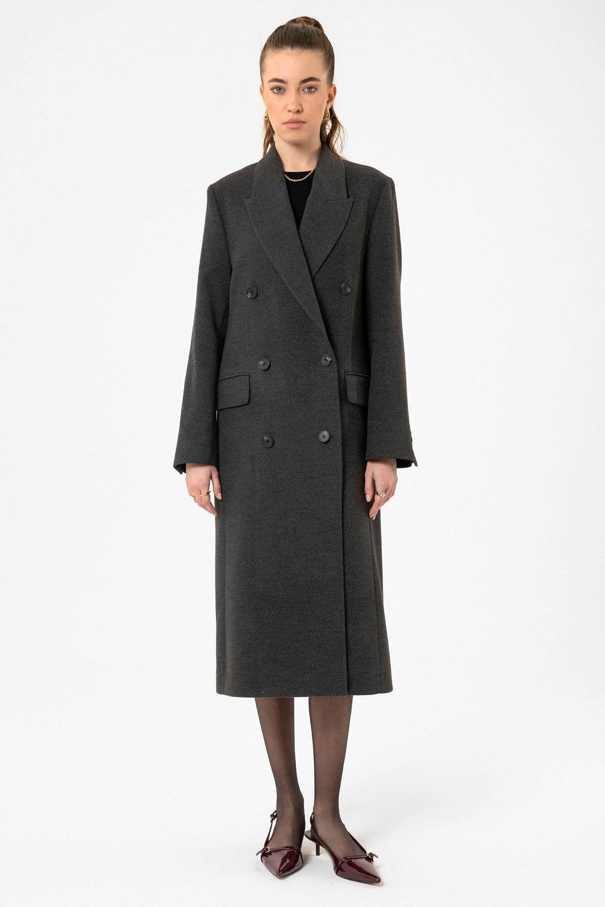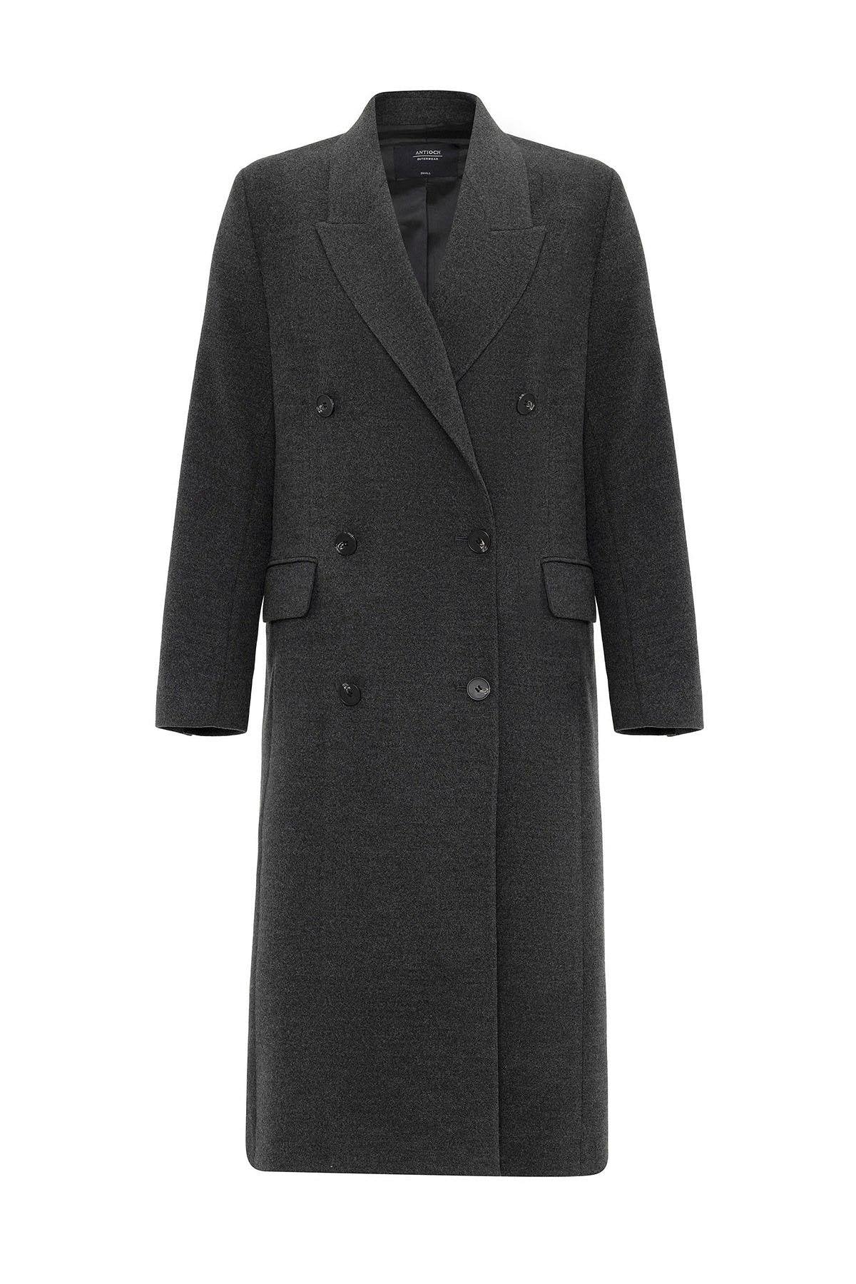 ANT Antioch Antrasit Kadın Kruvaze Uzun Kaban - Rio Tinto