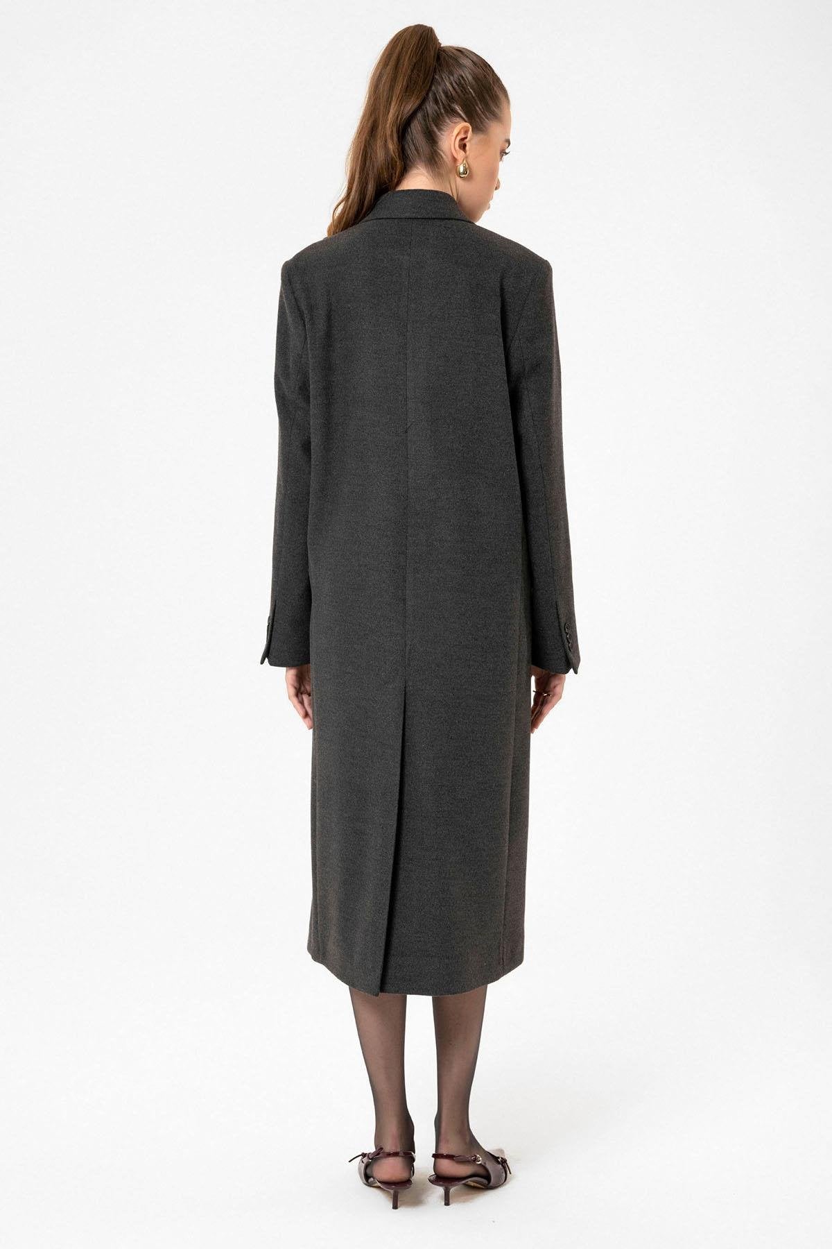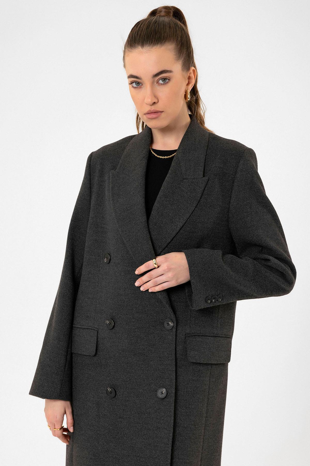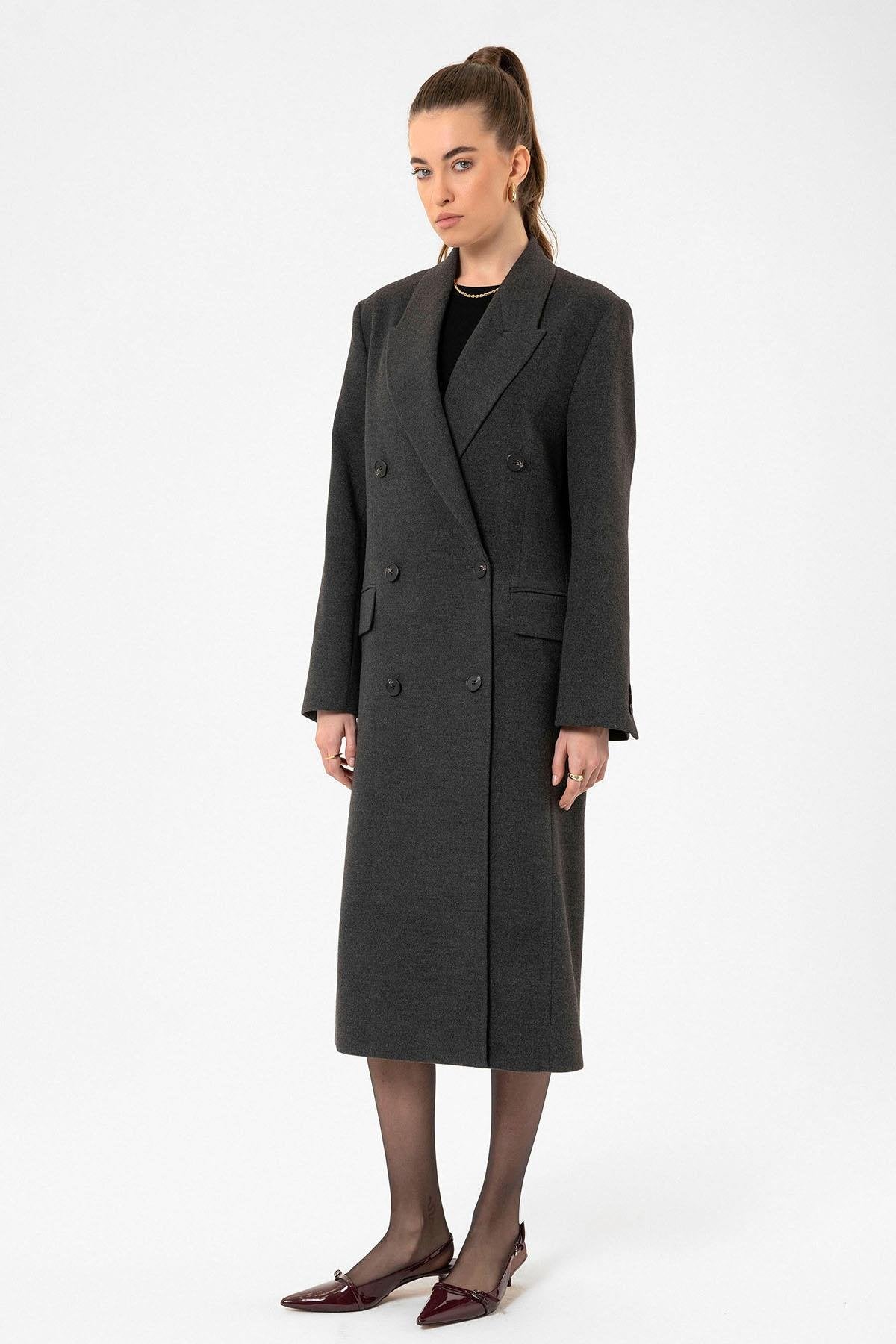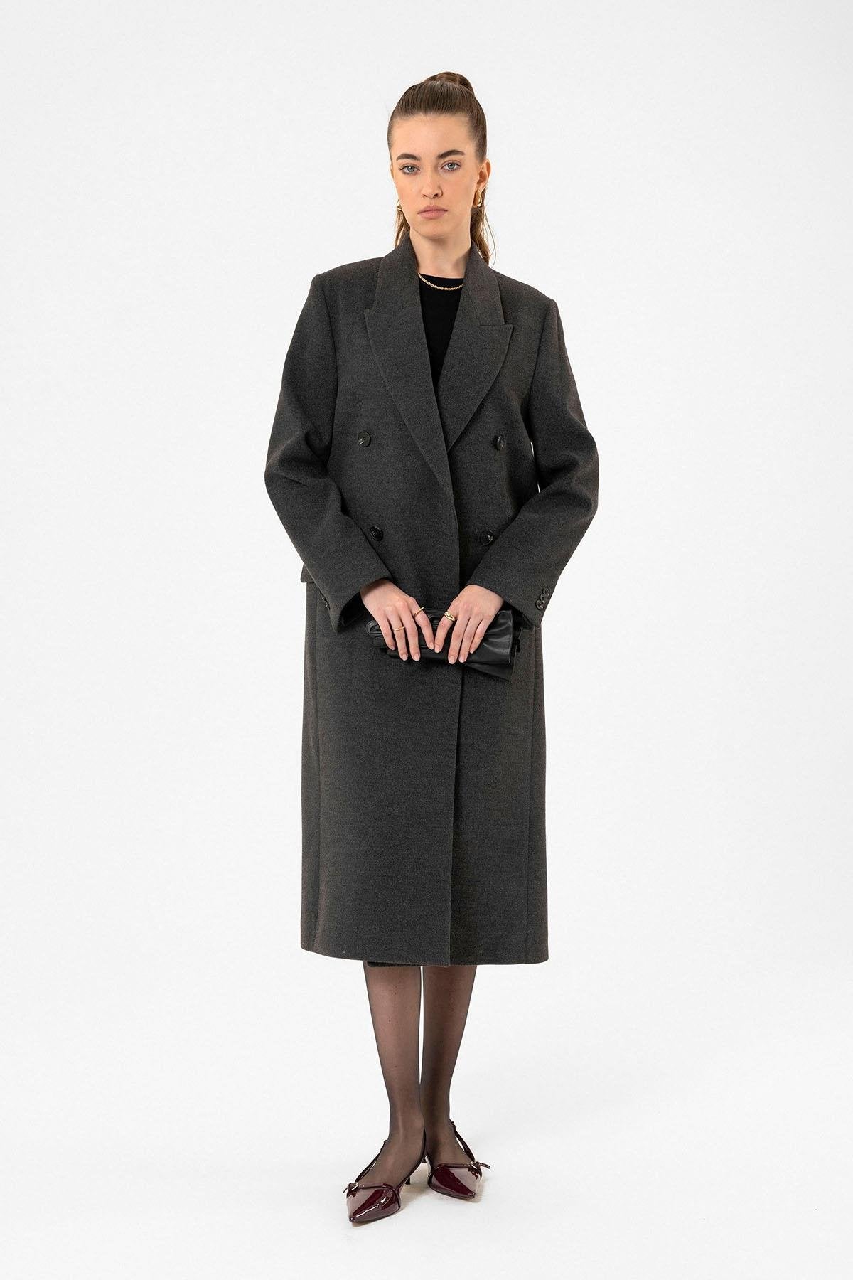 ANT Antioch Antrasit Kadın Kruvaze Uzun Kaban - Rio Tinto