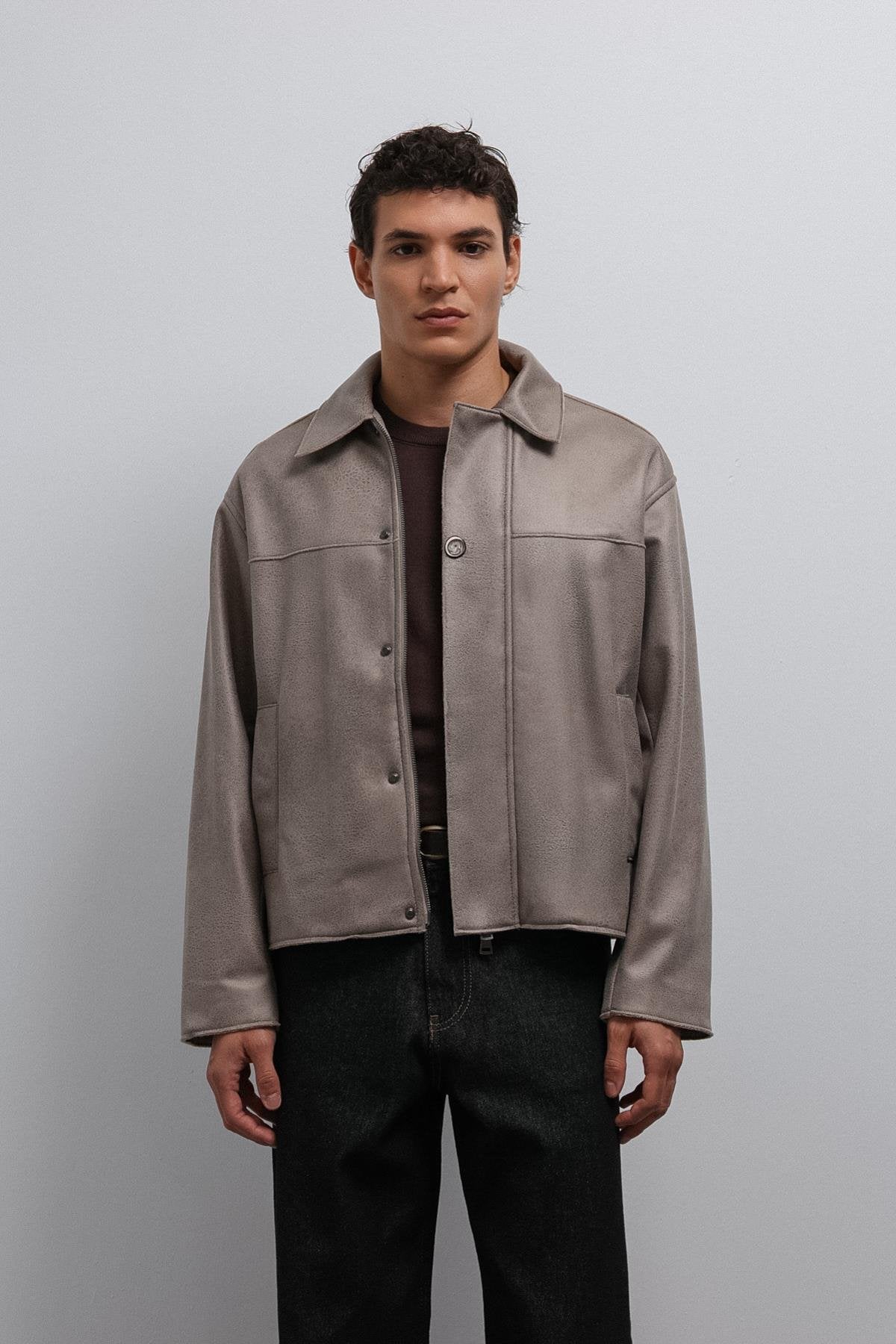 ANT Antioch Bej Relax Fit Suni Deri Erkek Mont - Sykiés