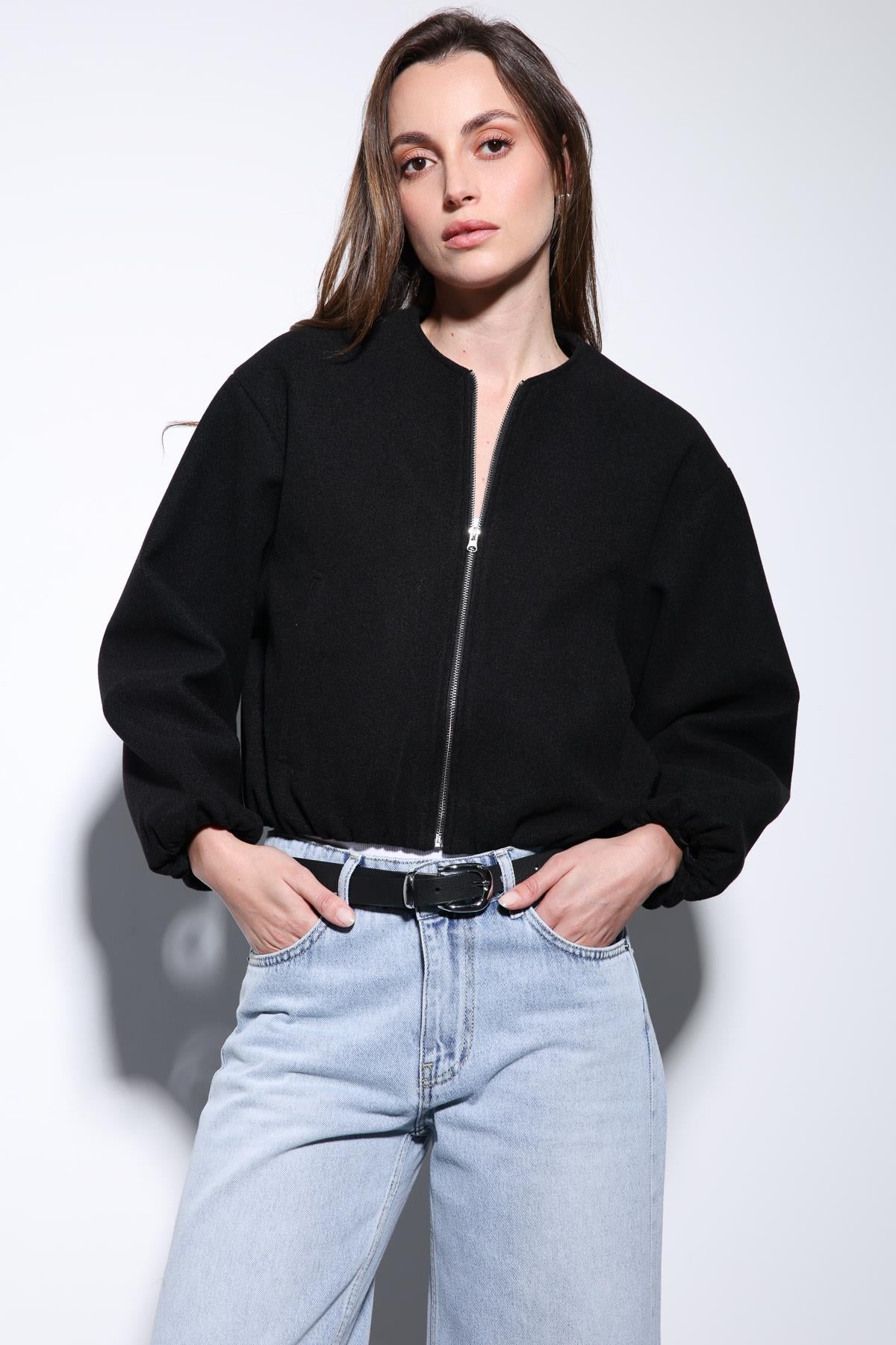 ANT Antioch Black Elastic Waist Crop Women's Jacket - Castellammare di Stabia