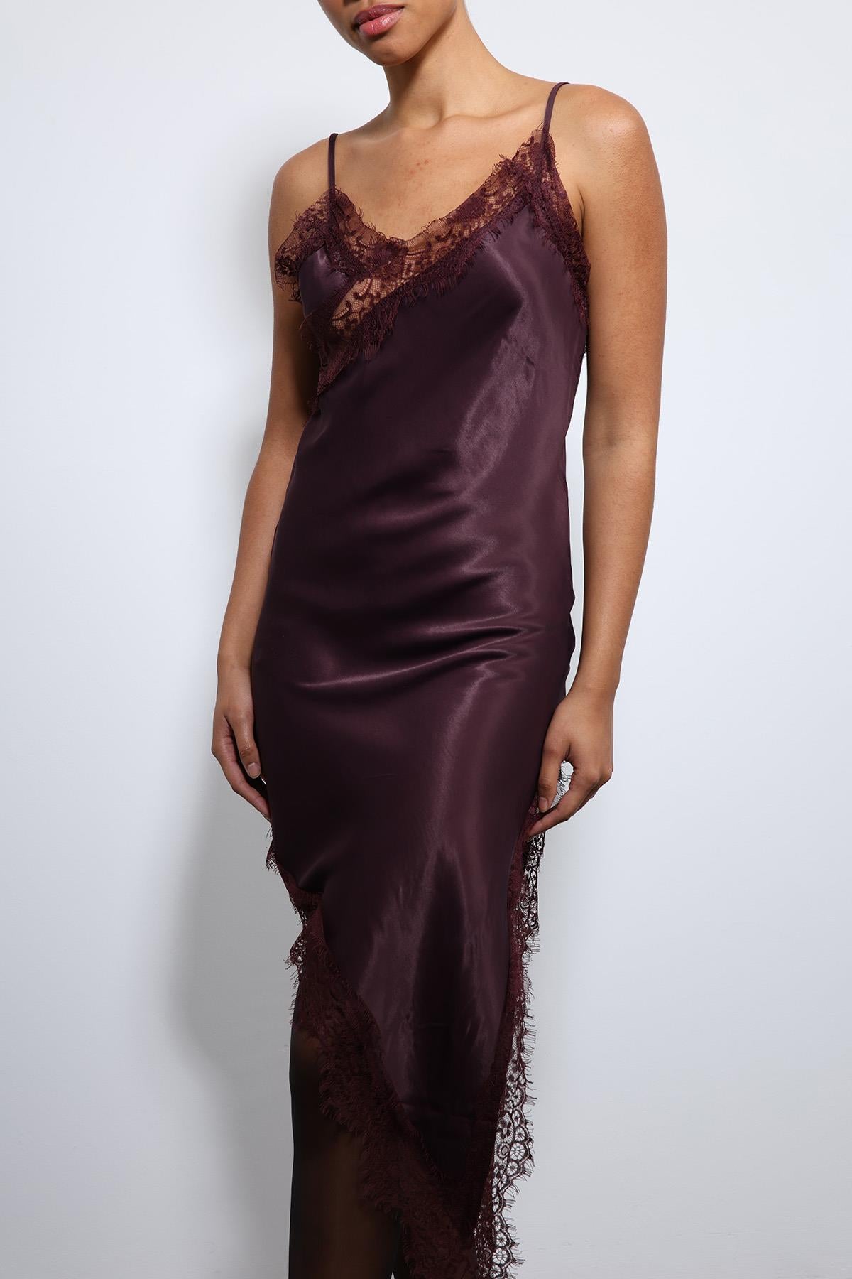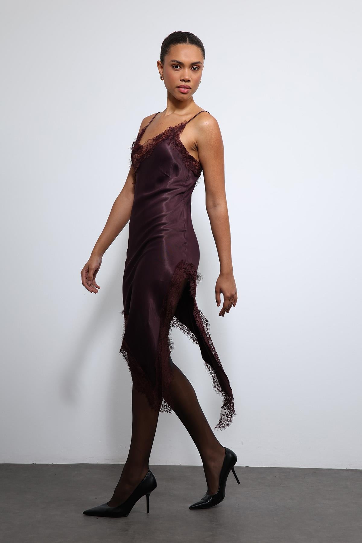 ANT Antioch Bordo Asimetrik Dantel Elbise - New Brunswick