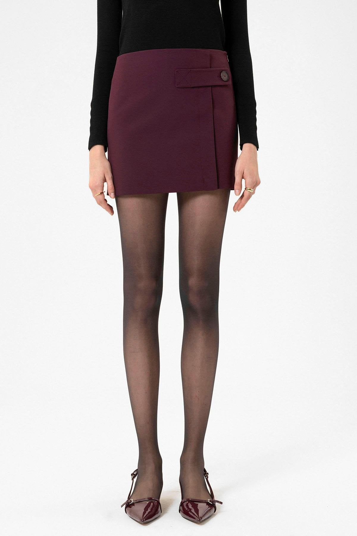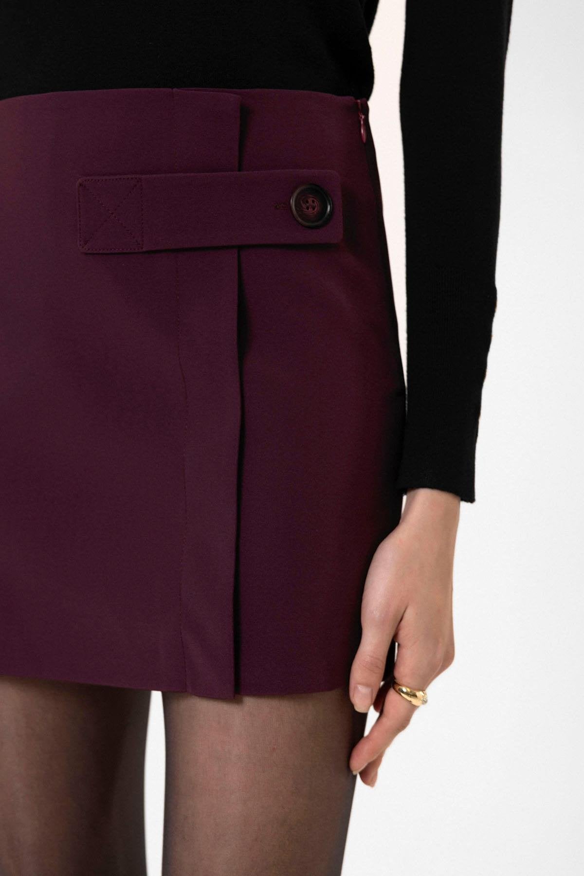 ANT Antioch Bordo Kadın Düğme Detaylı Mini Etek - Florence-Graham