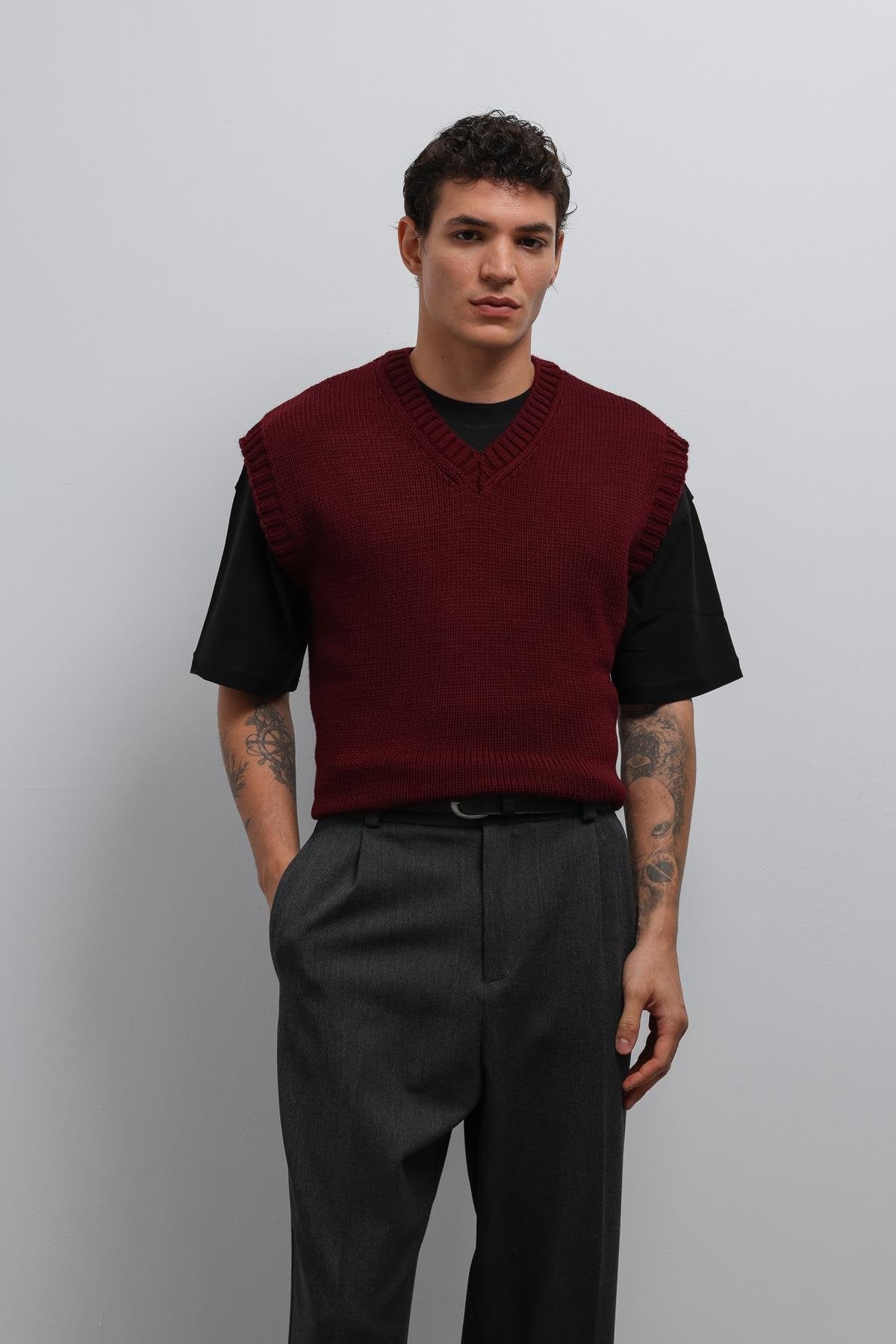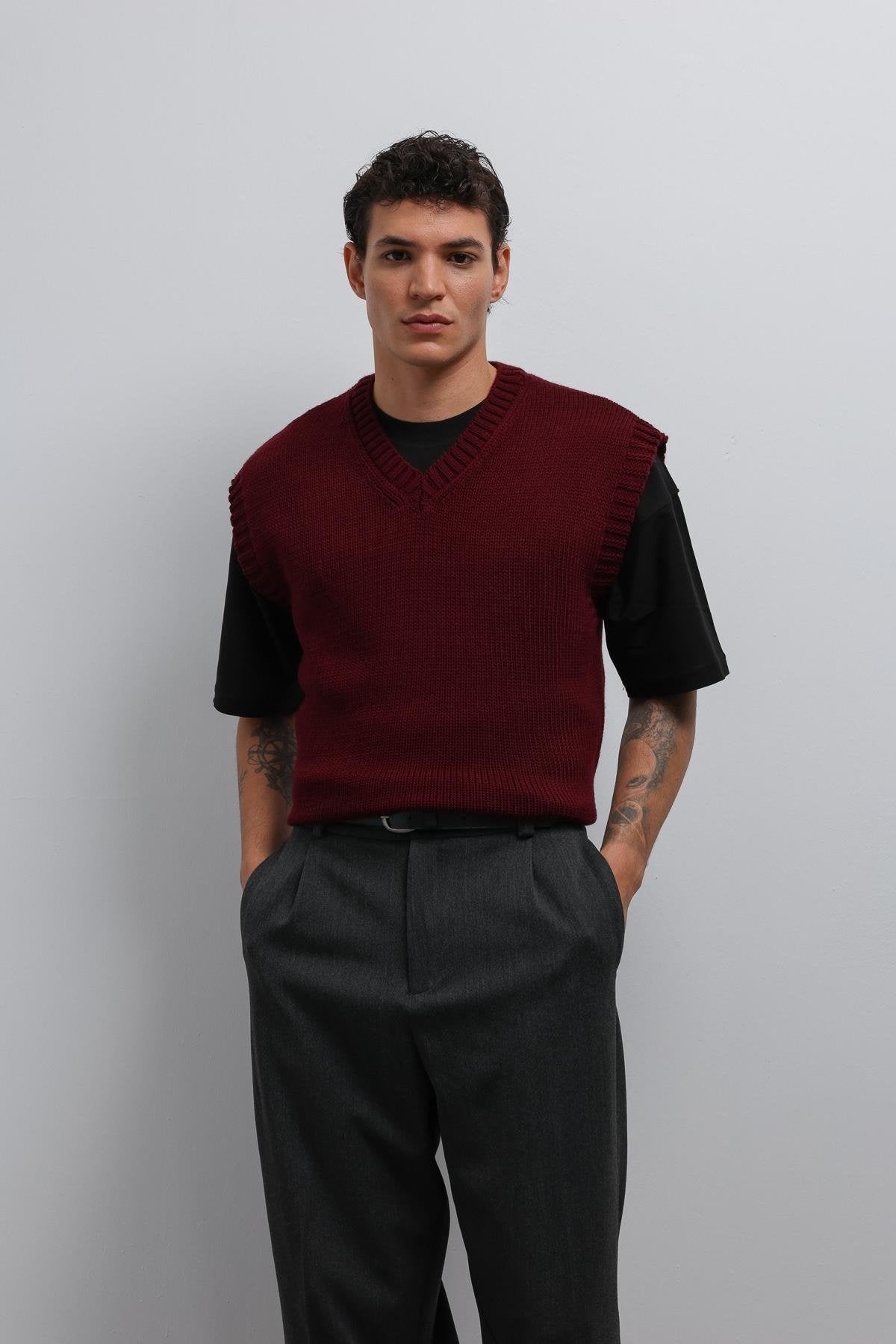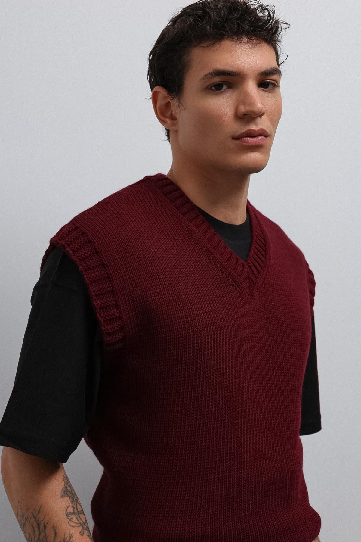 ANT Antioch Bordo Örgü Erkek Triko Yelek - Calimera
