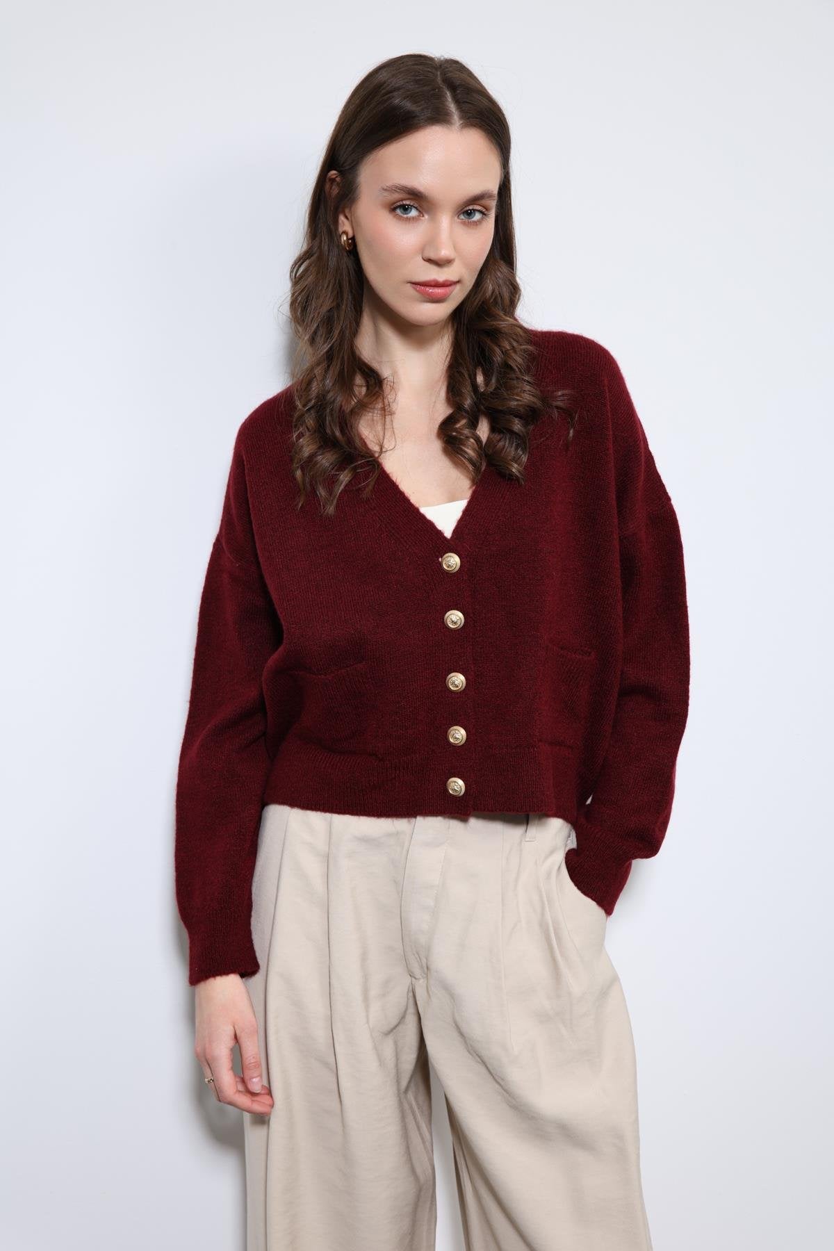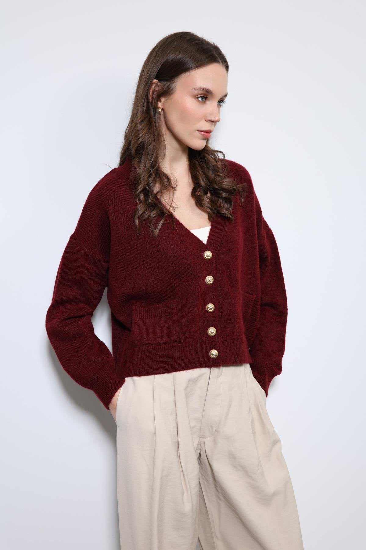 ANT Antioch Bordo Yün Karışımlı Örme Triko Hırka - Lehrte