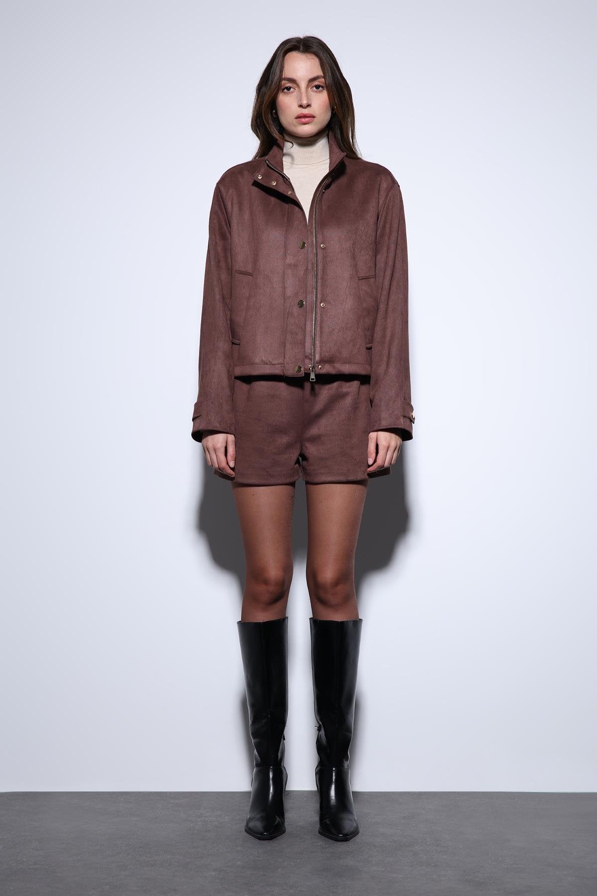 ANT Antioch Coffee Suede-Look Pleated Women's Shorts - Montclair
