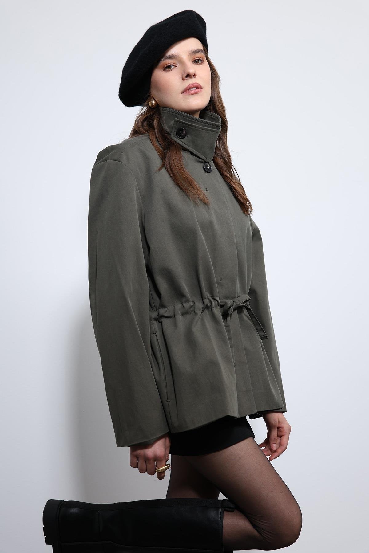 Antioch Kadın trençkot tek rengin hakimiyetinde minimal formlu karakteristik tasarımıyla dikkat çekiyor. Soğuk havalarda her stilde kullanıma uyum sunan ayrıcalıklı tasarım Bağcıklı detayı ve Düğme kapamasıyla kusursuz duruş sunuyor. Yandan Cepli tasarım soğuk havalarda sıcak ve son derece konforlu hissetmenizi sağlıyor. Sadeliği sayesinde sıklıkla tercih edebileceğiniz tasarım stil sahibi ve çarpıcı bir görünüm kazanmanızı sağlıyor ve gözleri üzerinize çekiyor.