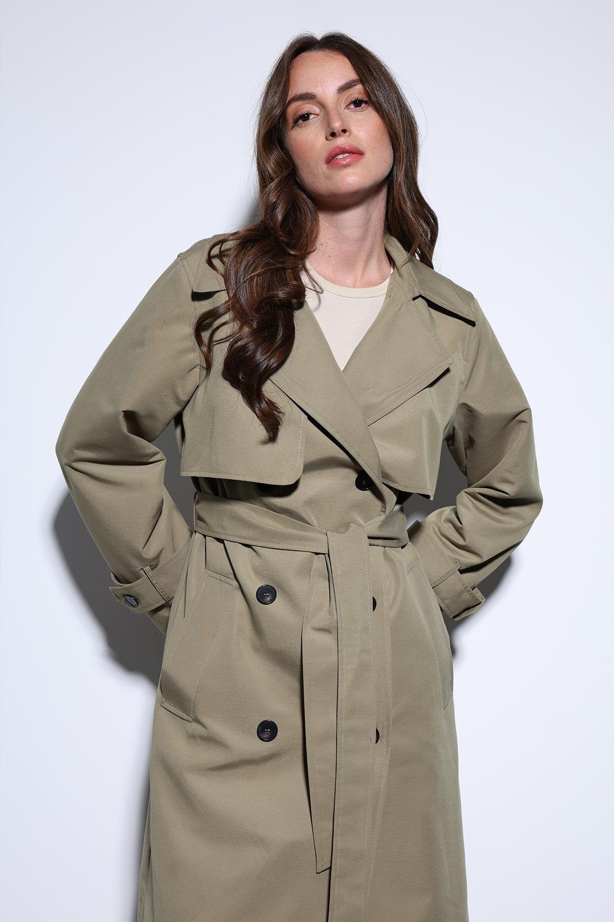 ANT Antioch Haki Kruvaze Kemerli Kadın Trençkot - Petroúpoli