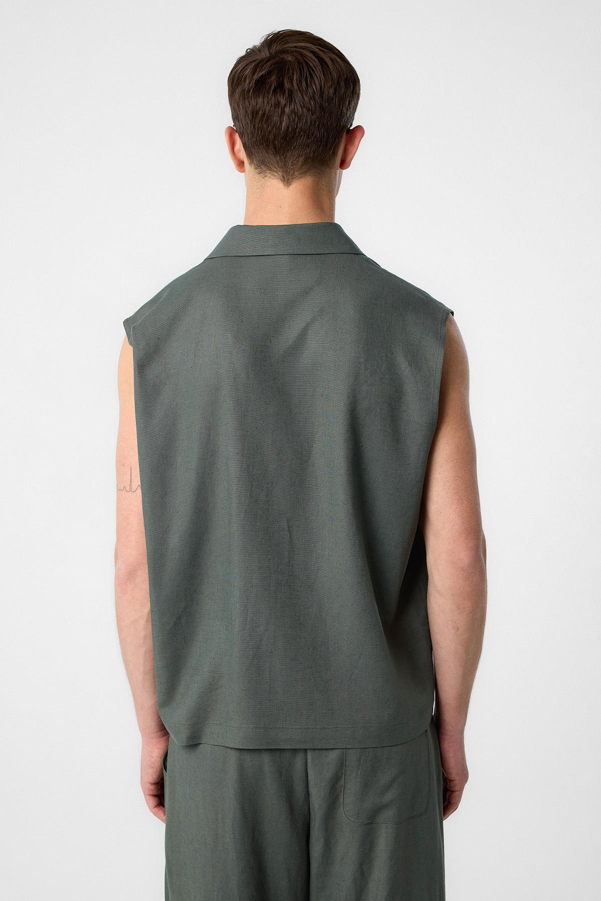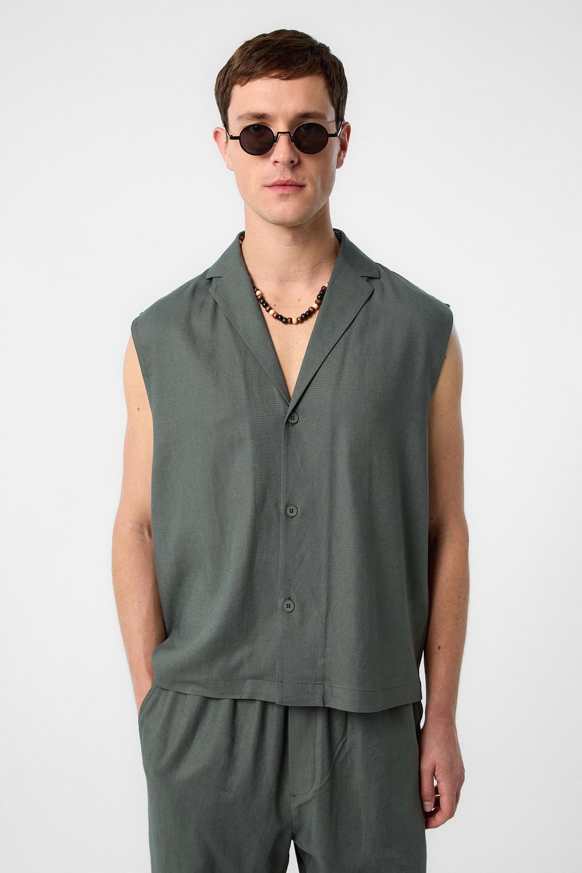 ANT Antioch Haki Linen Blend Sleeveless Men's Shirt - Woodbridge
