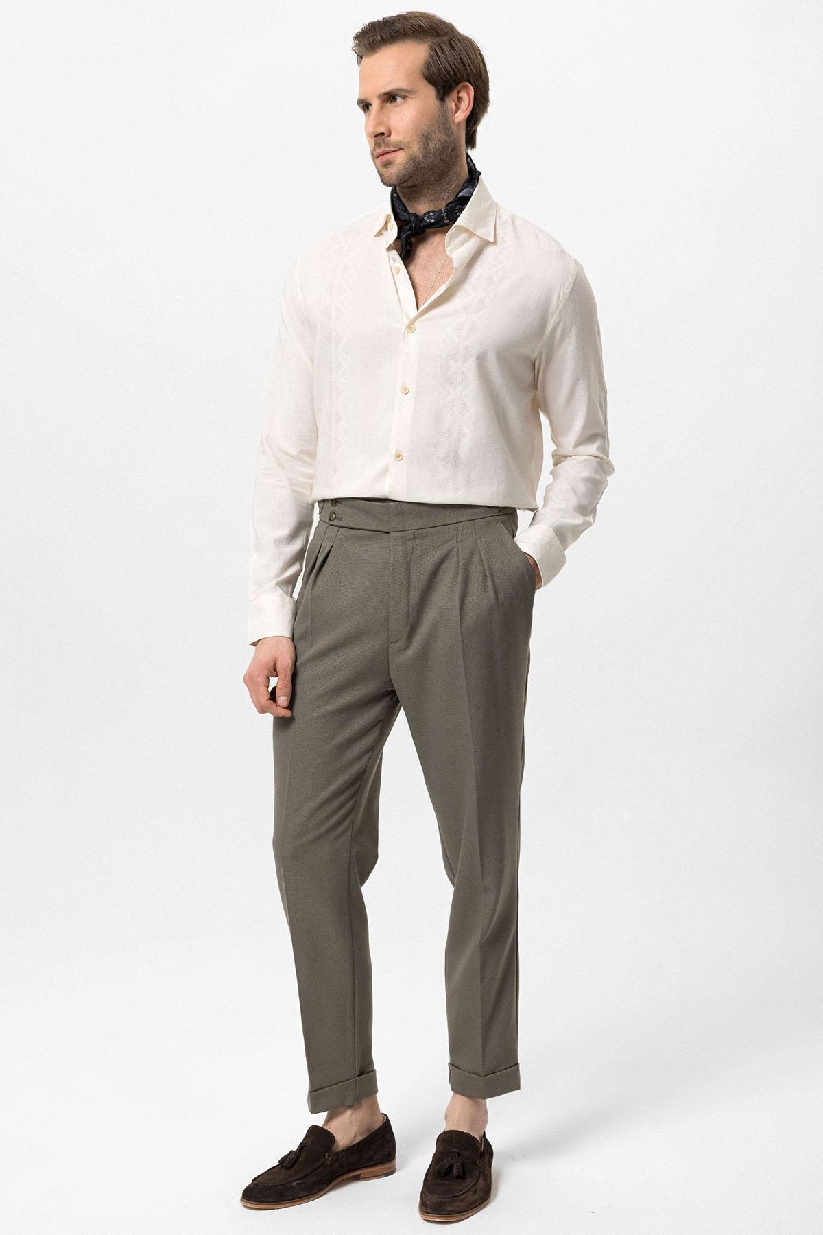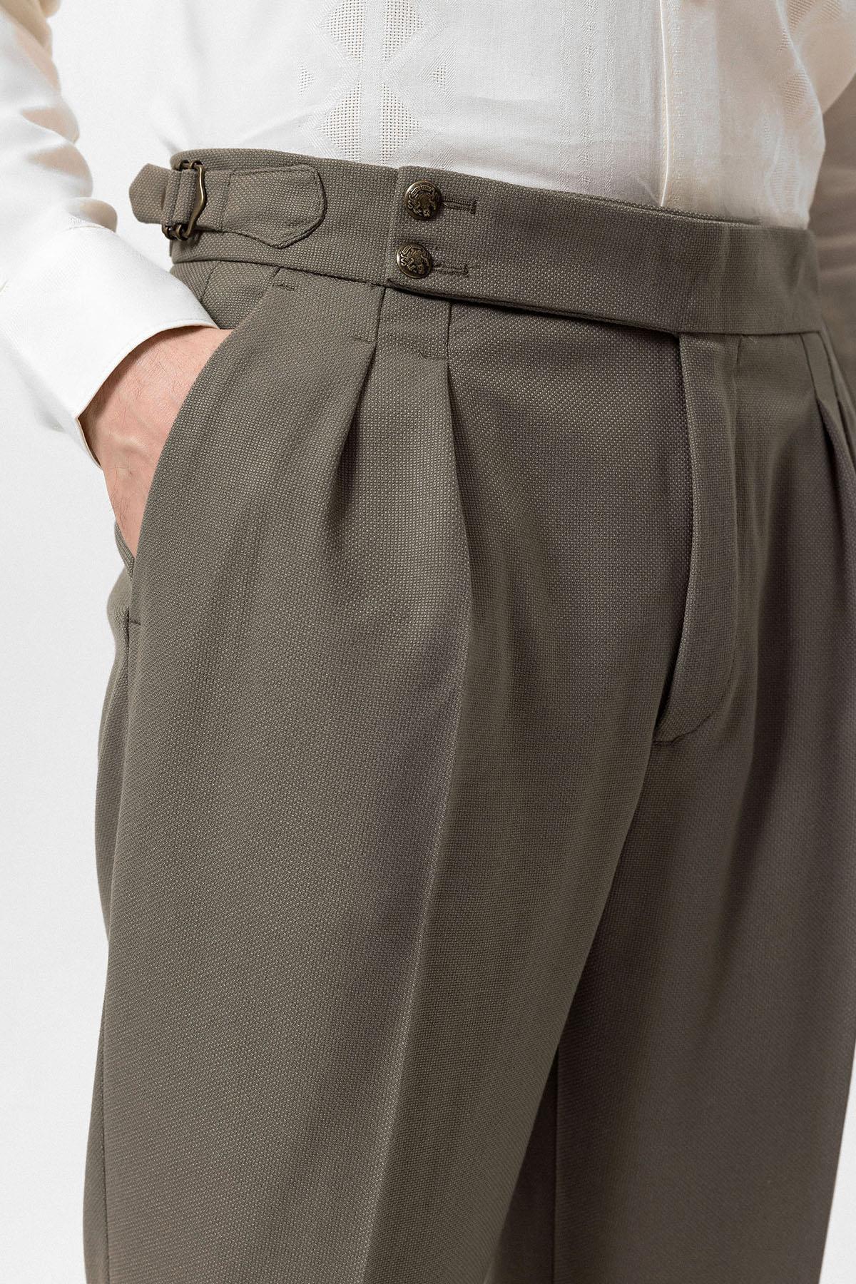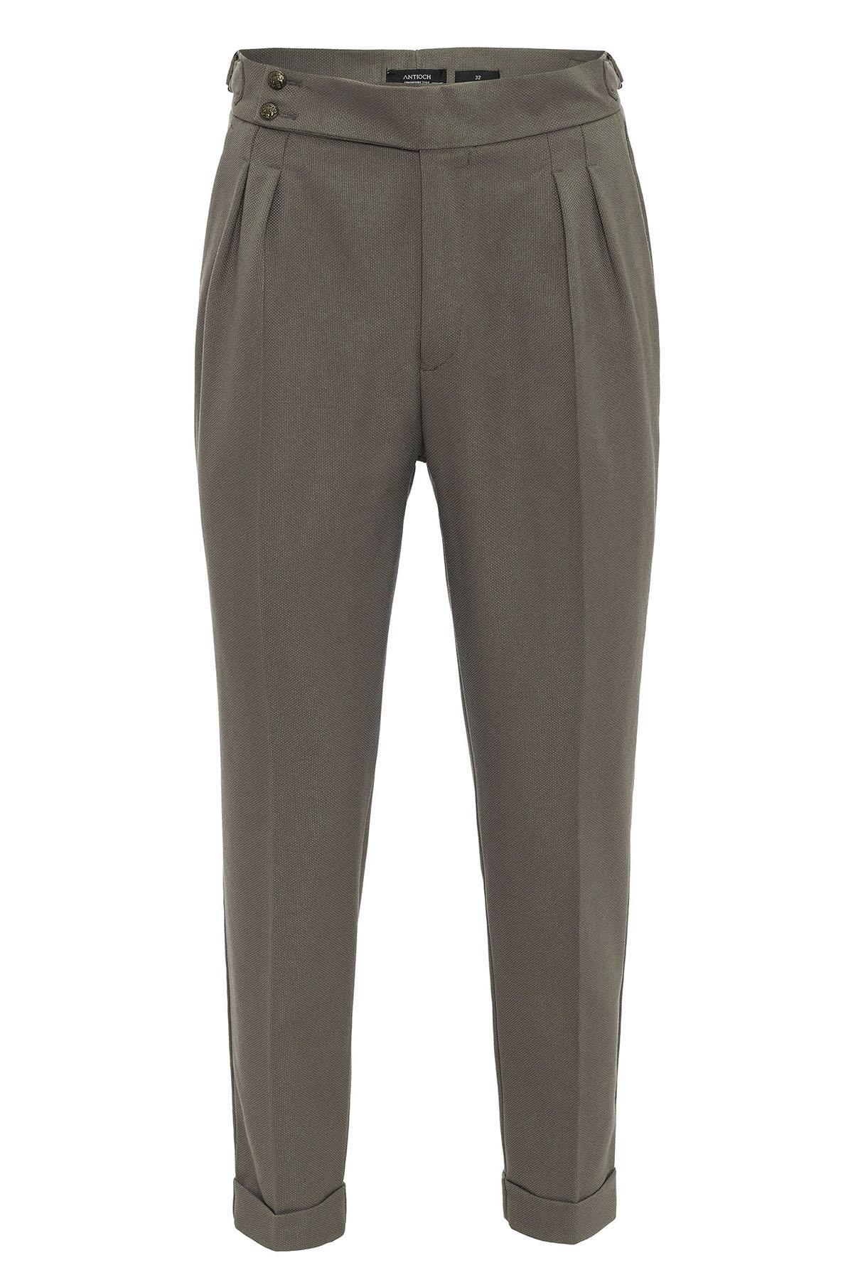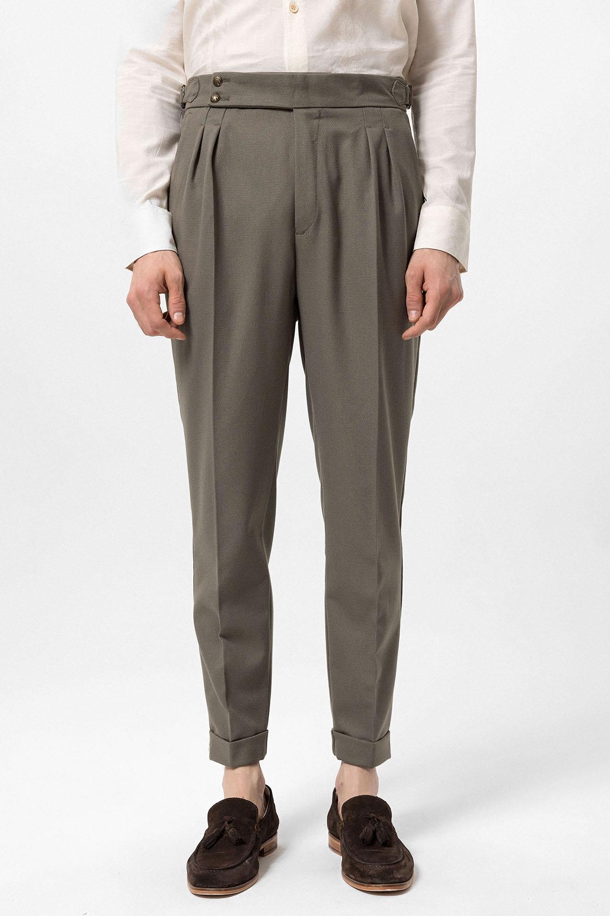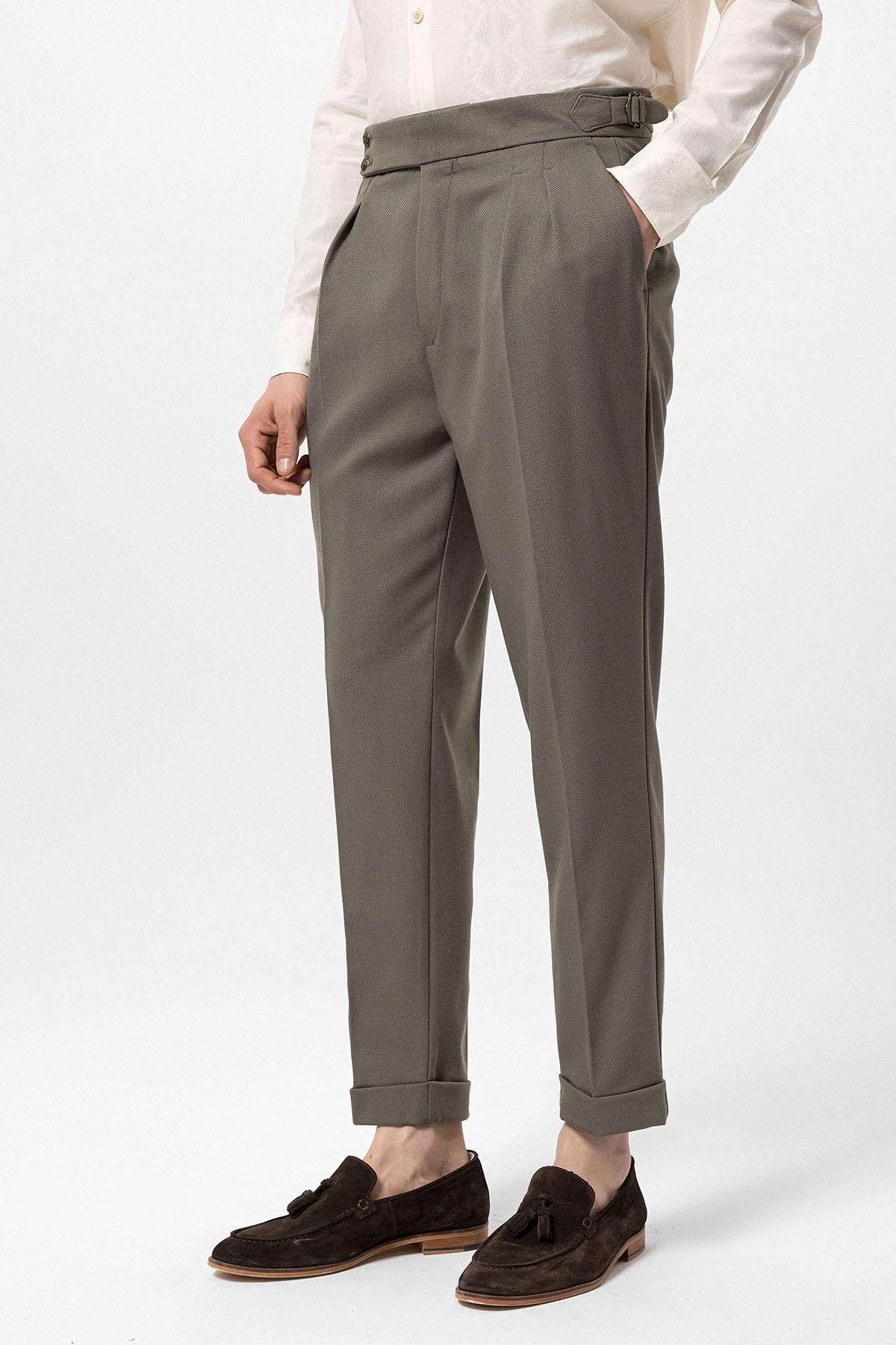 ANT Antioch Haki Yüksek Bel Yandan Tokalı Pileli Kumaş Pantolon - Fair Lawn
