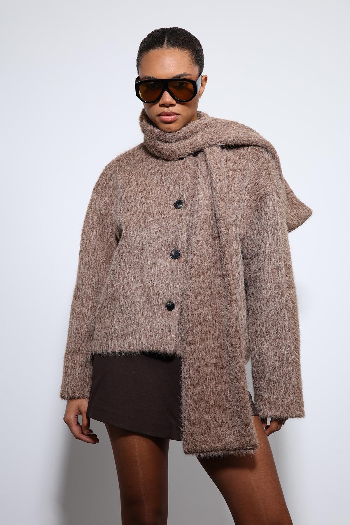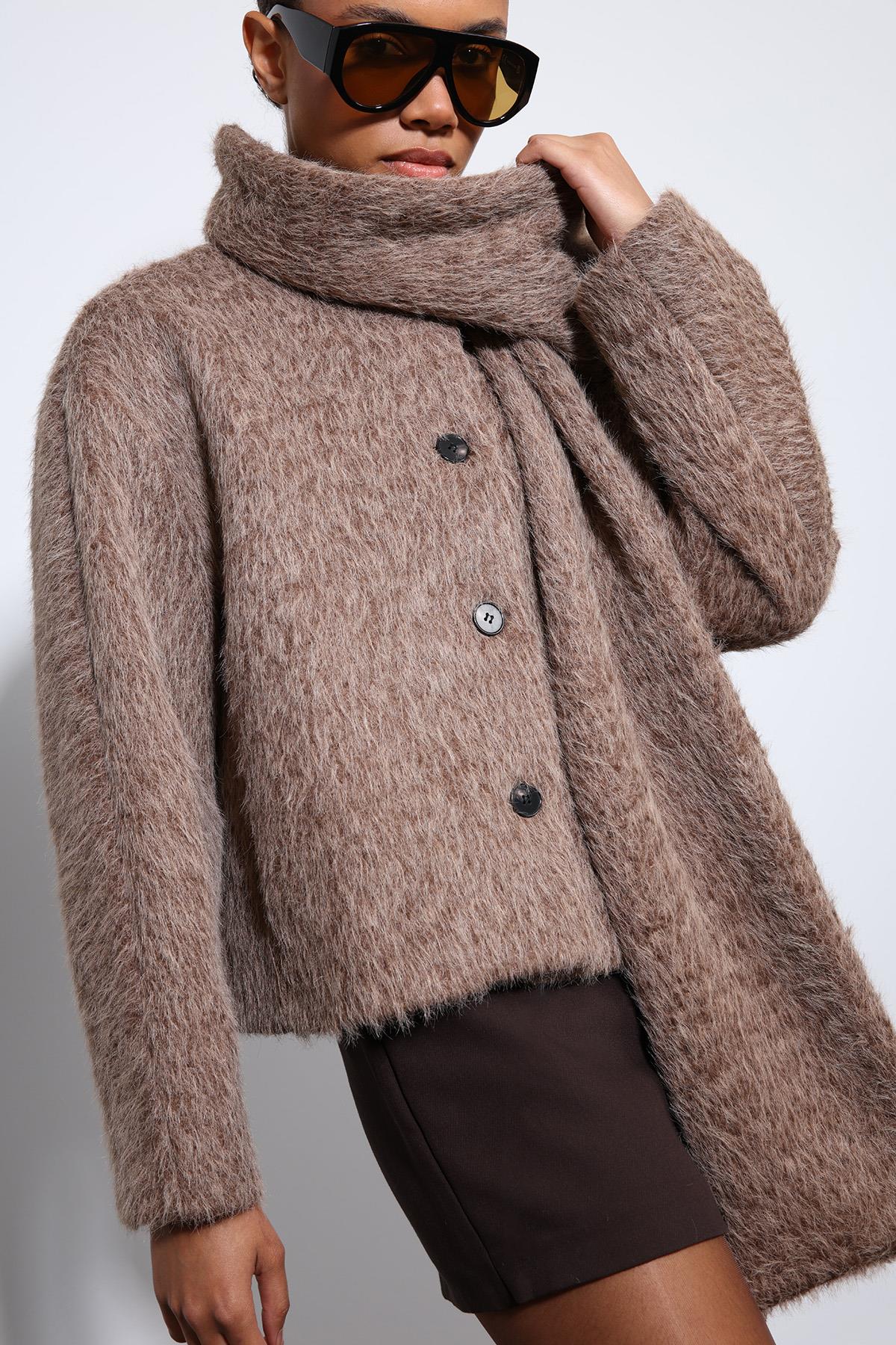ANT Antioch Kahve Atkı Yaka Suni Kürklü Kaban - Stains