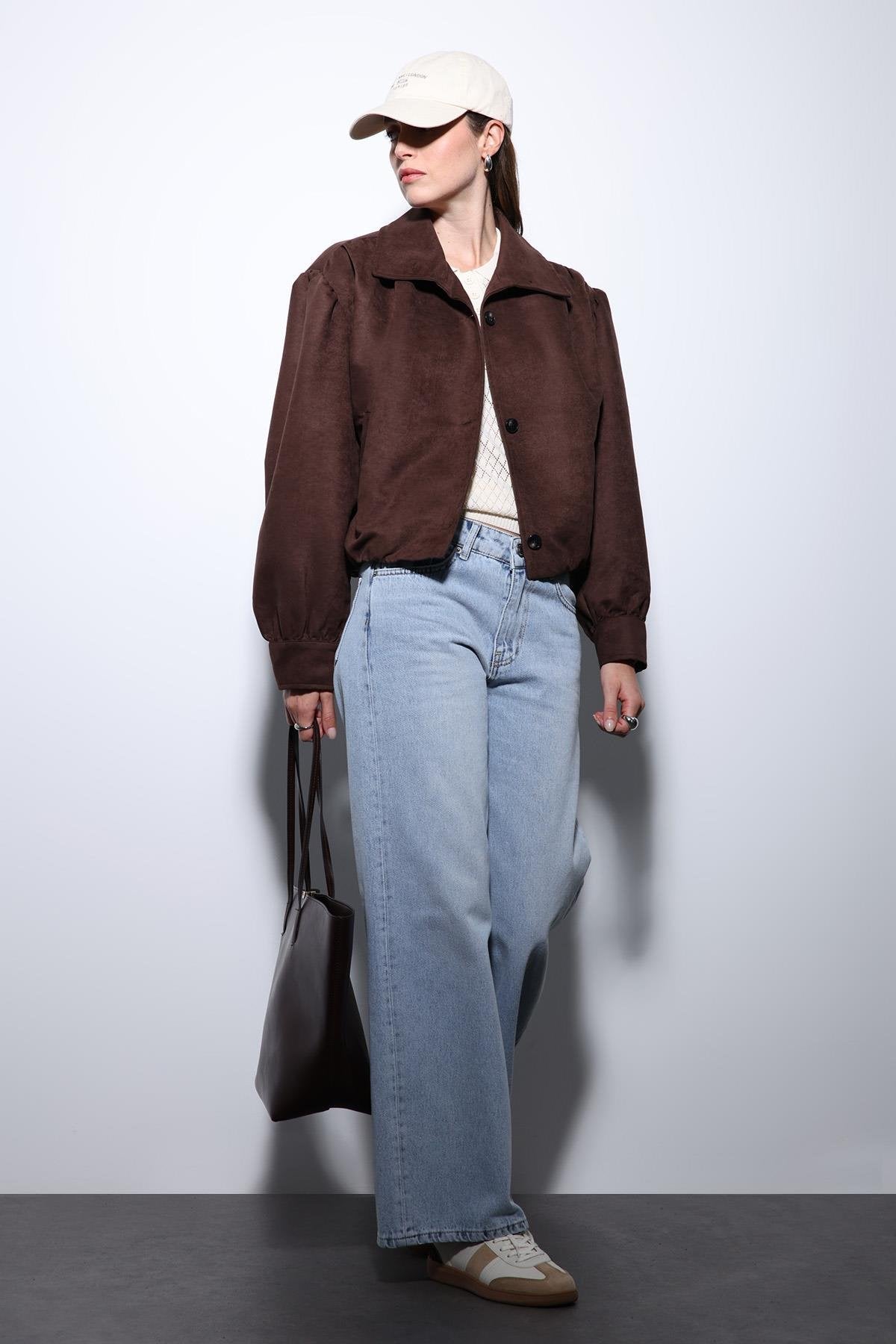 ANT Antioch Kahve Süet Görünümlü Bomber Kadın Ceket - Oleksandriia