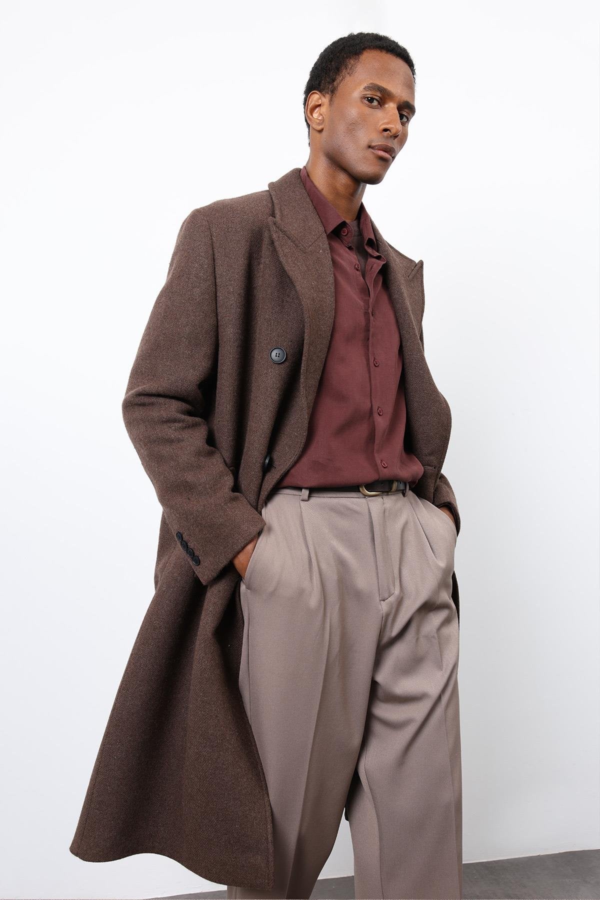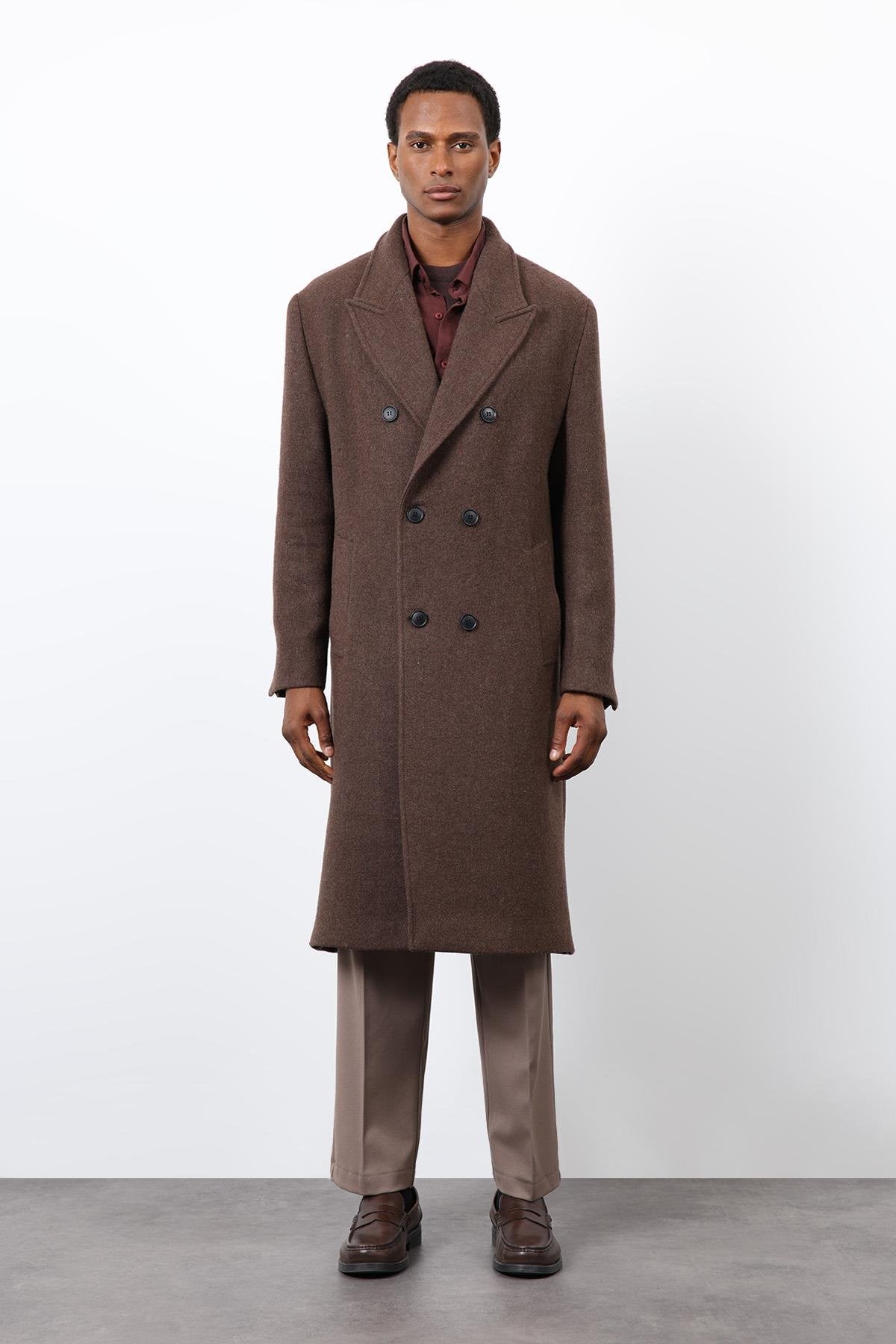 ANT Antioch Kahve Yün Karışımlı Kruvaze Erkek Kaban - Matamoros