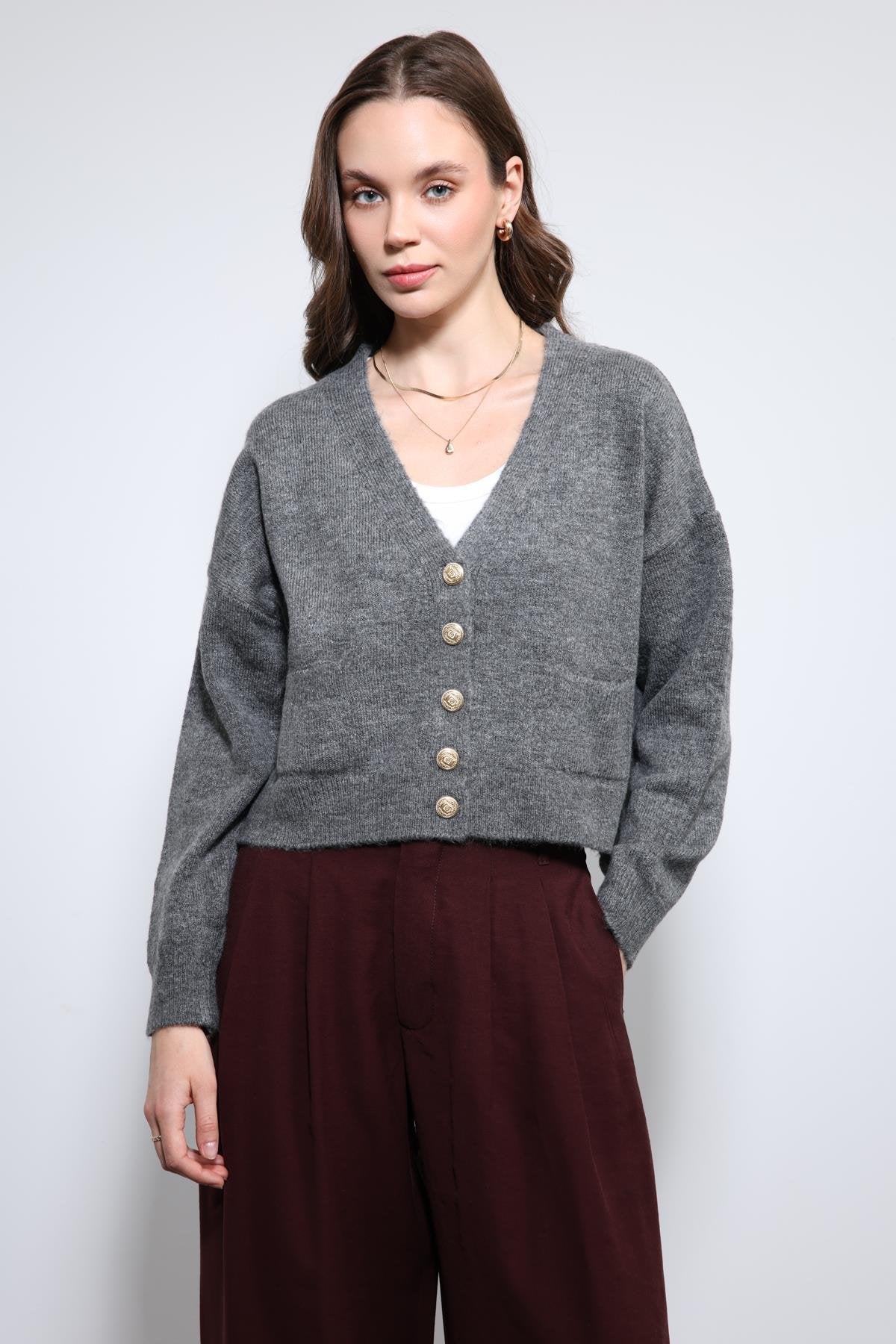 ANT Antioch Koyu Gri Yün Karışımlı Örme Triko Hırka - Guamúchil