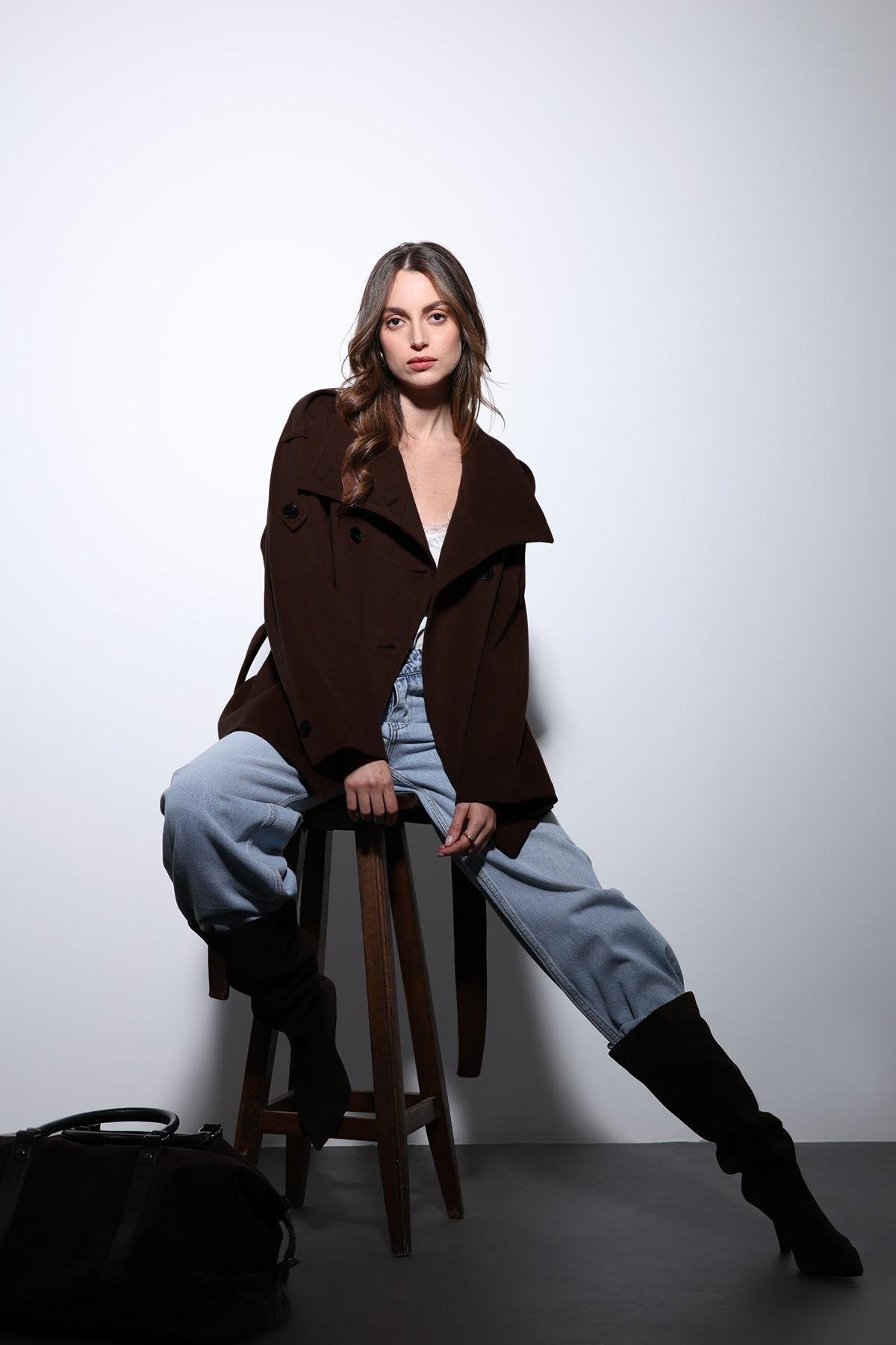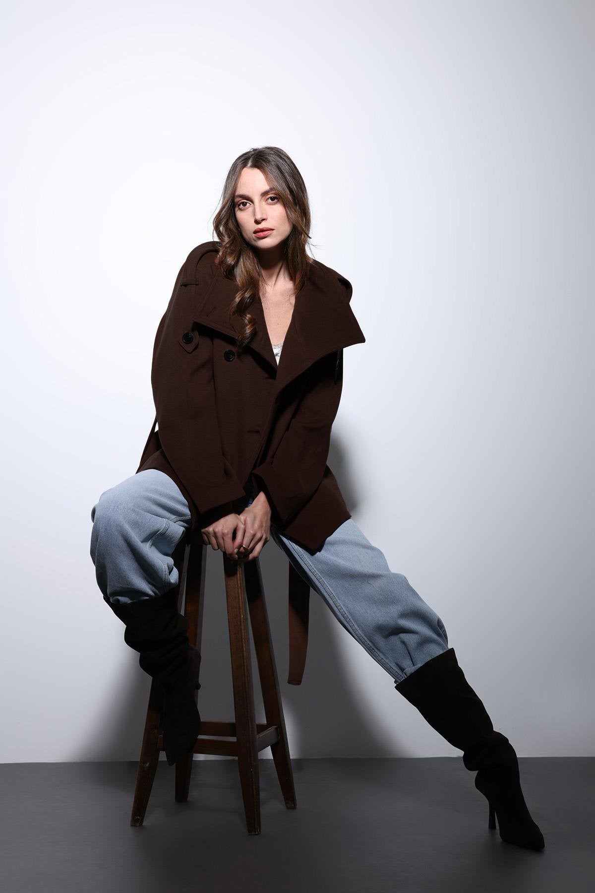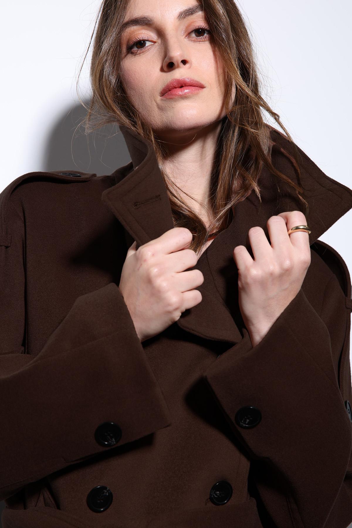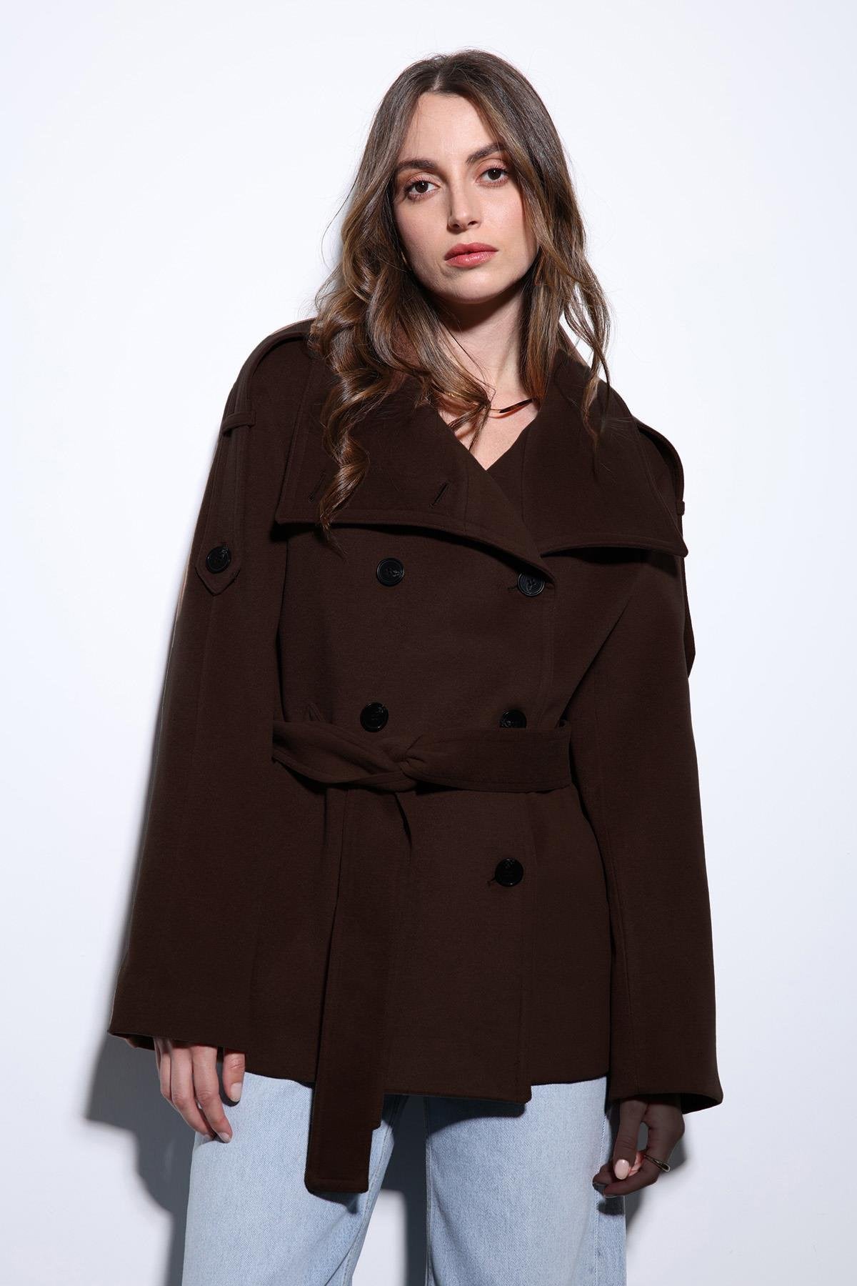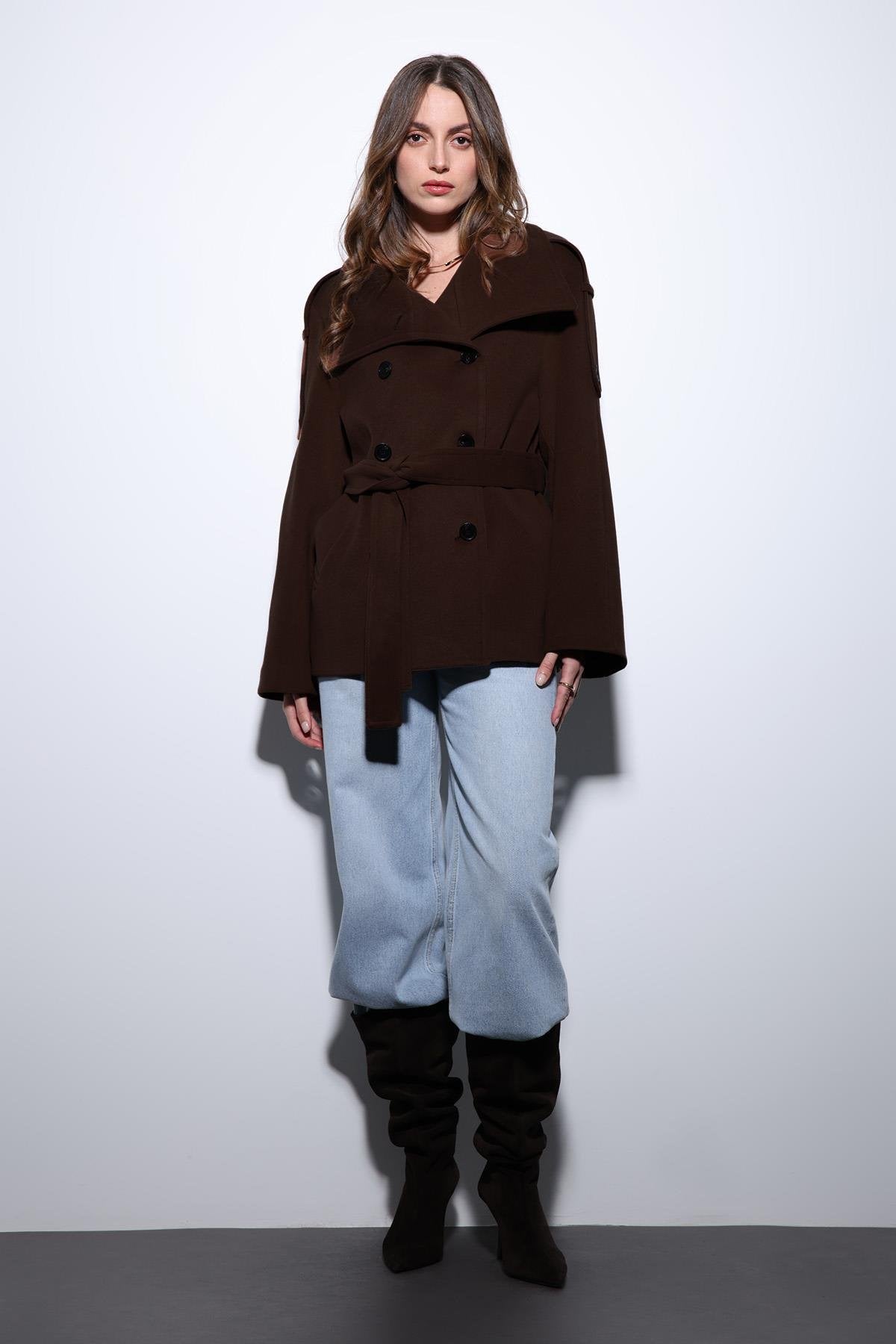 ANT Antioch Koyu Kahve Dik Yaka Kruvaze Kadın Kaban - Waco