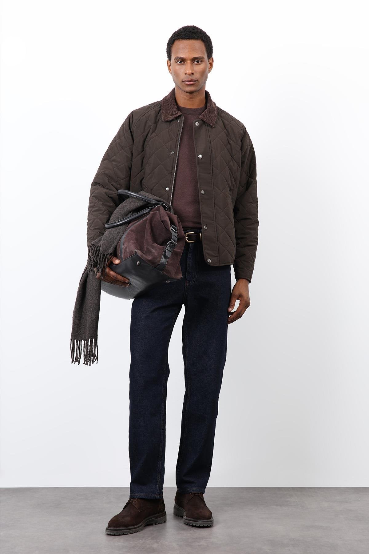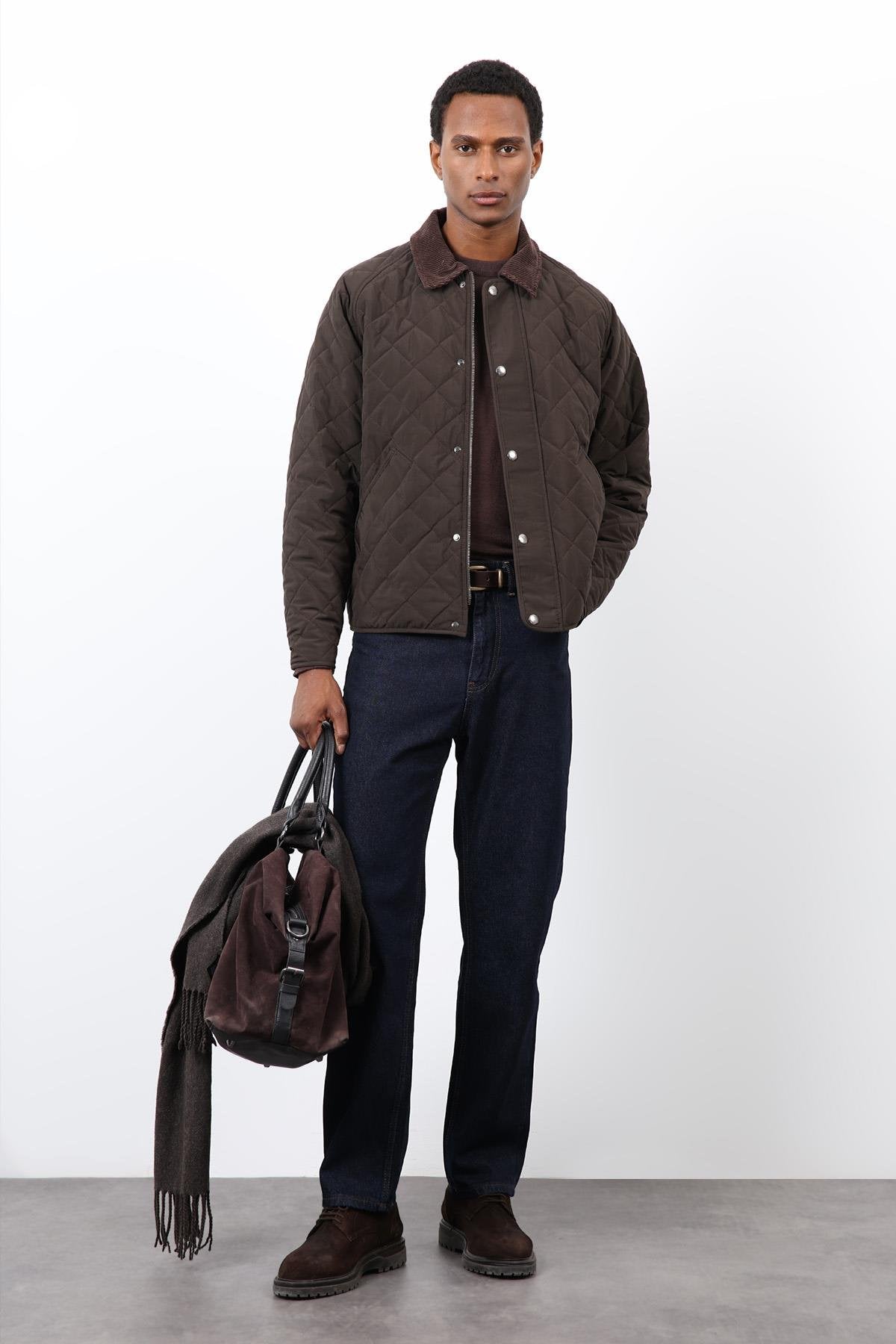 ANT Antioch Koyu Kahve Kontrast Yaka Baklava Desenli Erkek Mont - Soest