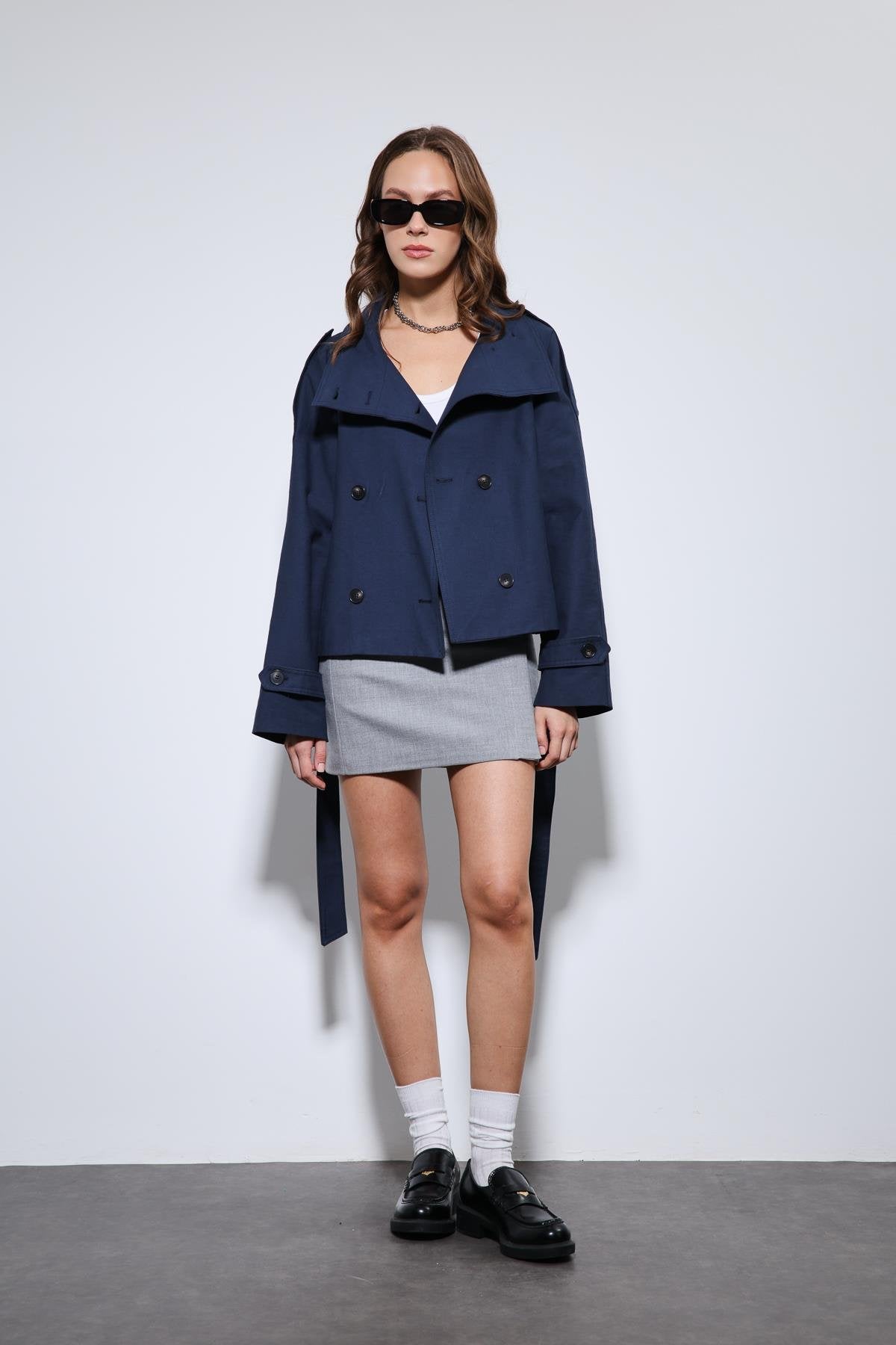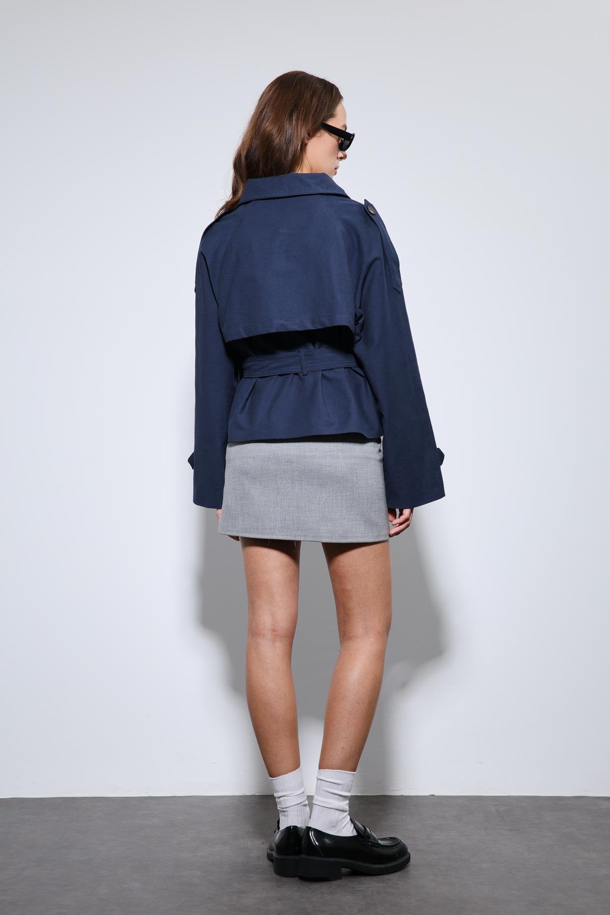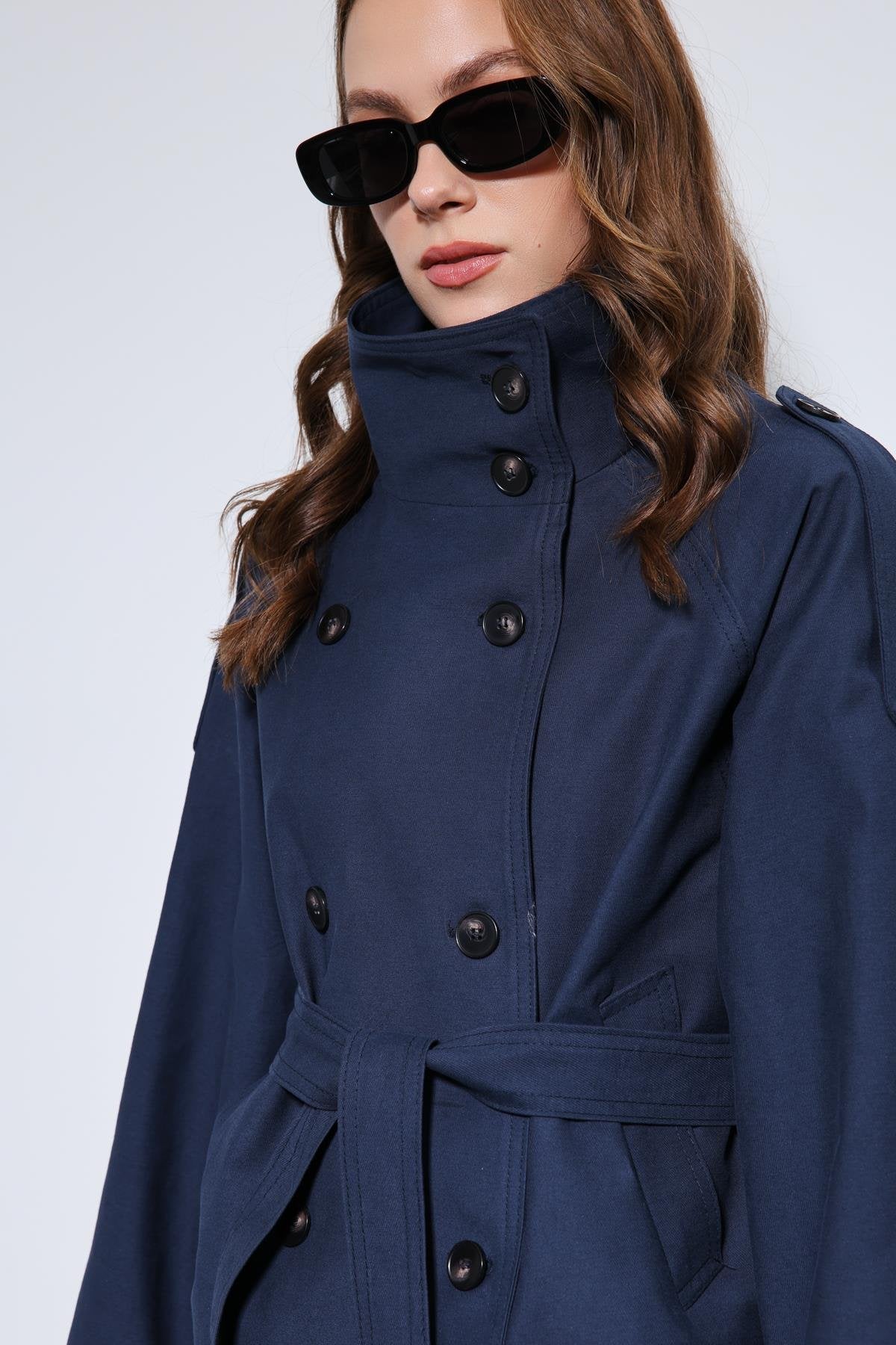 ANT Antioch Lacivert Dik Yaka Kruvaze Trençkot - Eschweiler