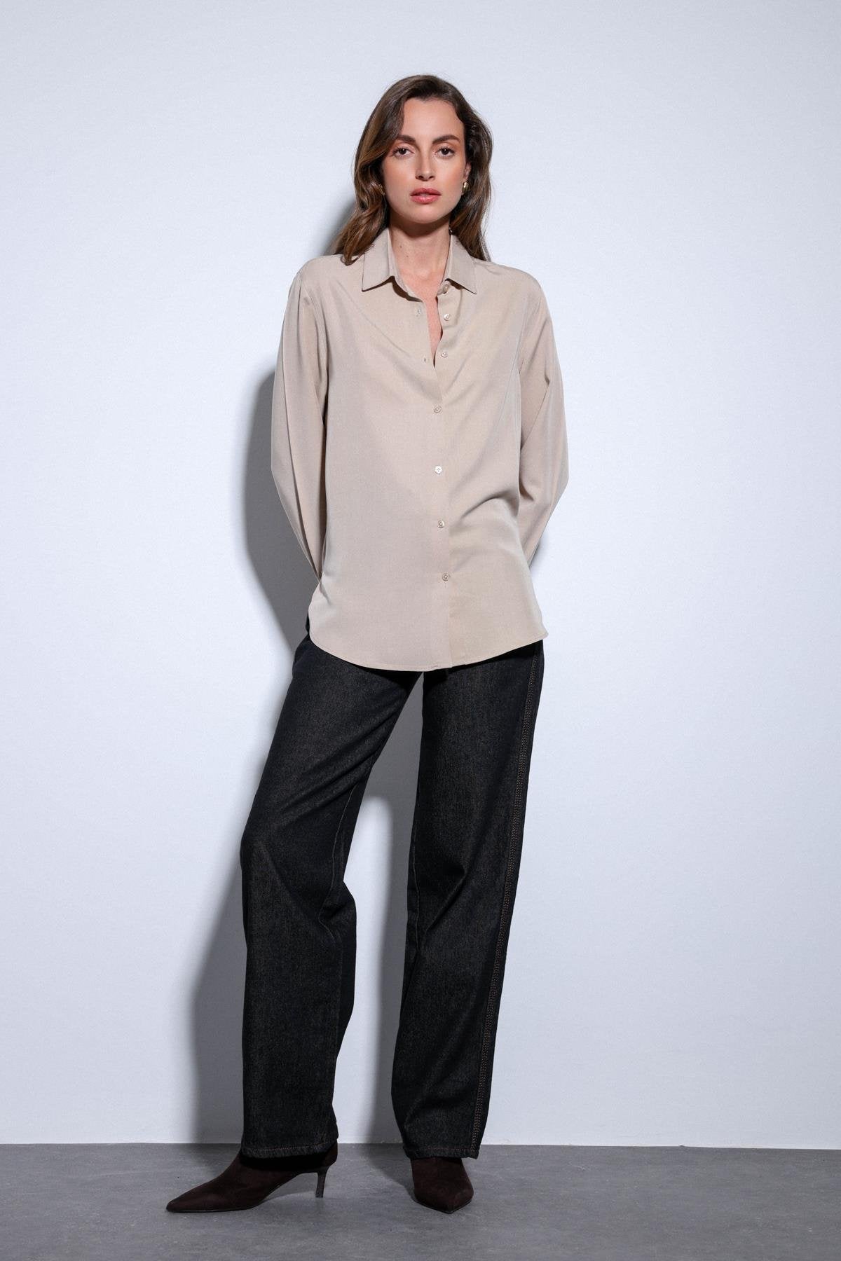 Antioch Long Sleeve Shirt, which stands out with its unique style dominated by beige, impresses with its luxurious design reflecting a characteristic silhouette. The Long Sleeve design is completed with button closure. With its luxurious texture and fit, this design ensures you feel extremely comfortable in your daily urban styles and office combinations. You can pair it with various pants according to your preference, and this design helps you achieve a stylish and bold look, elevating your style one step further.