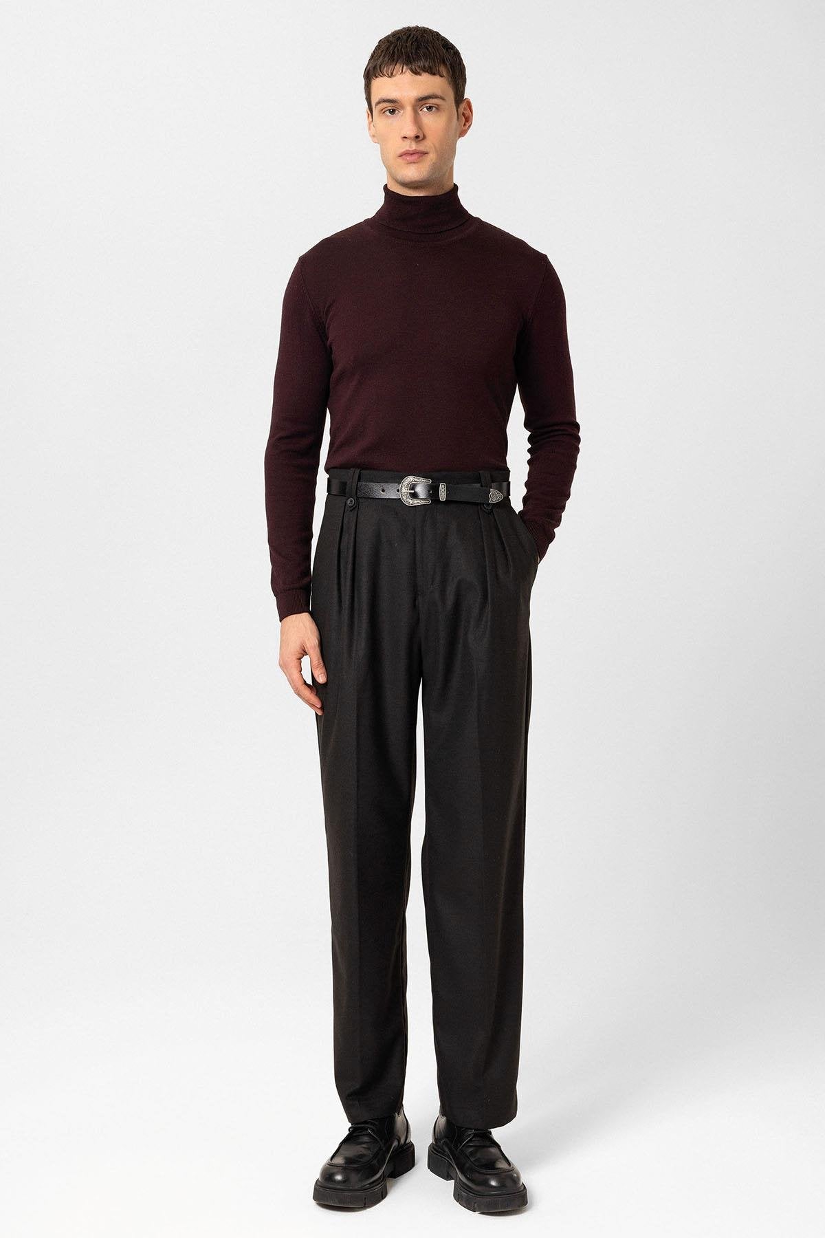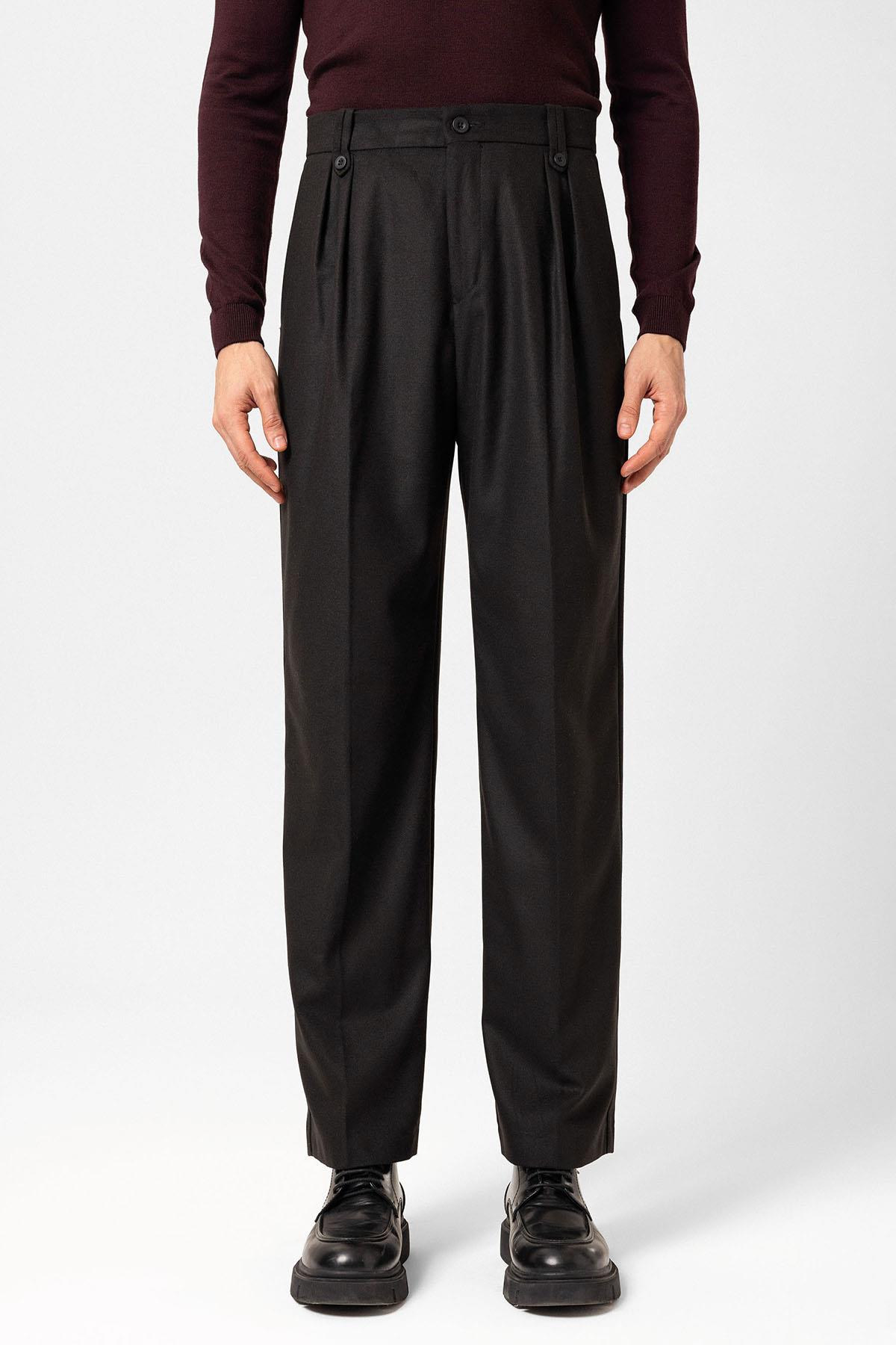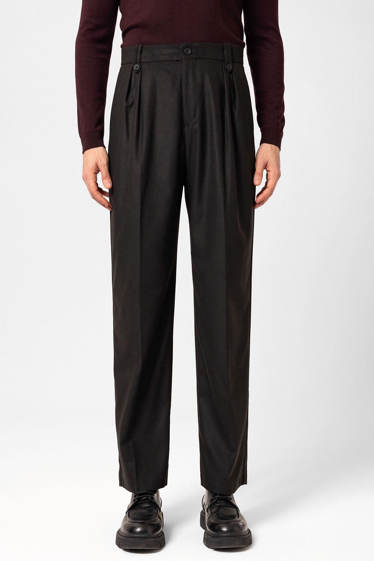 ANT Antioch Siyah Çift Pileli Yüksek Bel Erkek Pantolon - San Severo