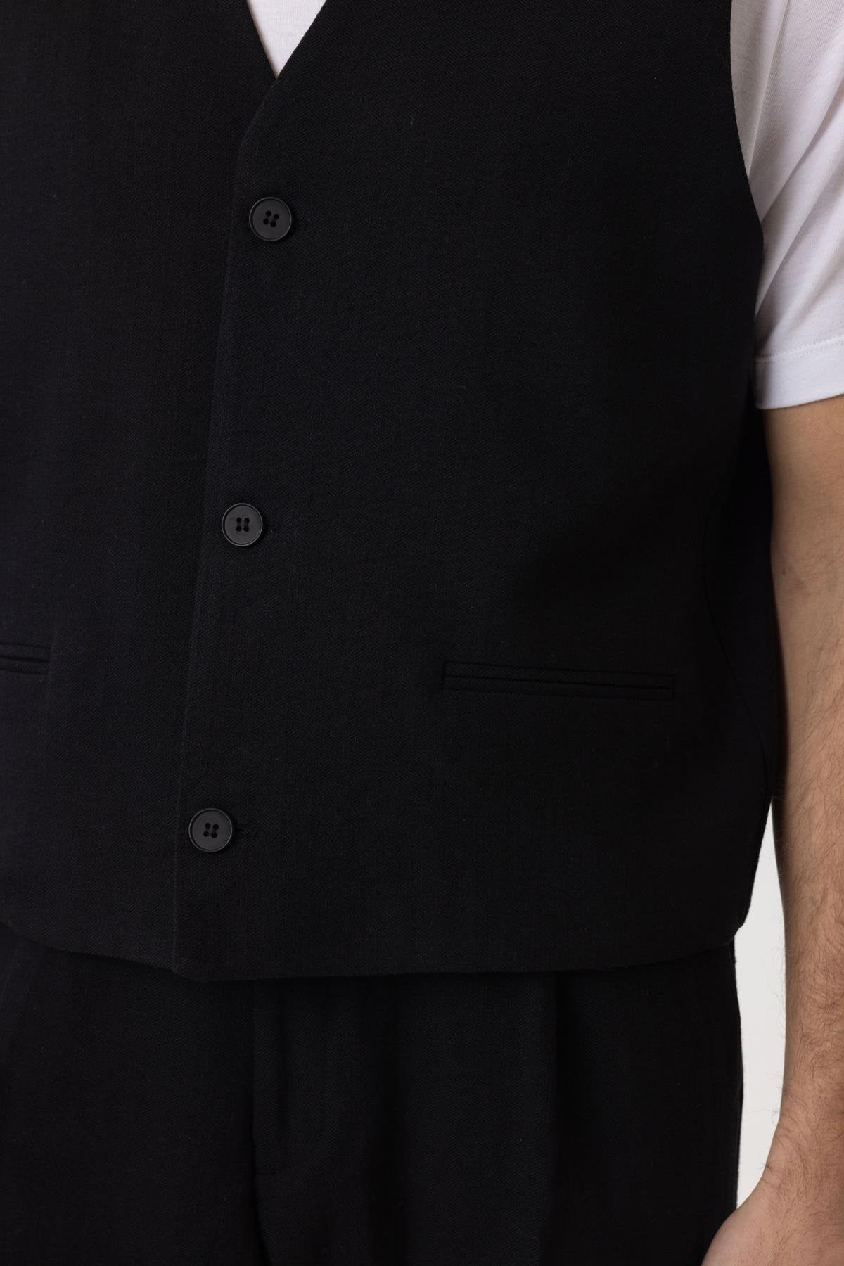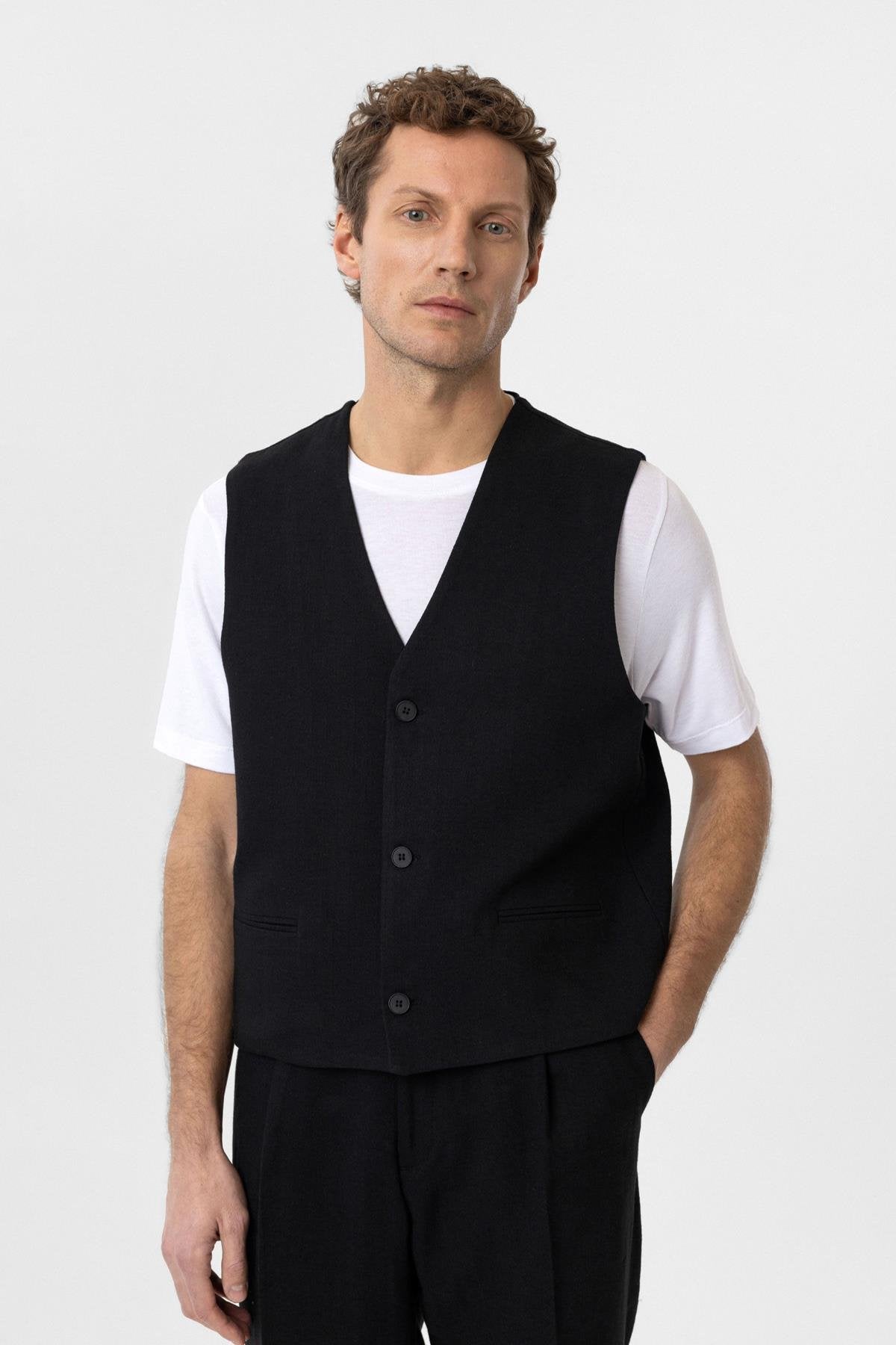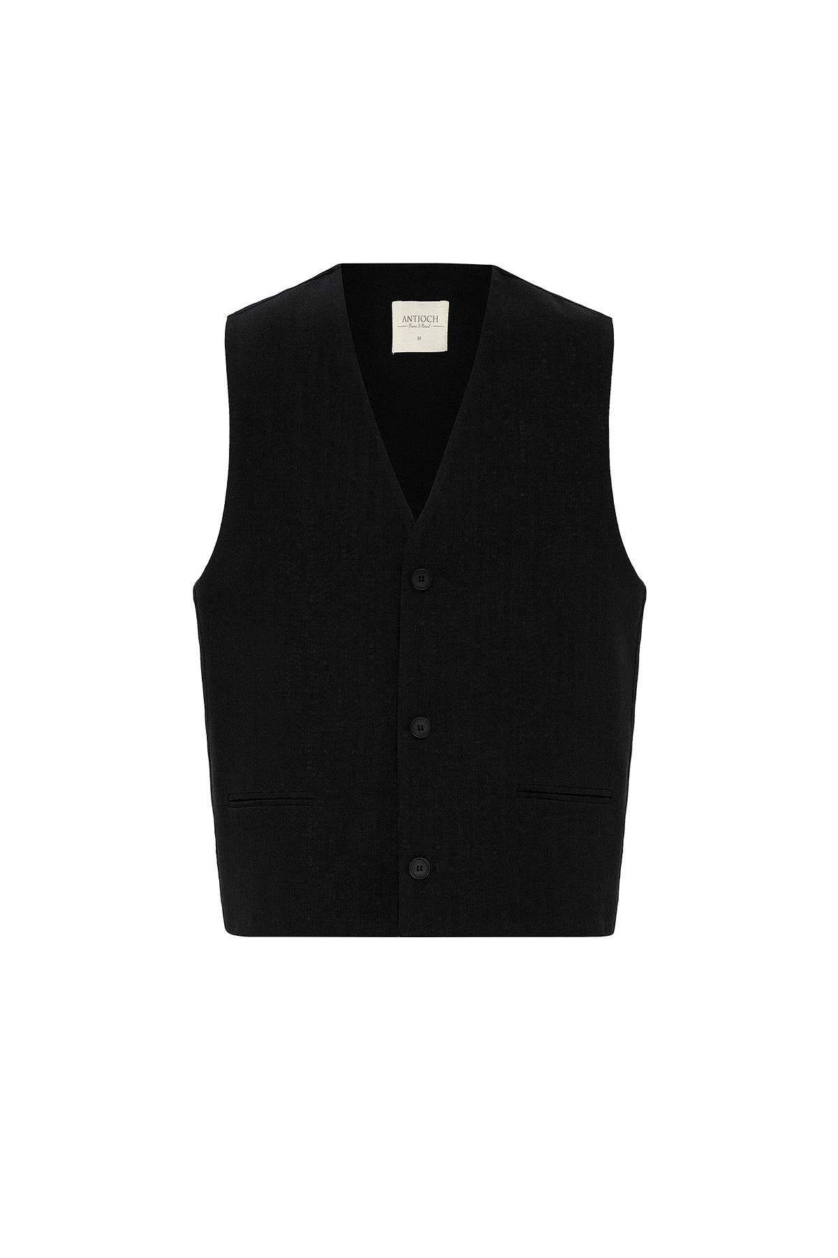 ANT Antioch Siyah Relax Fit Keten Karışımlı Erkek Yelek - Lelystad