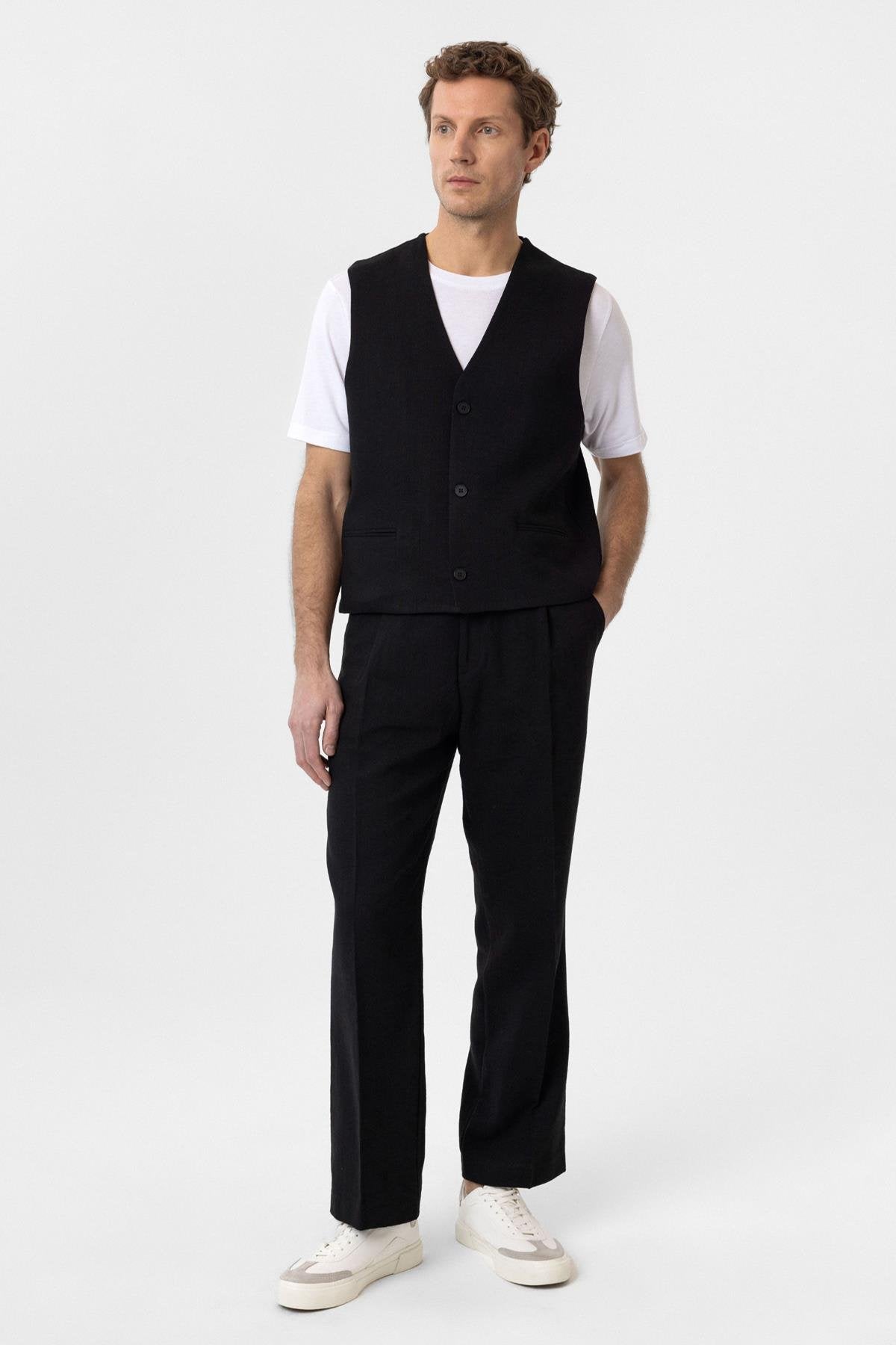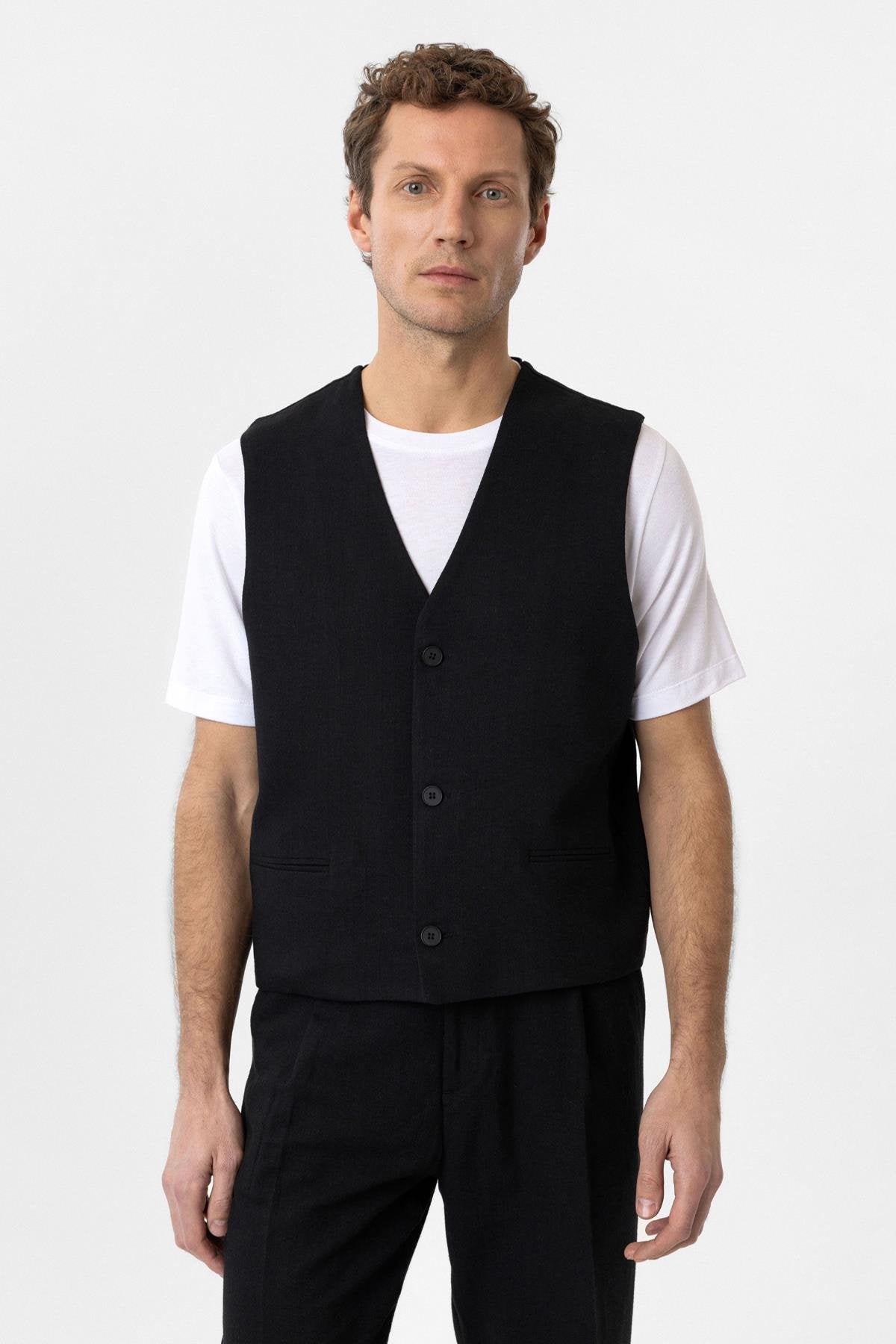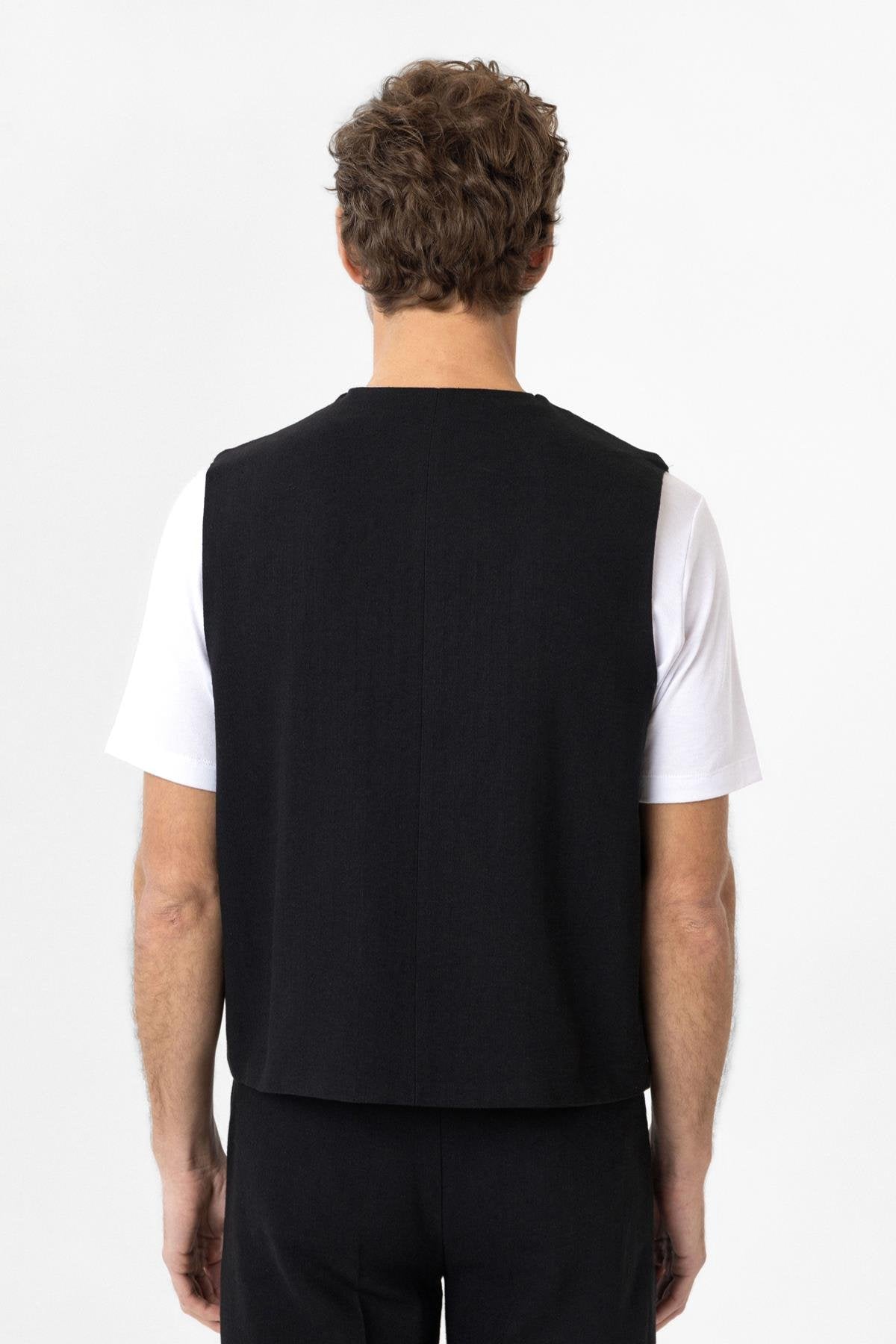 ANT Antioch Siyah Relax Fit Keten Karışımlı Erkek Yelek - Lelystad