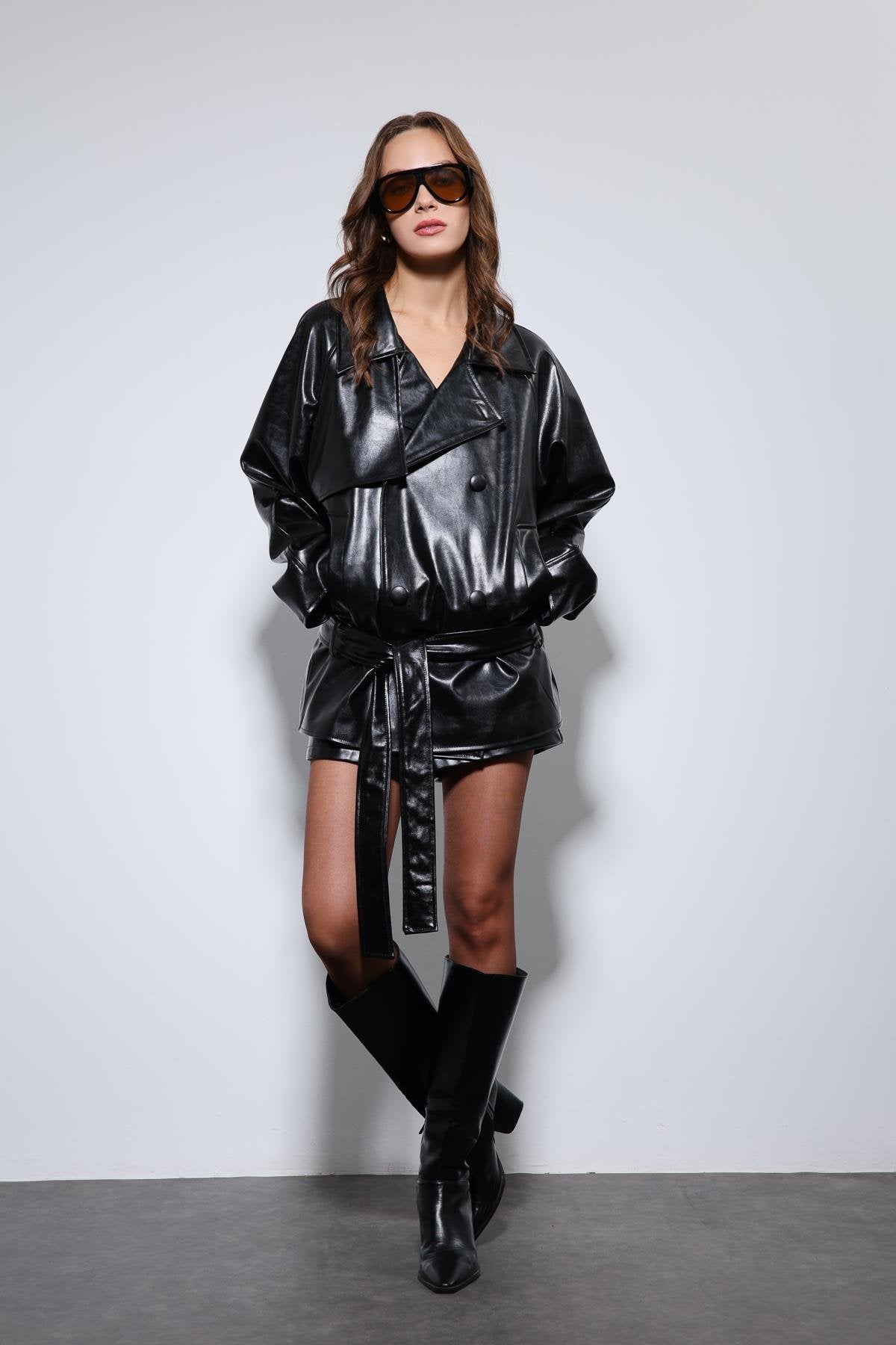 ANT Antioch Siyah Suni Deri Kemerli Trençkot - Ayr