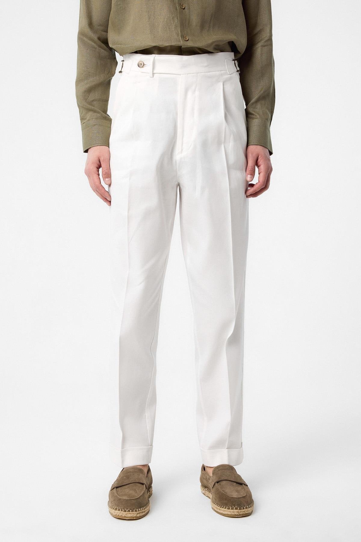 ANT Antioch White Italian Cut High Waist Men's Trousers - Comalcalco