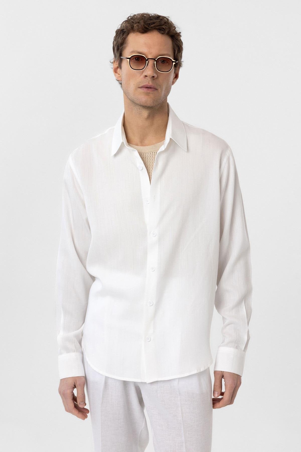 ANT Antioch White Relax Fit Lyocell Fabric Men's Shirt - Clamart