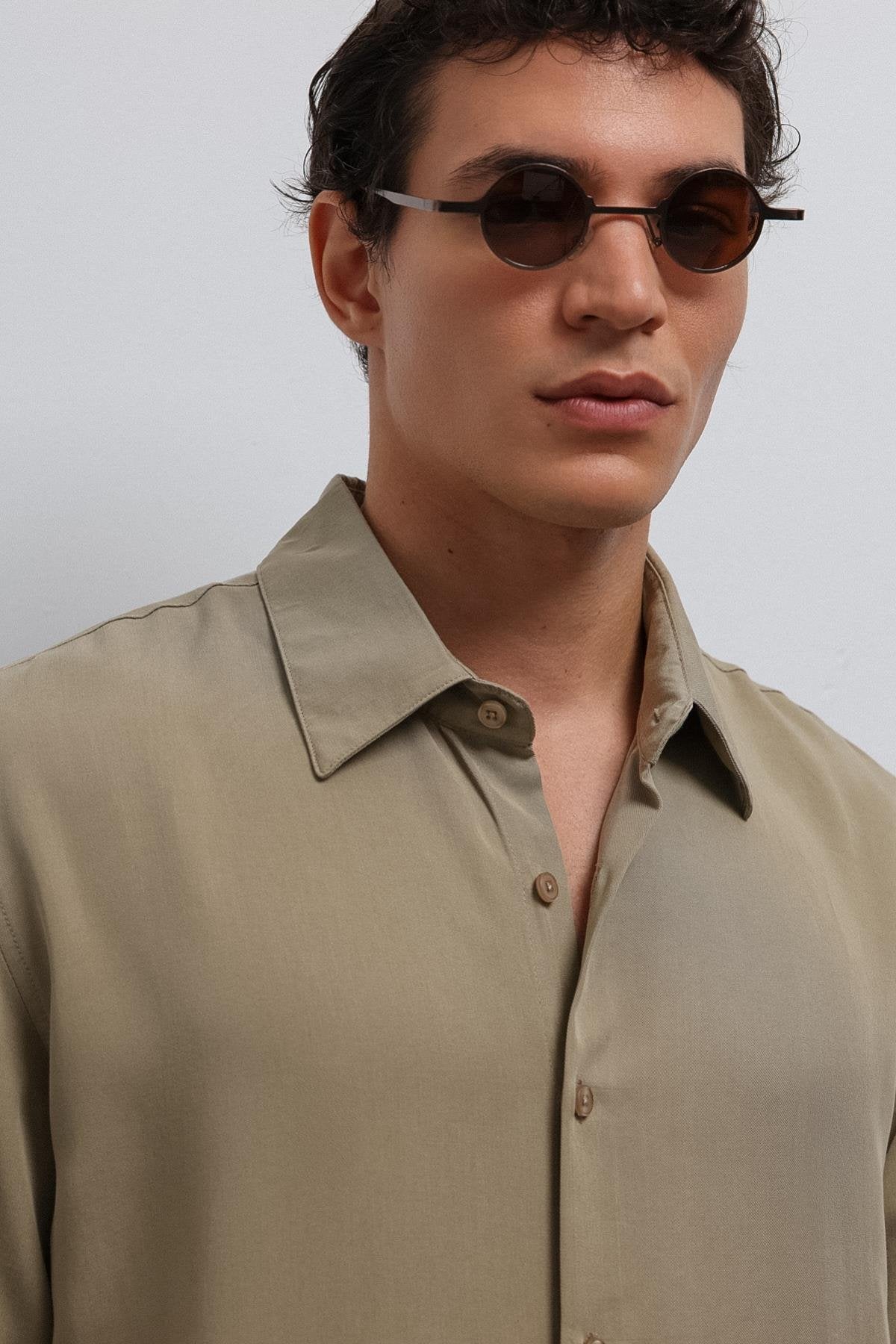 Khaki dominating with its unique stance the Antioch Long arm Shirt stands out with its luxurious design reflecting a characteristic silhouette. The design of Long arm is complemented with Button closure. The design ensures you feel extremely comfortable with its luxurious texture and fit adapting to your daily city styles and office combinations. Depending on your preference the design can be used with various pants allowing you to achieve a stylish and assertive look taking your style one step further.