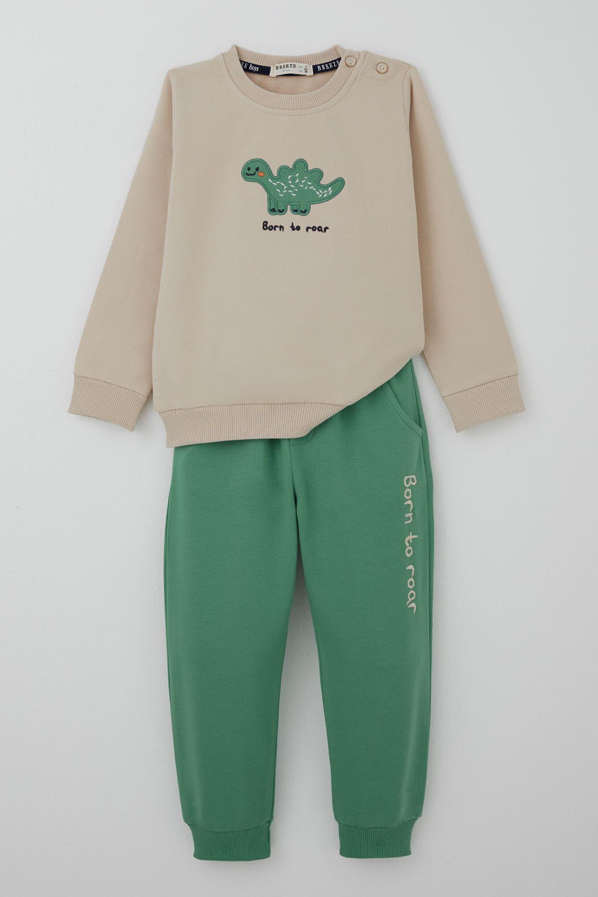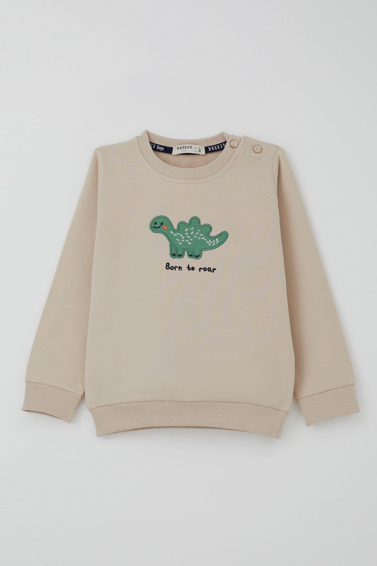 BRE Breeze Erkek Bebek Eşofman Takımı Sevimli Dinozor Nakışlı 9 Ay-3 Yaş, Bej - Oak Park