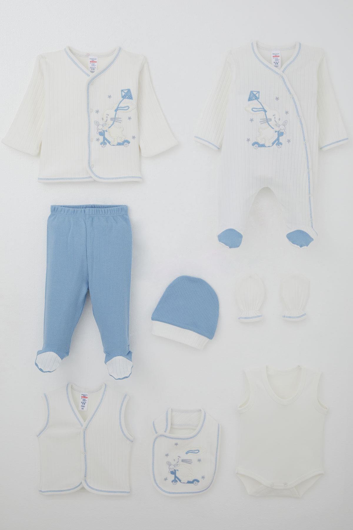 BRE Breeze Erkek Bebek Hastane Çıkışı 8 Li Scooter Kralı Uçurtma Uçuran Tavşancık Nakışlı 0-3 Ay, Beyaz - Eboli