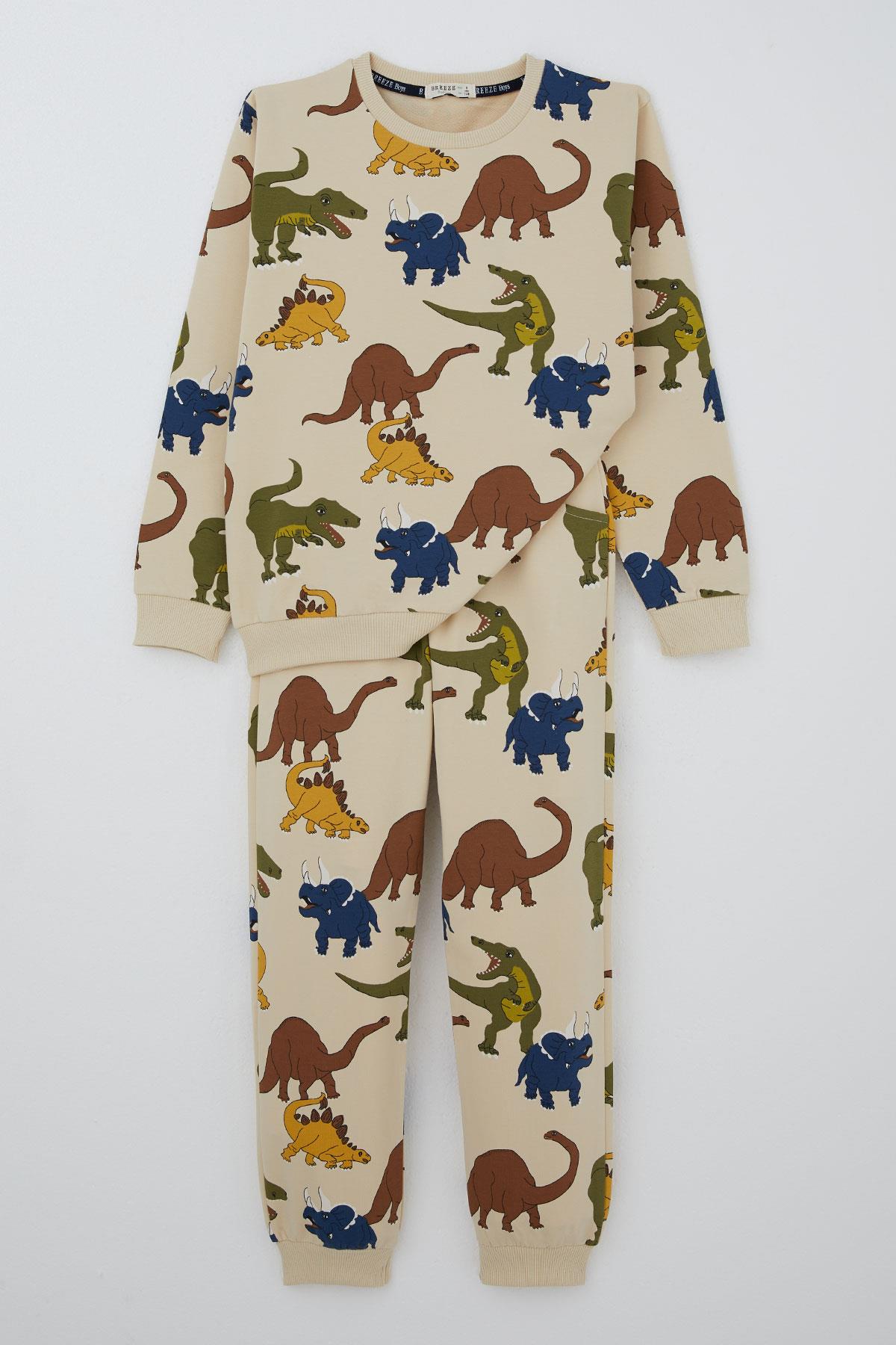 BRE Breeze Erkek Çocuk Eşofman Takım Dinozorlar Alemi Desenli 4-8 Yaş, Bej - Albi
