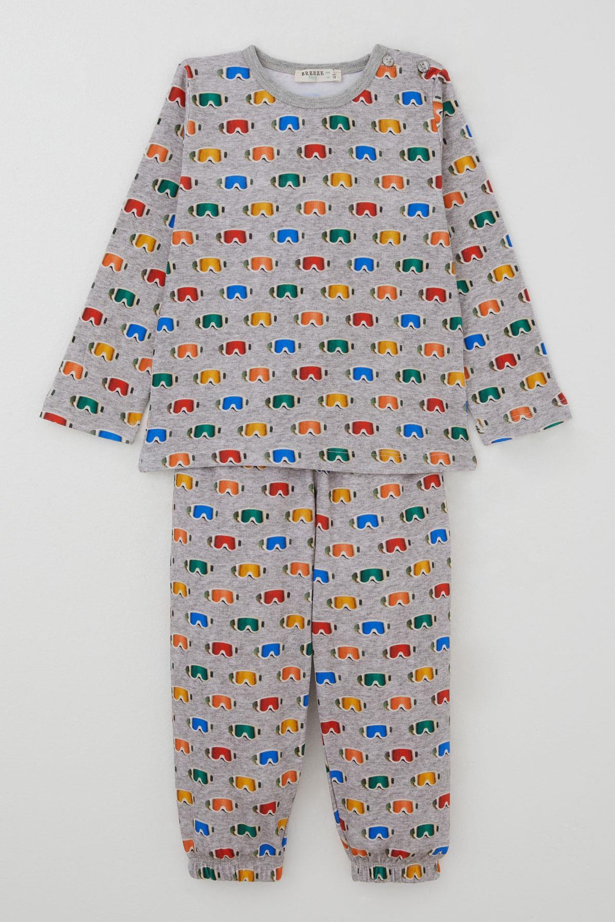 BRE Breeze Erkek Çocuk Pijama Takımı Renkli Kayakçı Gözlüğü Desenli 1-3 Yaş, Gri Melanj - Hoogvliet