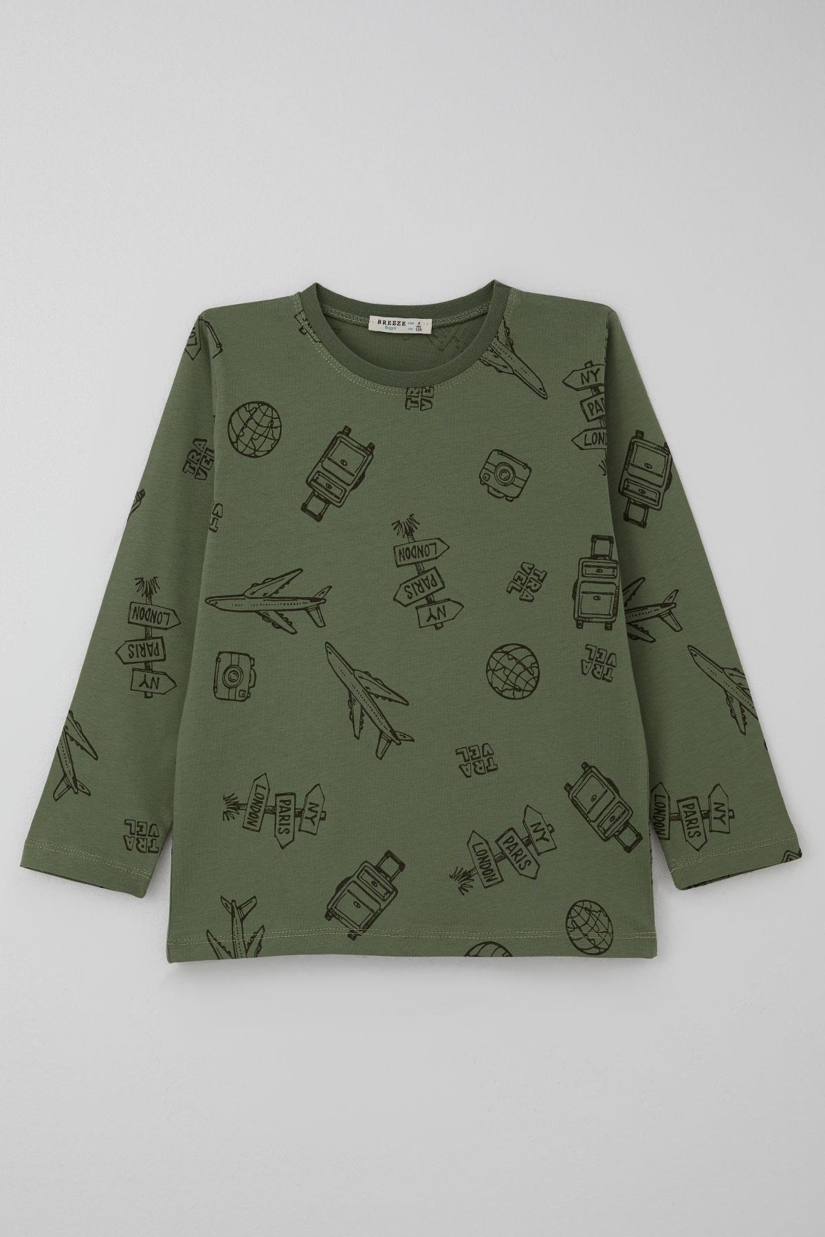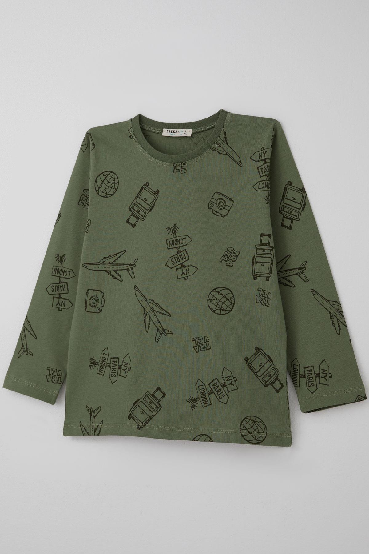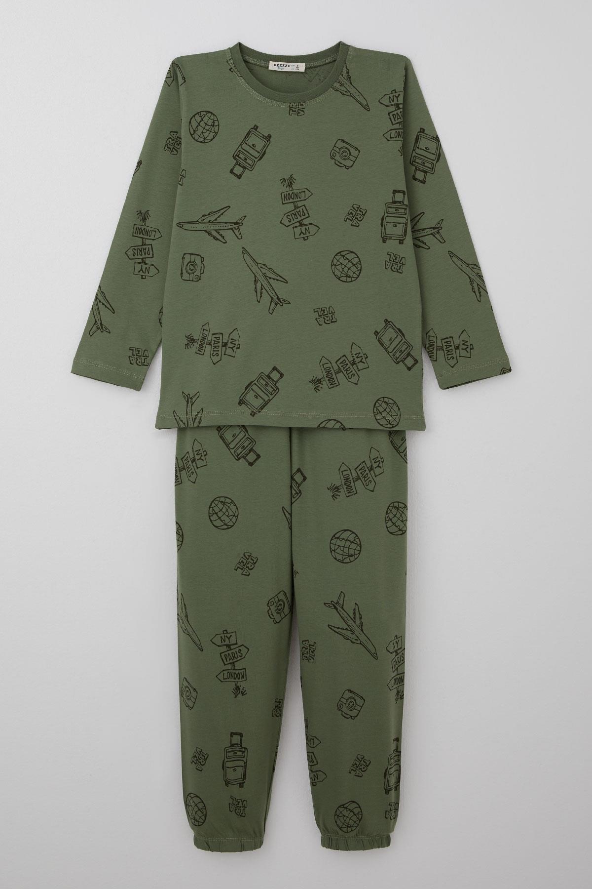 BRE Breeze Erkek Çocuk Pijama Takımı Seyahat Temalı Dünya Gezgini 4-8 Yaş, Haki Yeşil - Sindelfingen