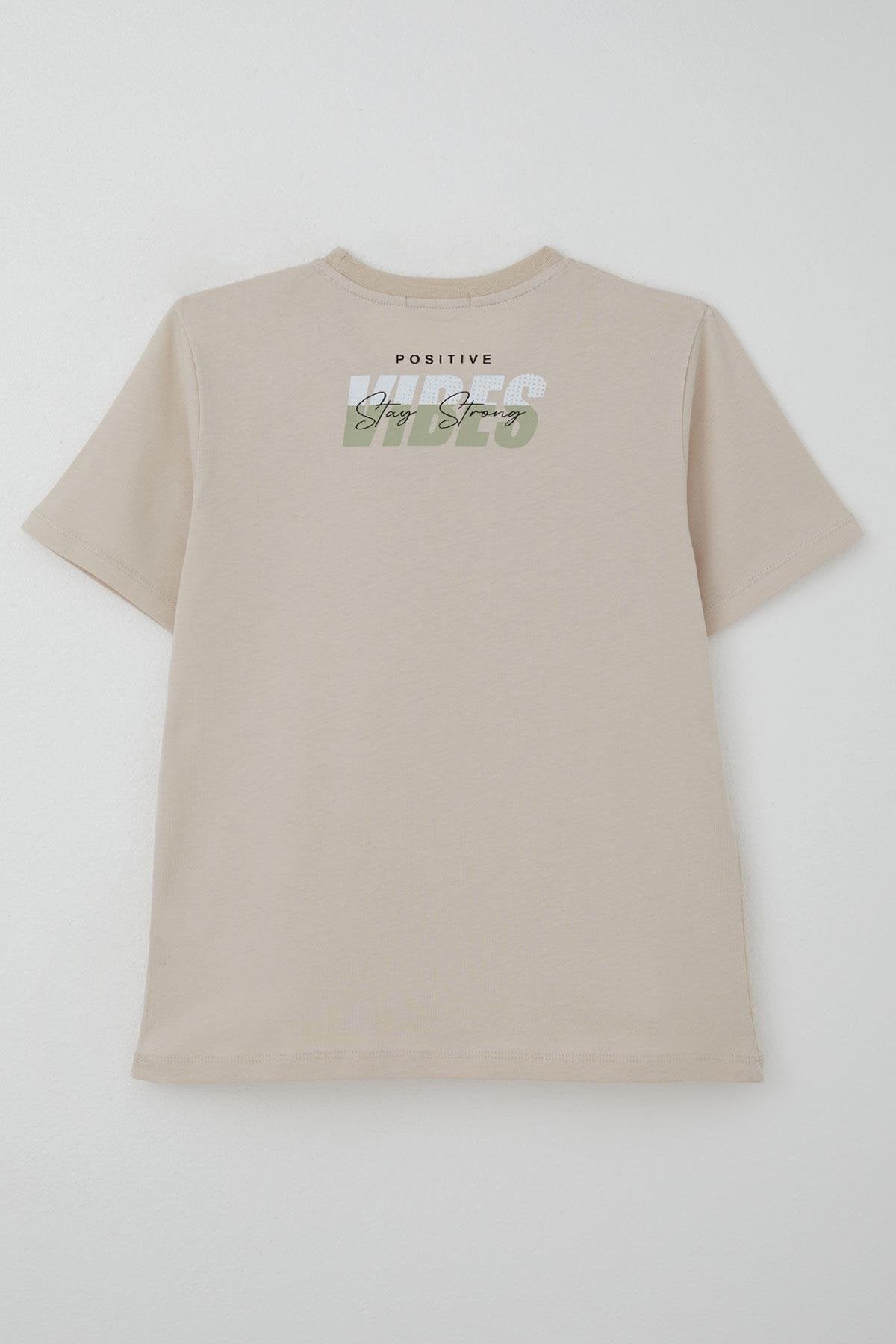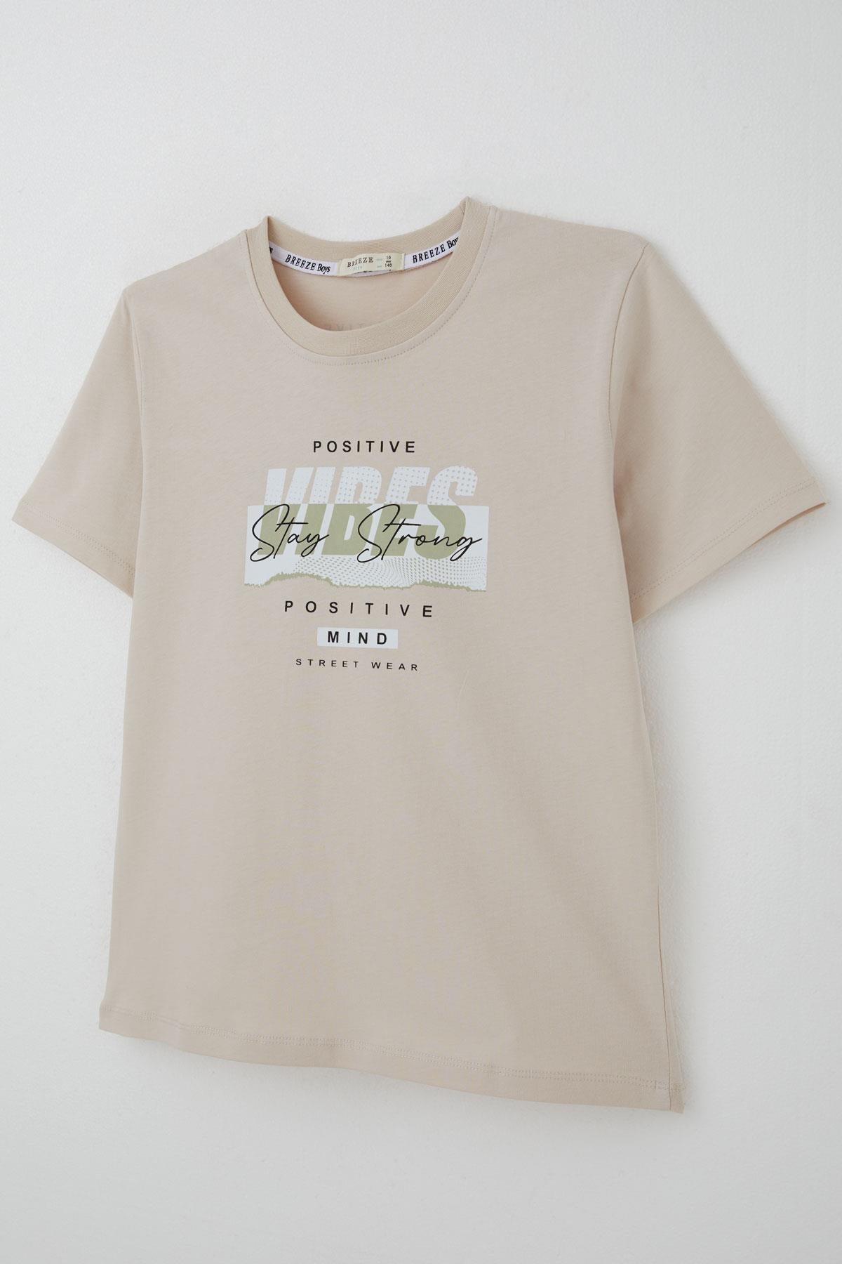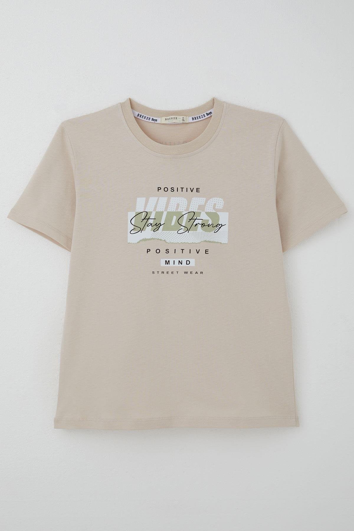 BRE Breeze Erkek Çocuk Tişört Motivasyon Temalı & Sırt Kısmı Yazı Baskı Detaylı 96 Yaş, Bej - Towson