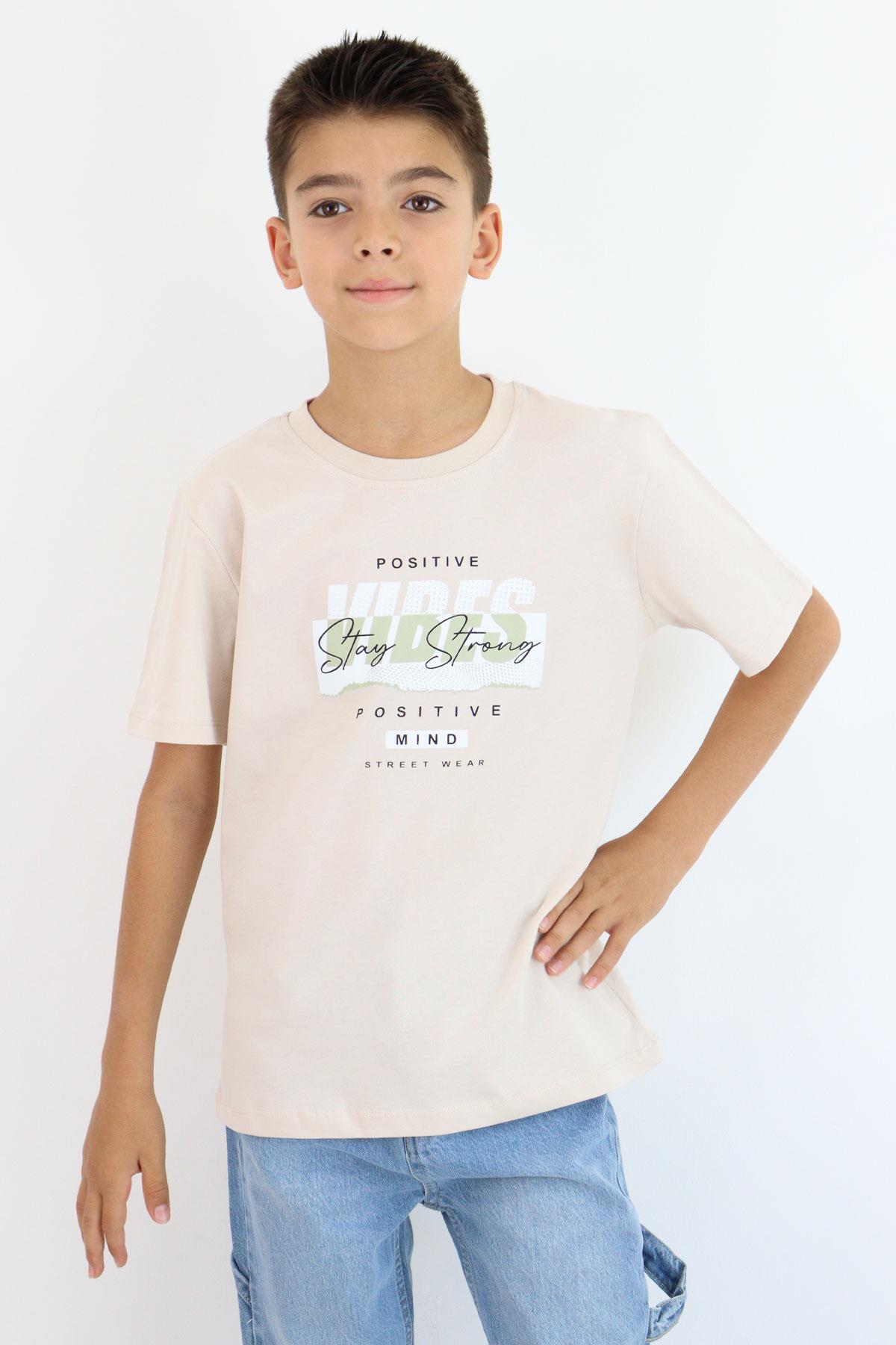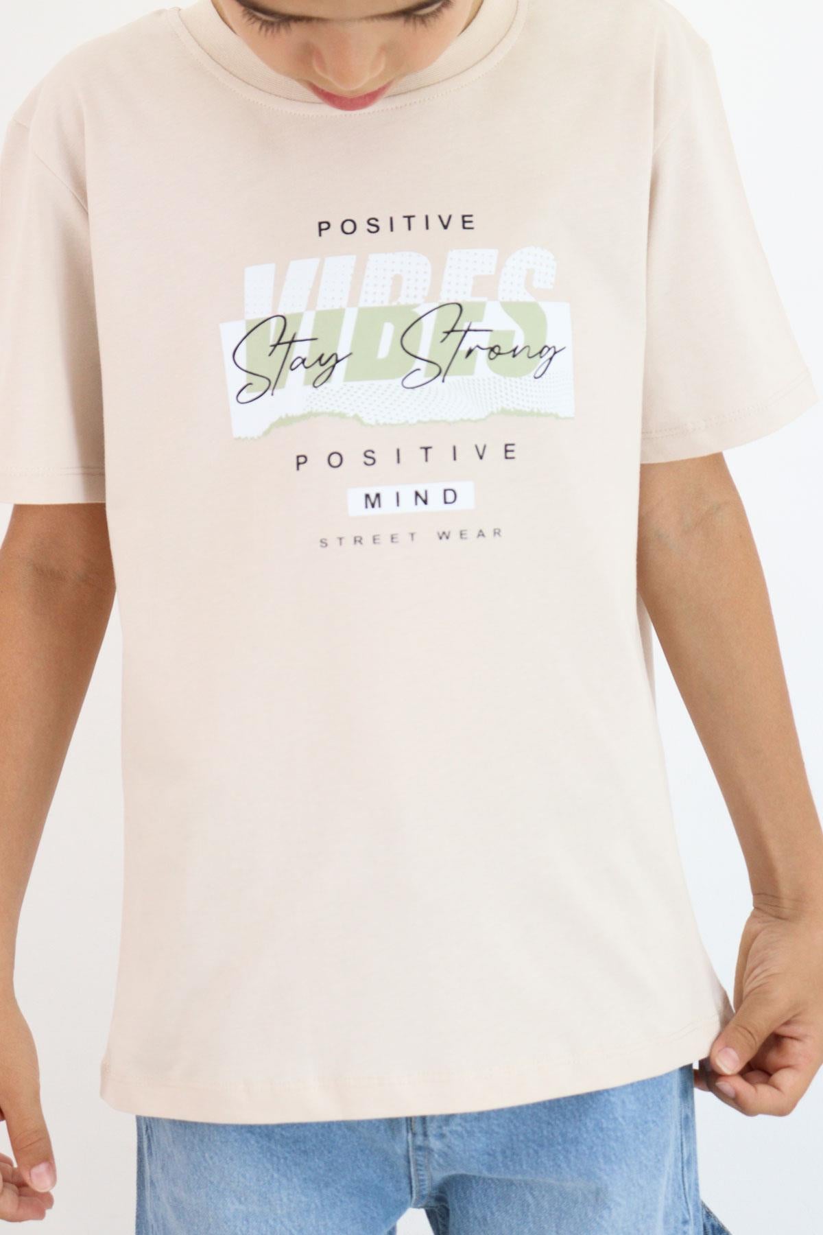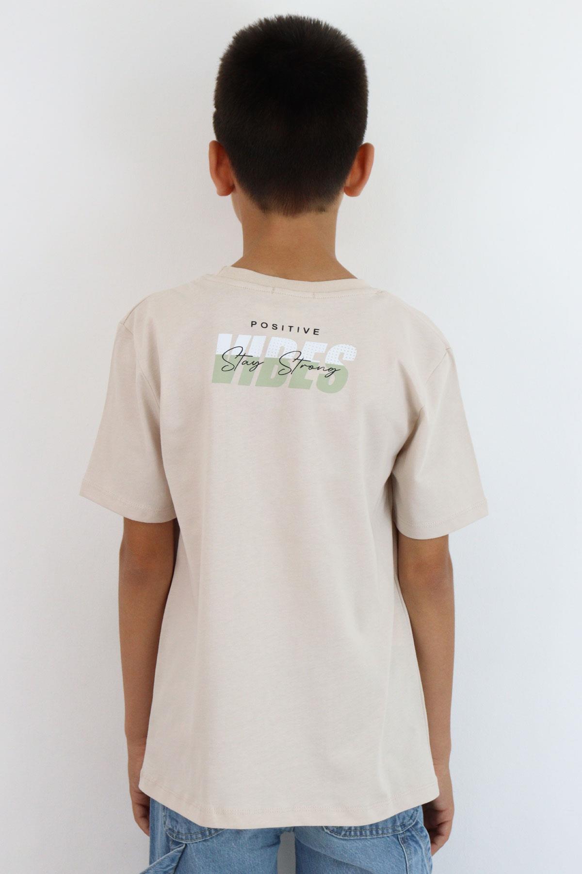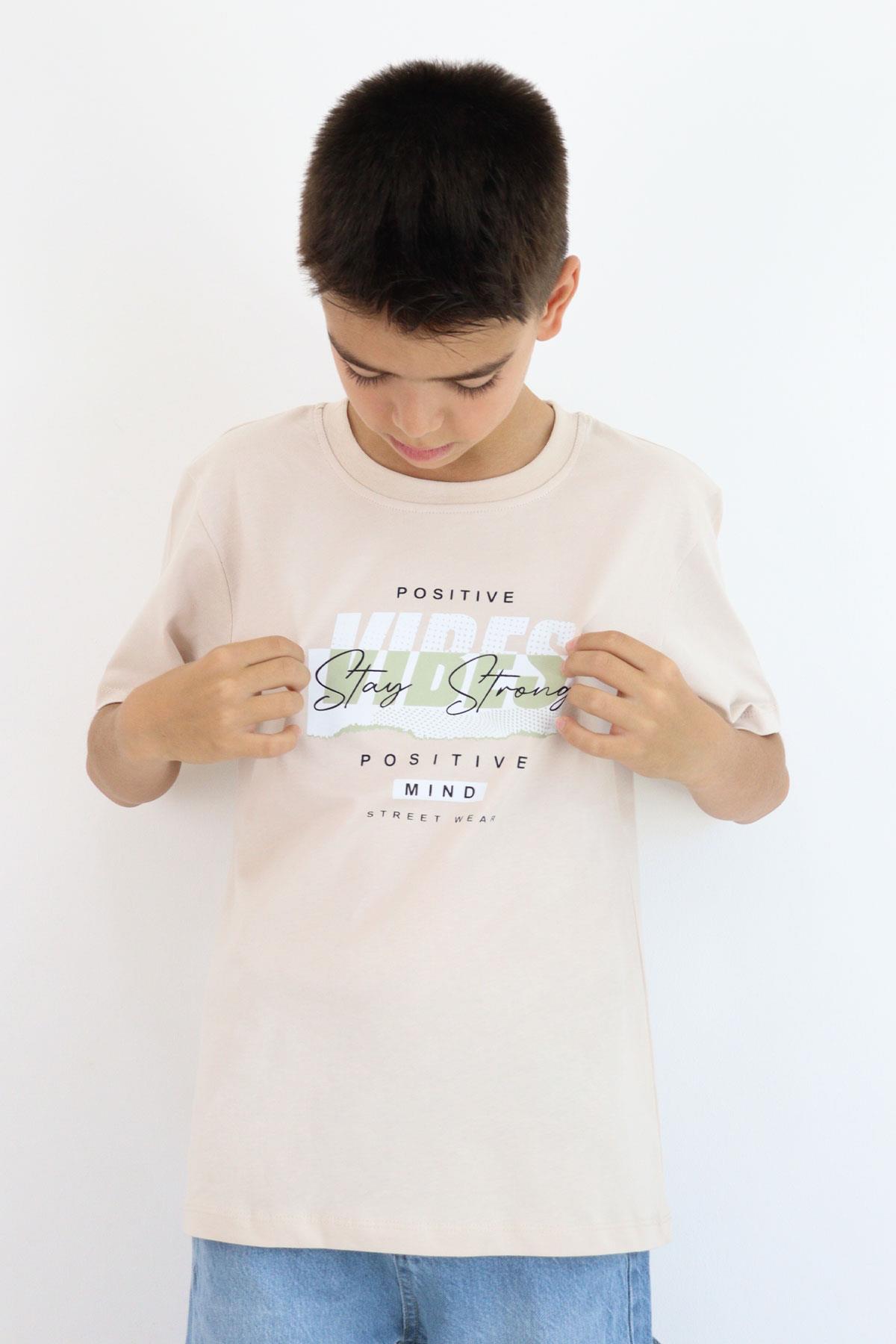 BRE Breeze Erkek Çocuk Tişört Motivasyon Temalı & Sırt Kısmı Yazı Baskı Detaylı 96 Yaş, Bej - Towson