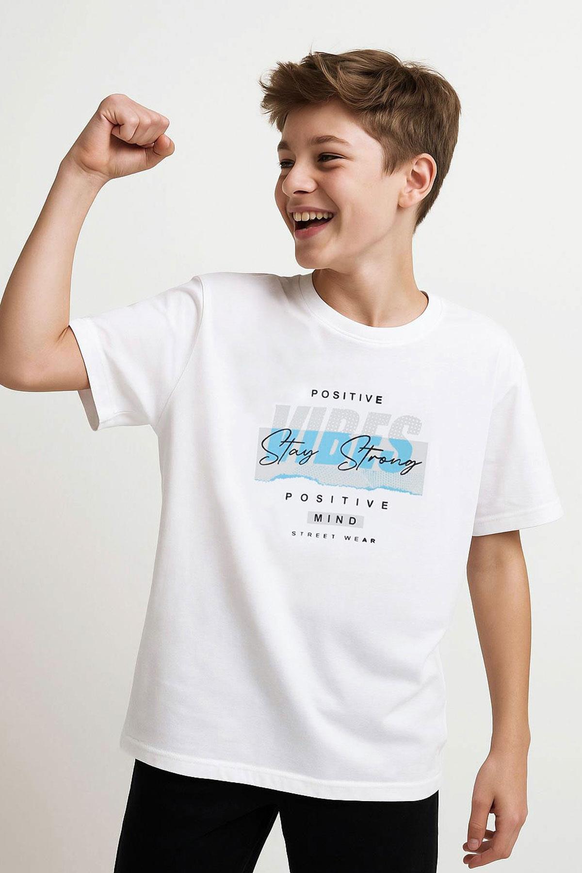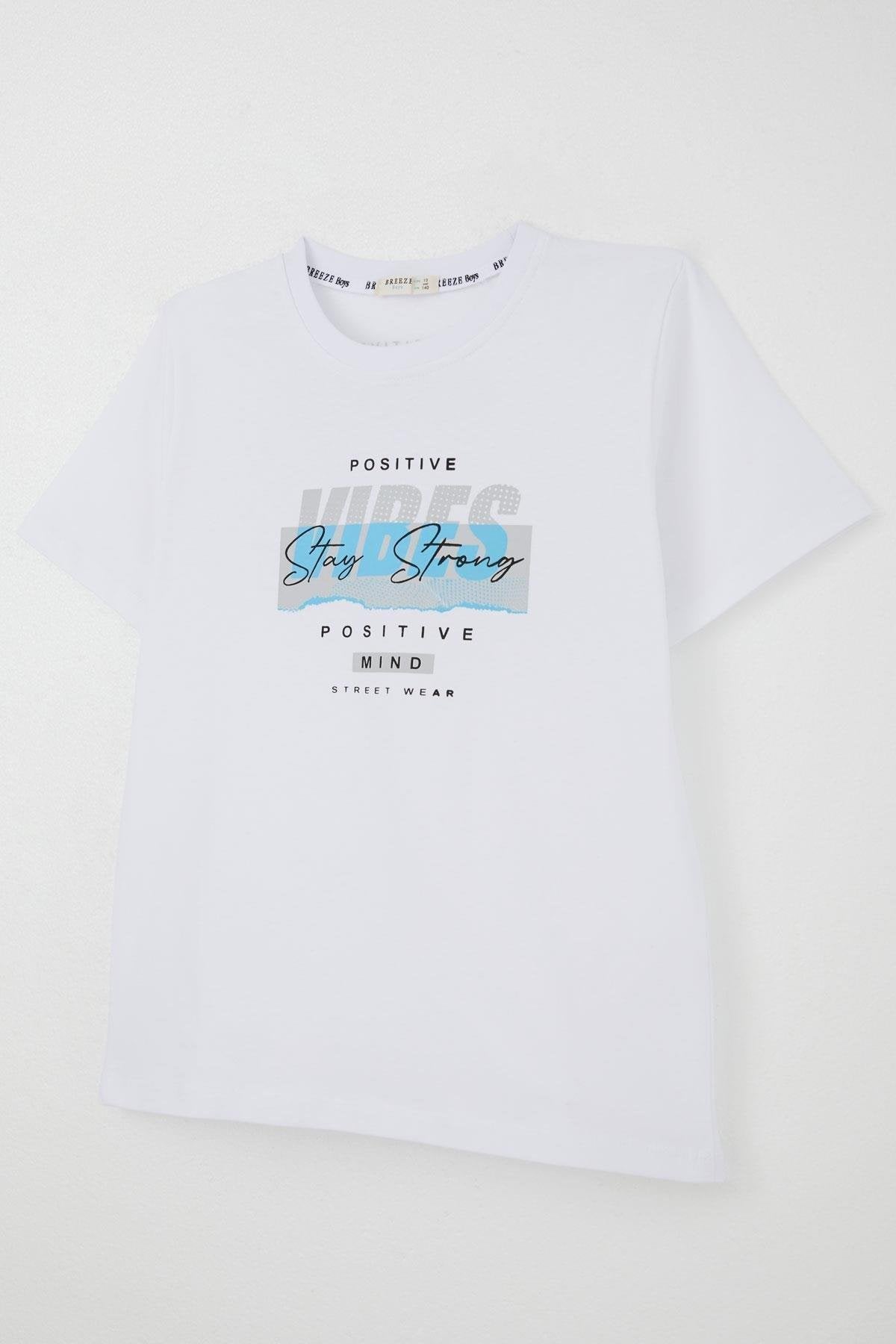 BRE Breeze Erkek Çocuk Tişört Motivasyon Temalı & Sırt Kısmı Yazı Baskı Detaylı 96 Yaş, Beyaz - Terre Haute