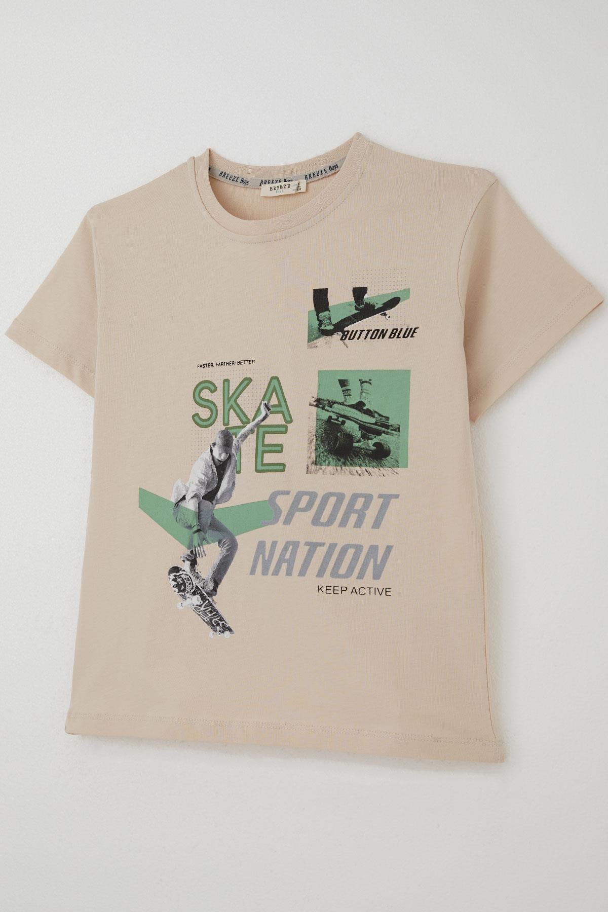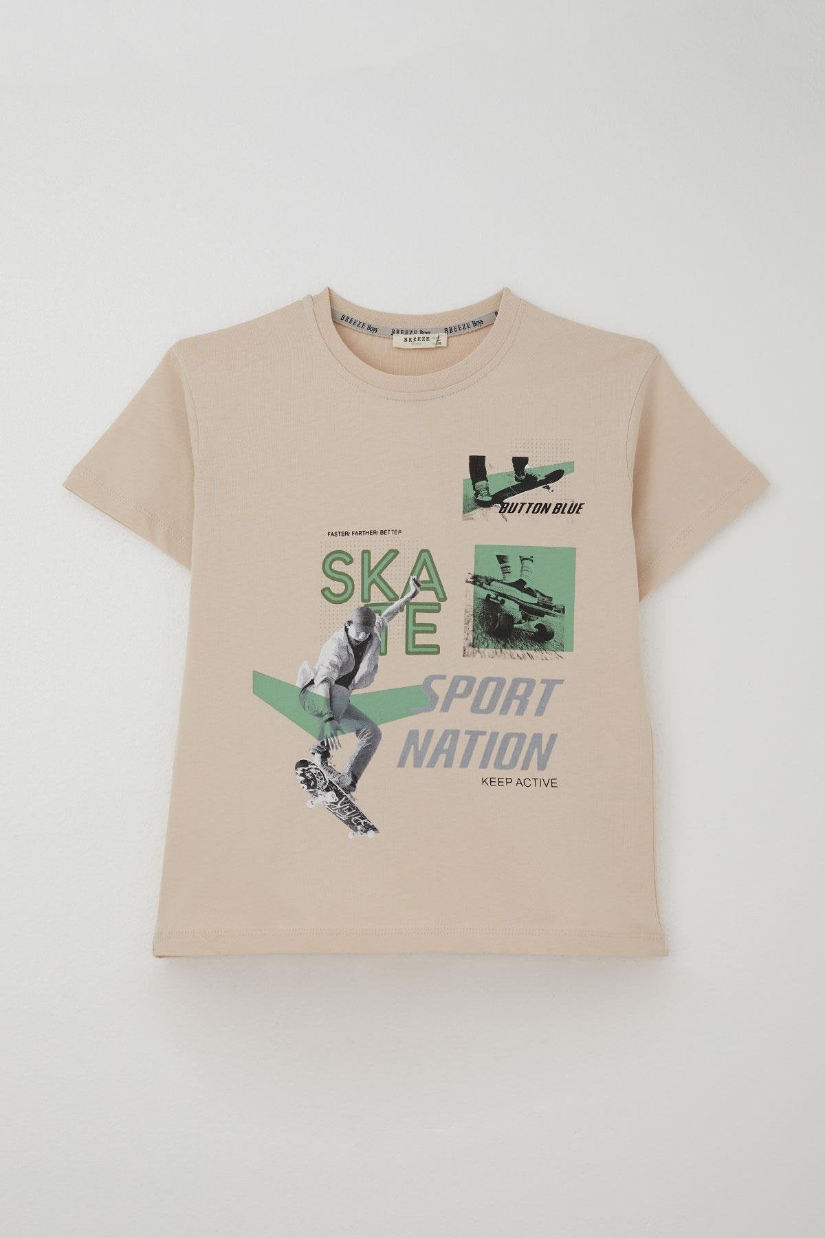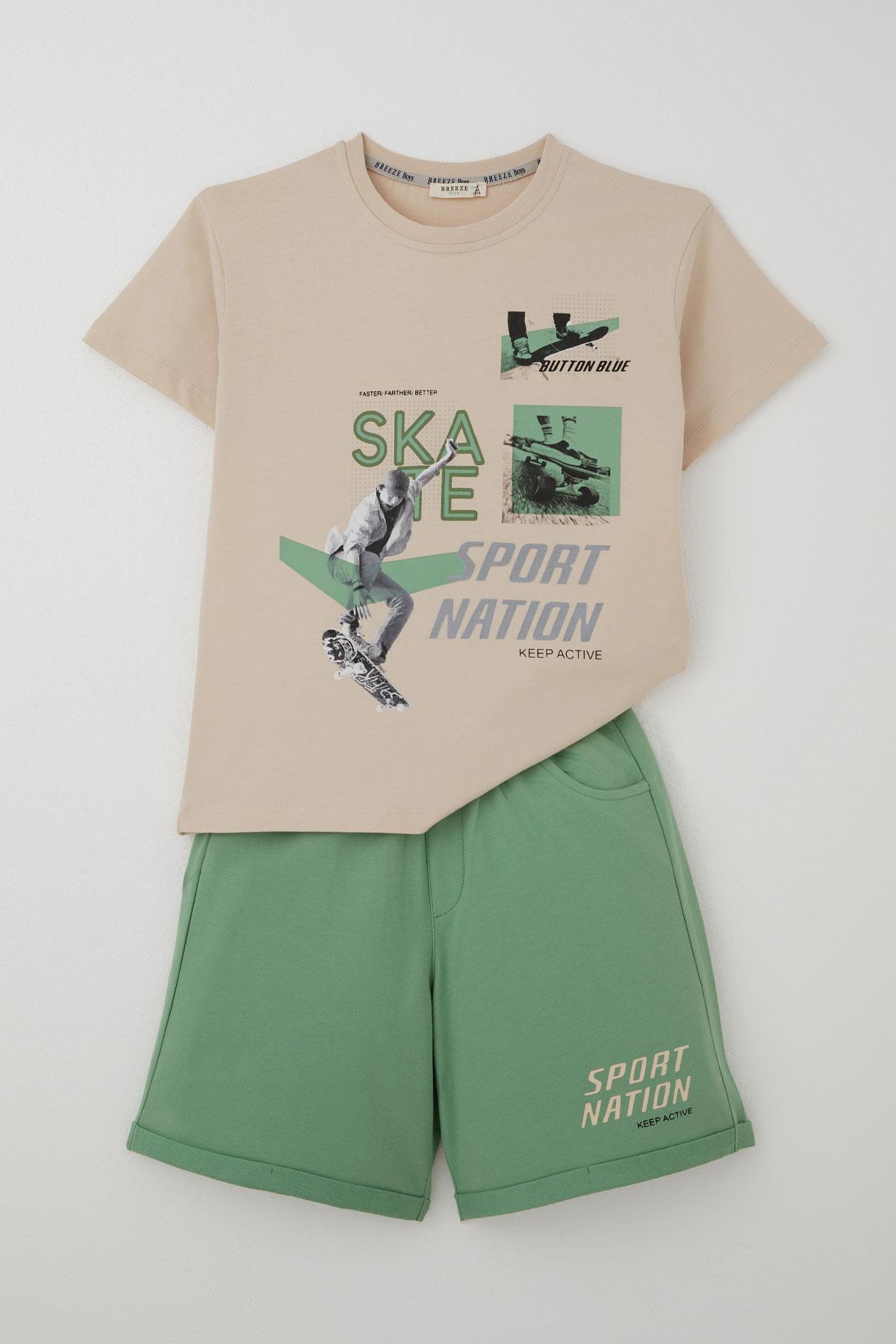 BRE Breeze Erkek Şortlu Takım Havalı Kaykaycı Baskılı 84 Yaş, Bej - Mâcon