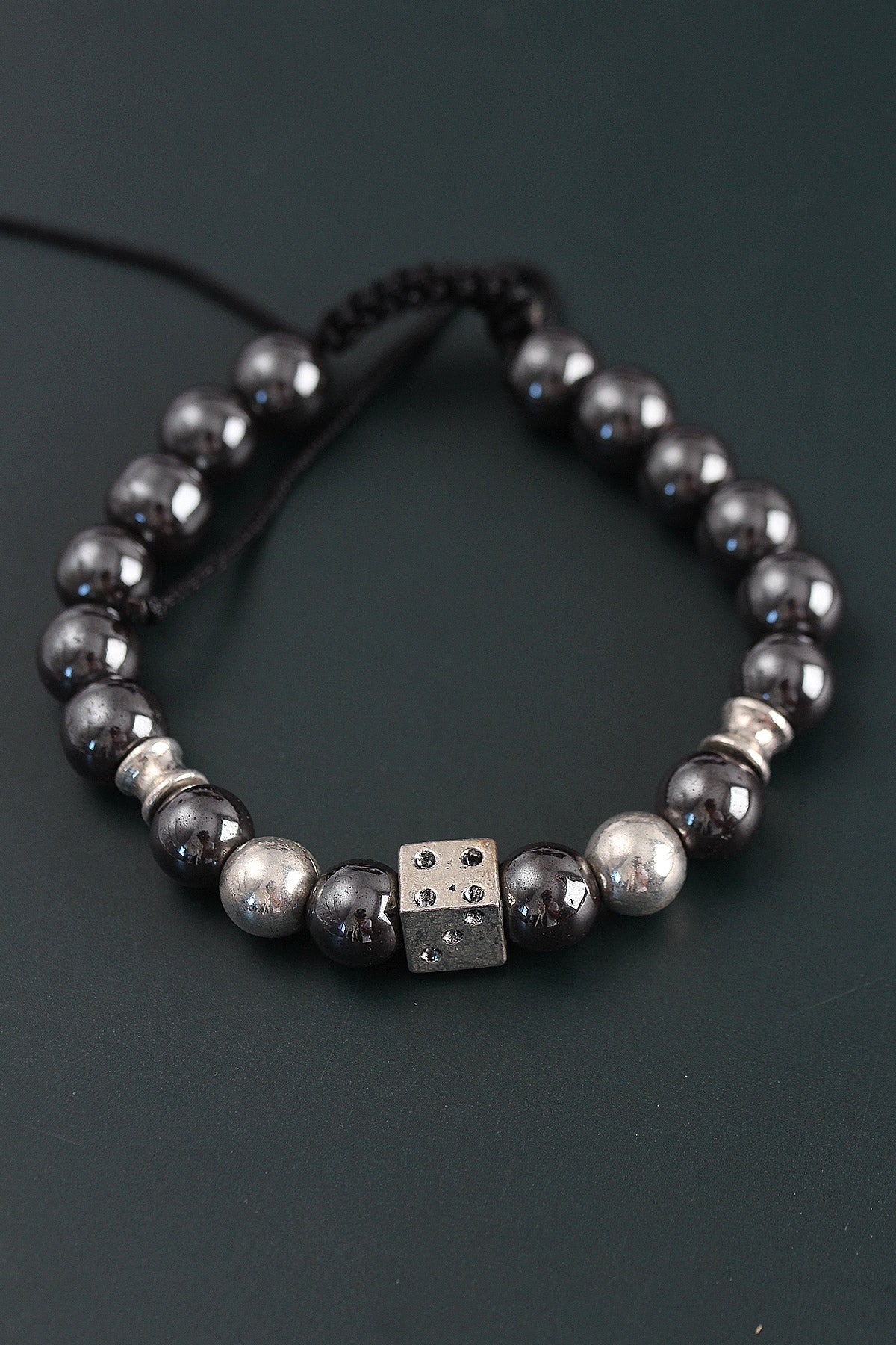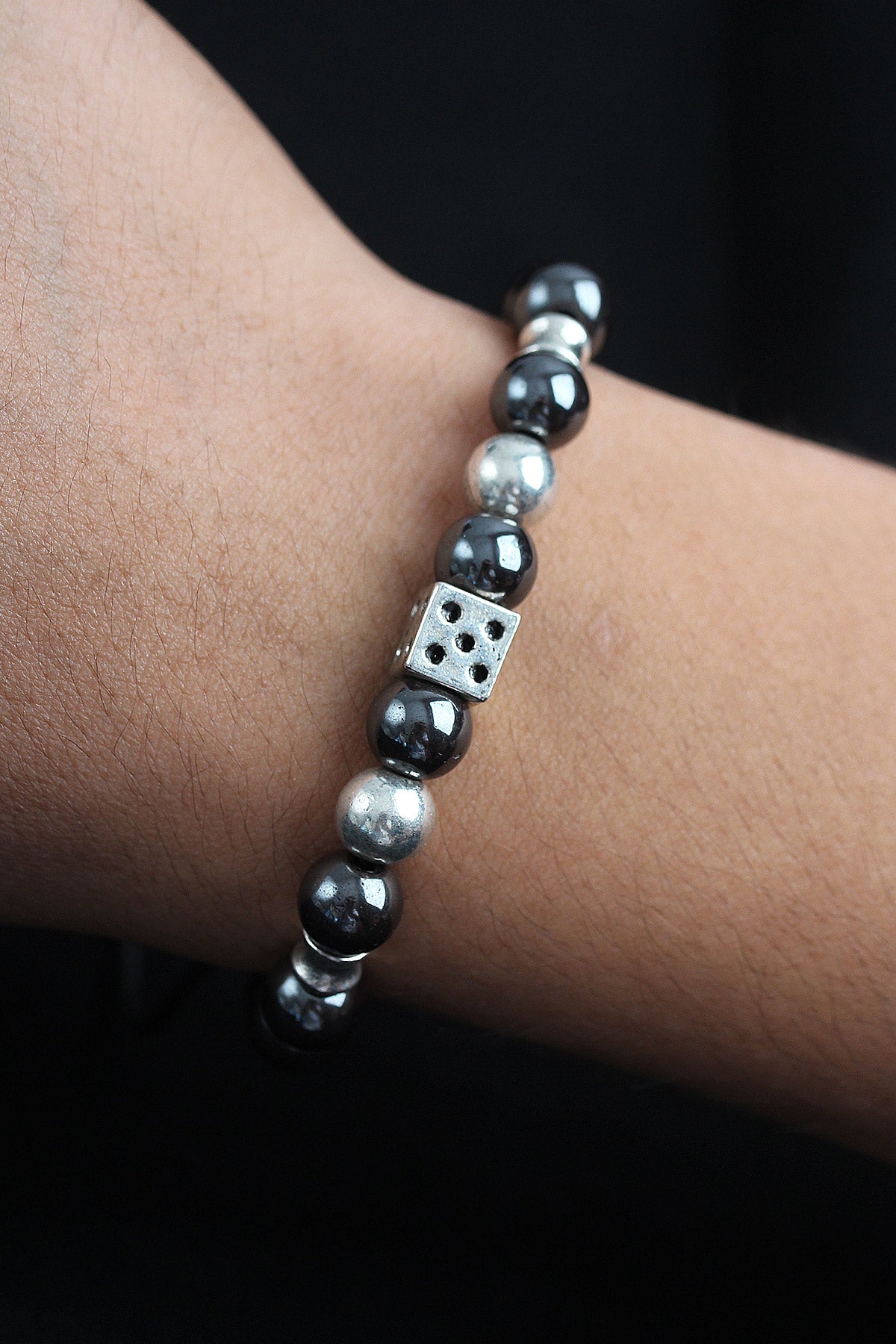 EBJ Doğal Taş Zar Model Gümüş Ve Füme Renk Asansörlü Erkek Bileklik - Strood