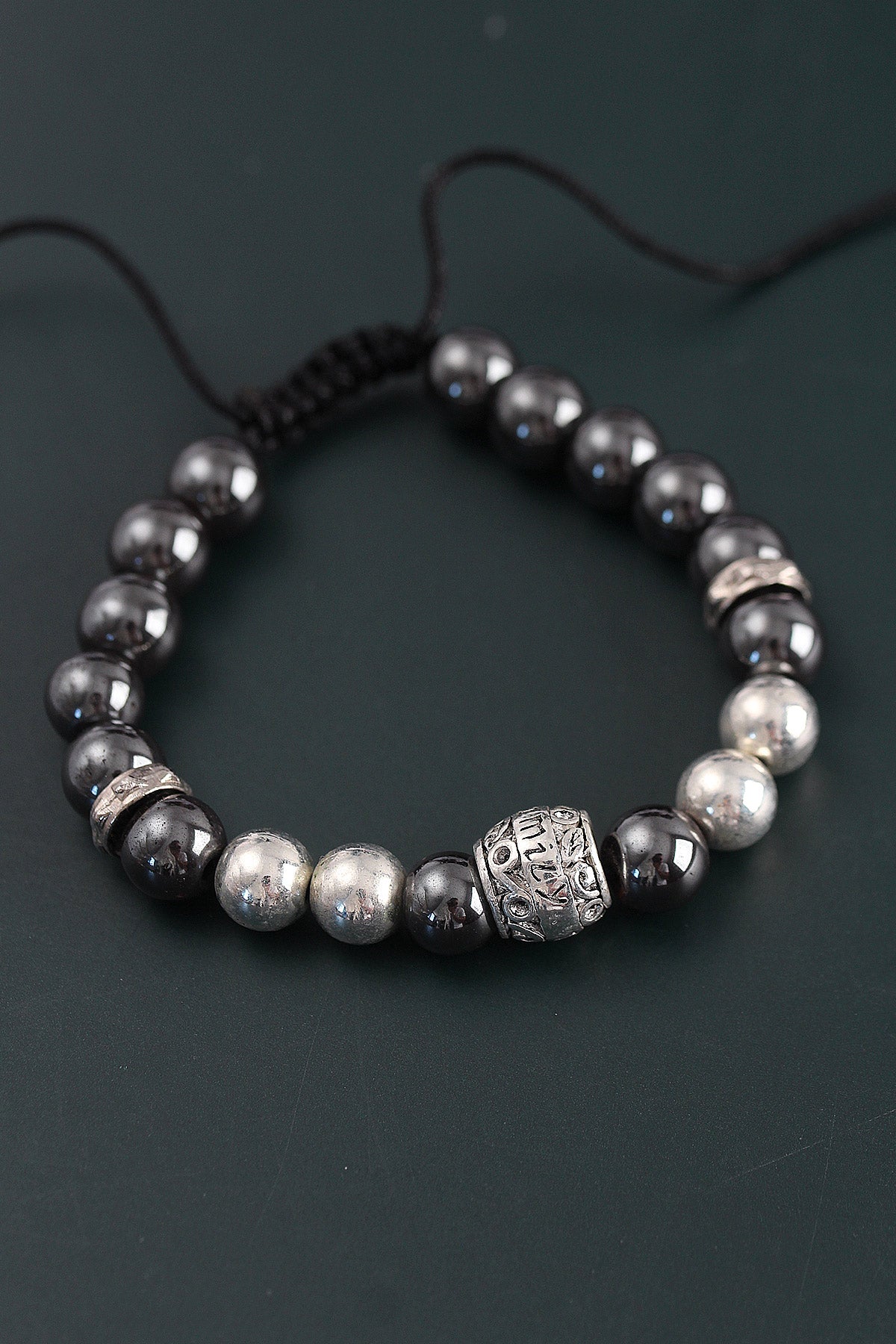 EBJ Natural Stone Family Model Silver and Smoke Color Elevator Men's Bracelet - Rozzano