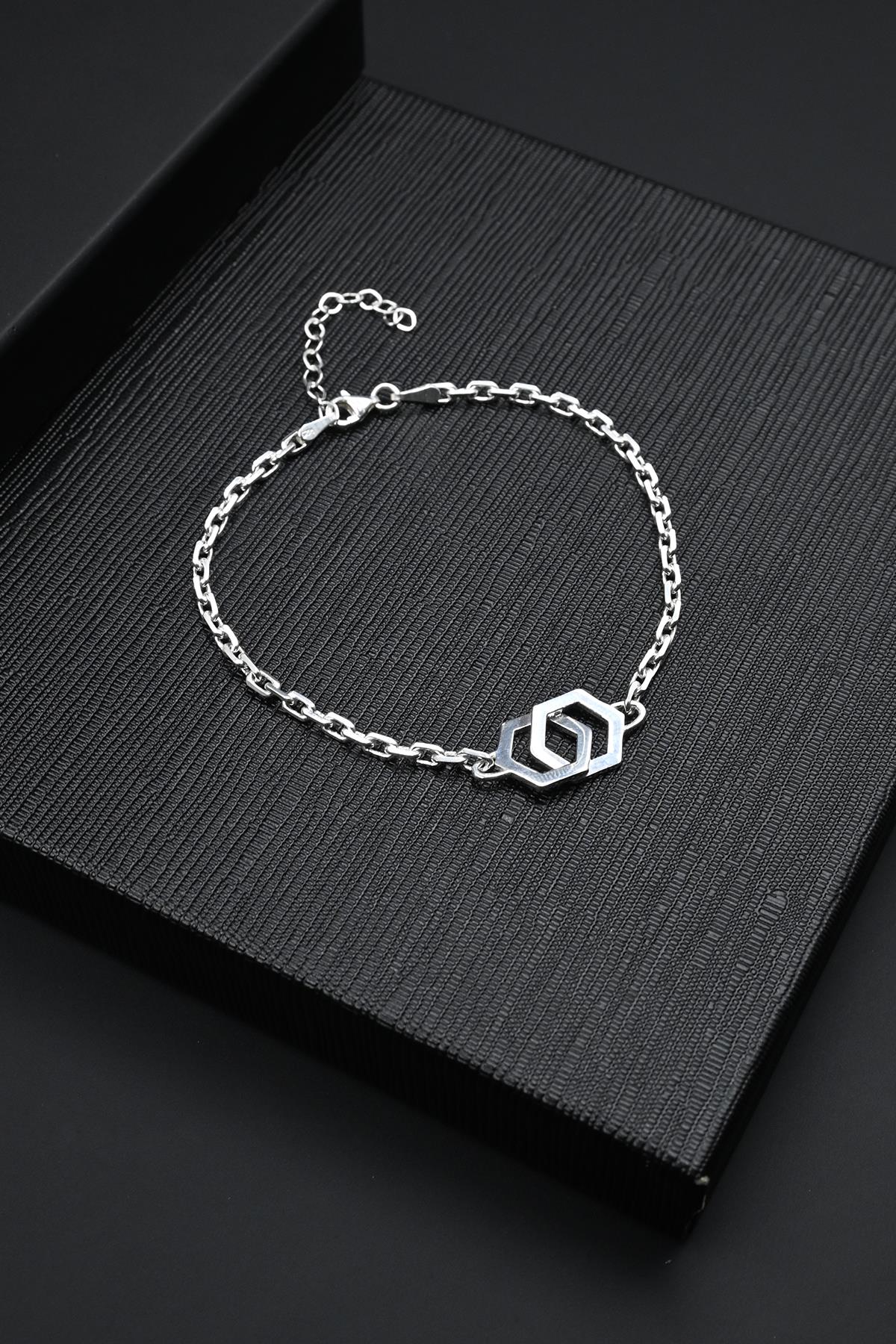 FRNCH 925 Sterling Silver Hexagonal Figured Silver Color Men's Bracelet; Material: 925 Sterling Silver Color: Silver Size: 19+4 cm; Sent in FRNCH Box; It is recommended to keep away from cosmetics, perfume, and cleaning products.