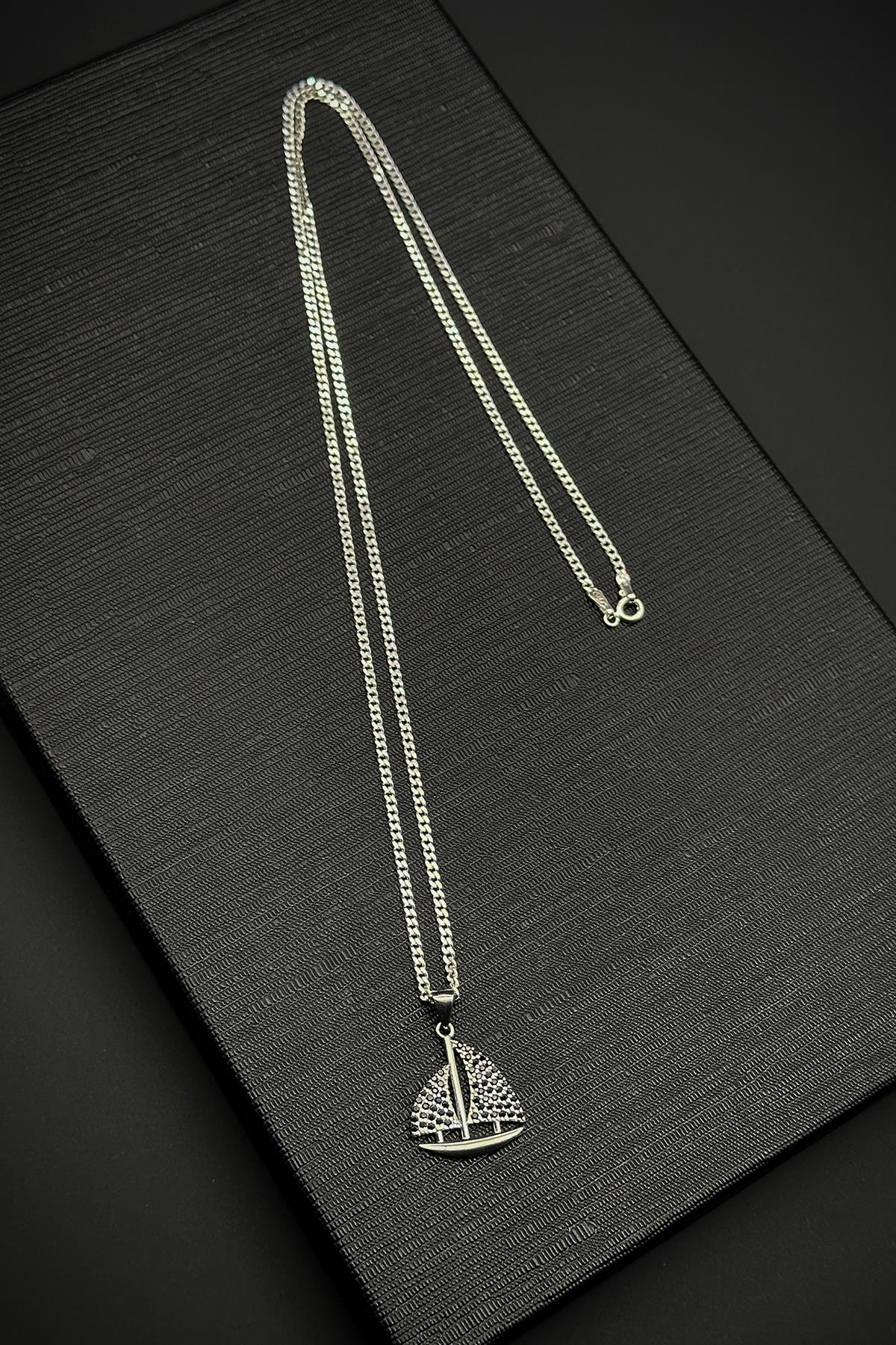 NVM FRNCH 925 Sterling Silver Sailboat Figured Zircon Stone Silver Color Men's Necklace FRJ30766-866-AB2 - South Bend
