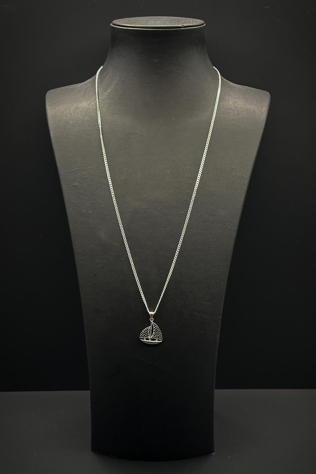 FRNCH 925 Sterling Silver Sailboat Figured Zircon Stone Silver Color Men's Necklace; Material: 925 Sterling Silver Color: Silver Stone: Zircon; Sent in FRNCH Box; It is recommended to keep away from cosmetics, perfume, and cleaning products.