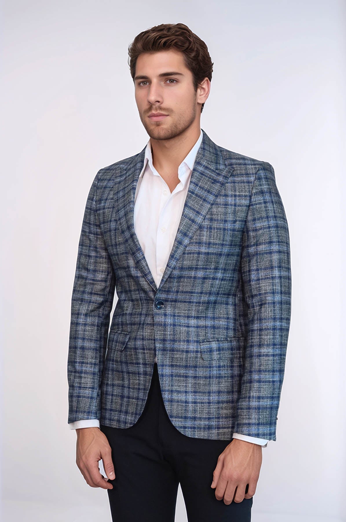 This jacket model, prepared with dark blue plaids on navy blue main colors, can be a quality choice for those looking for both a stylish and strong image. It can add a more stylish atmosphere to your style within your business concepts. You can get a classic concept with dark blue combinations. Solid color trousers should be preferred when combined with a plaid jacket model. Trousers made of denim fabric can be preferred in any style, as they are both more modern and more stylish. You can find the most suitable product options for your style on our website. You can leave your every shopping happily on our website, where a wide variety of products and affordable prices are offered together.