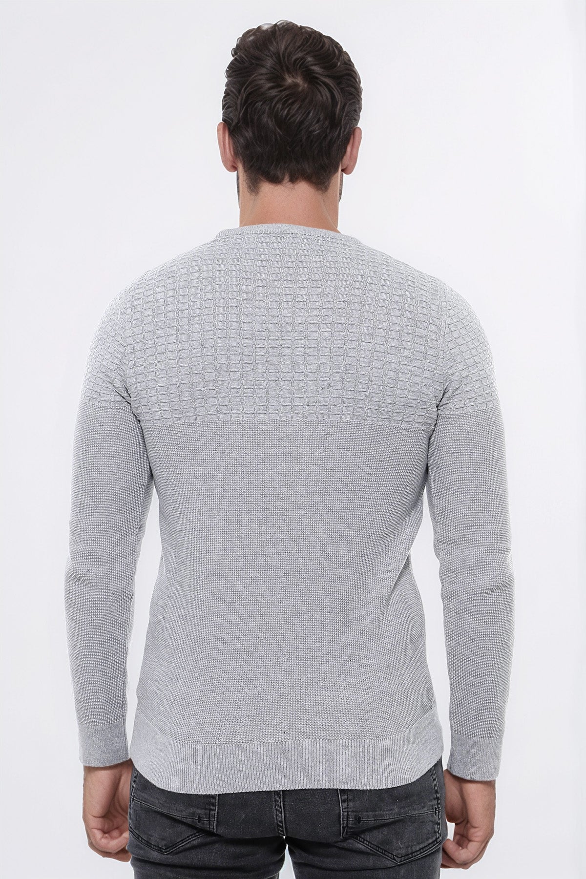 WSS Circle Neck Patterned Light Grey Men Knitwear - Villepinte